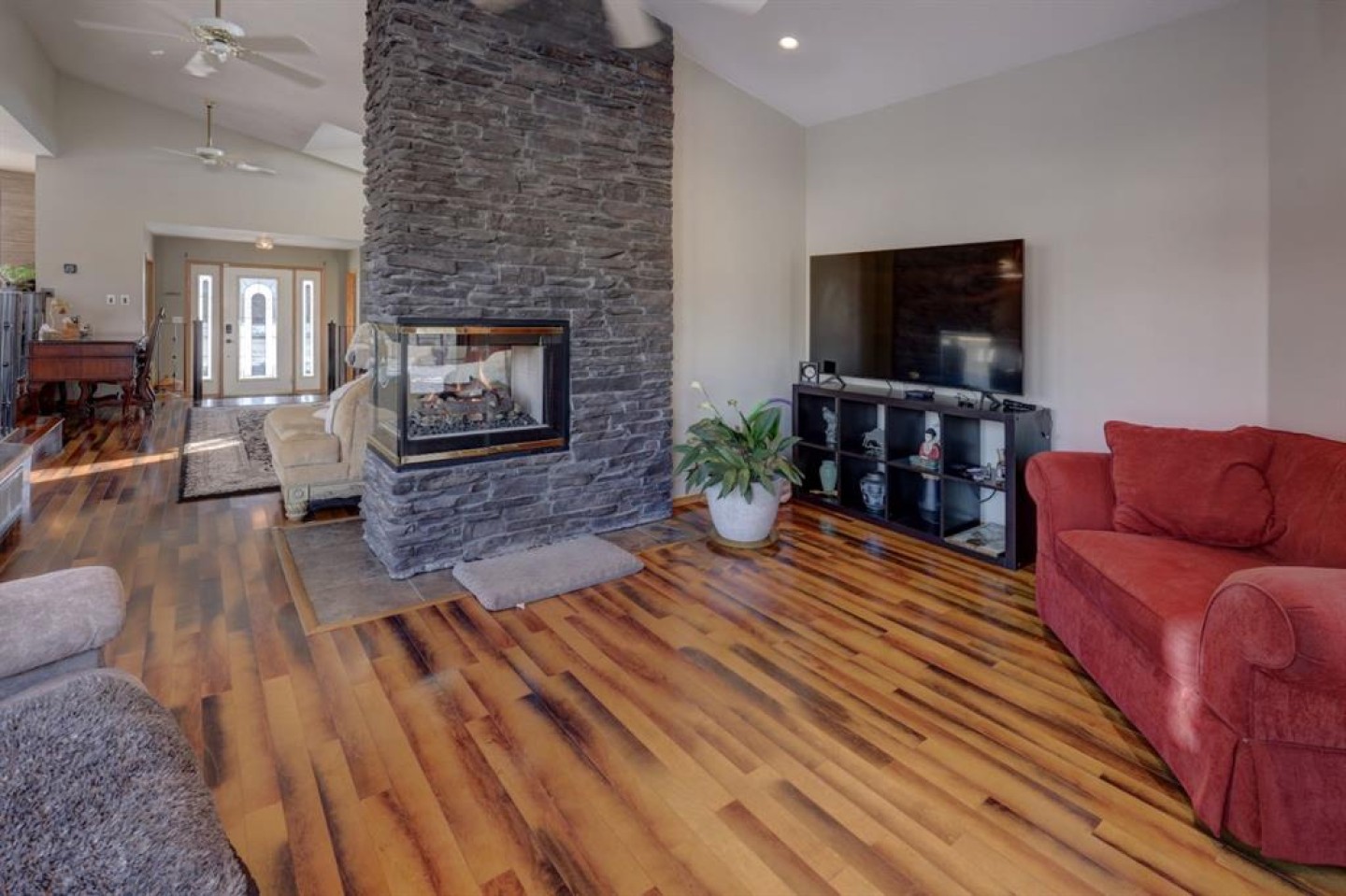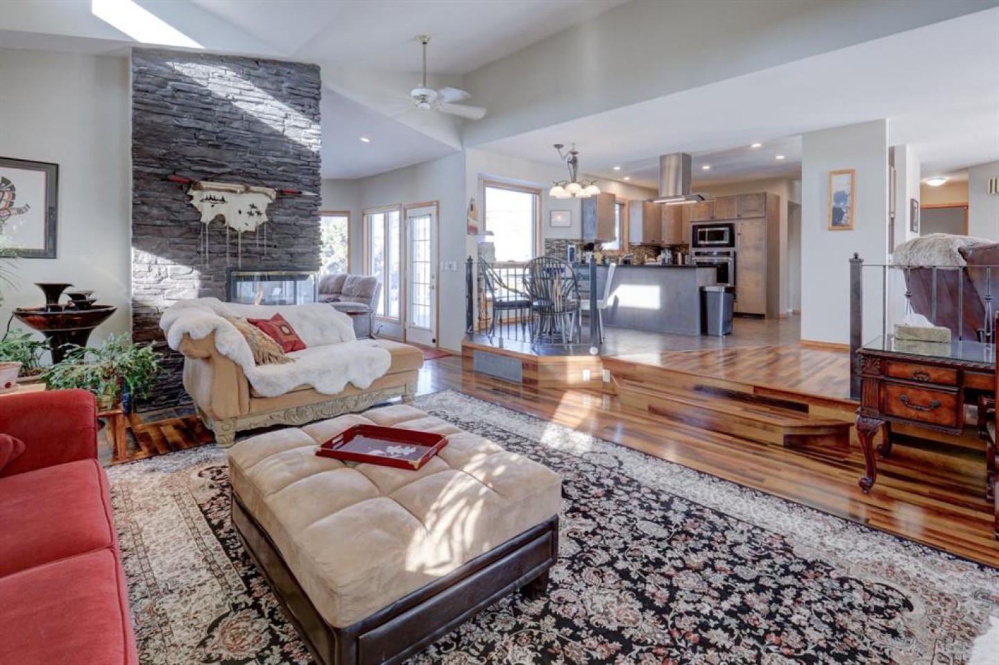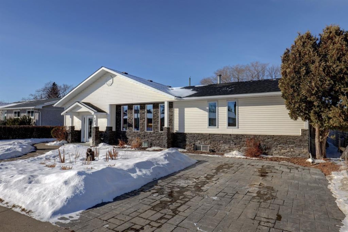 An exceptional Riverside bungalow has just hit the market! When you open the front door, you'll just think wow!! The living room is so comfortable- the 3 sided stone fireplace is stunning and there is an abundance of natural light. Sitting at the dining nook or while you're prepping dinner, you can enjoy the antics of the red-headed woodpeckers and other birds feasting across the alley. The formal dining room makes hosting a breeze and has plenty of room for all of your friends and family. The primary bedroom is truly a retreat. The ensuite and walk in closet are to-die-for! There are 3 other bedrooms, a massive family room with tons of built in storage, and good sized laundry room. The yard is something to look forward to using all summer! An expansive deck can easily accommodate all of your outdoor furniture, the gazebo offers a shady spot, and there is an abundance of gardens. Did I mention there is a double detached garage as well? The neighbourhood is filled with friendly faces, well maintained walking paths, off leash areas for Fido to run, and a park, pickleball courts and disk golf are also close at hand. This one of a kind property, truly needs to be seen to be fully appreciated.