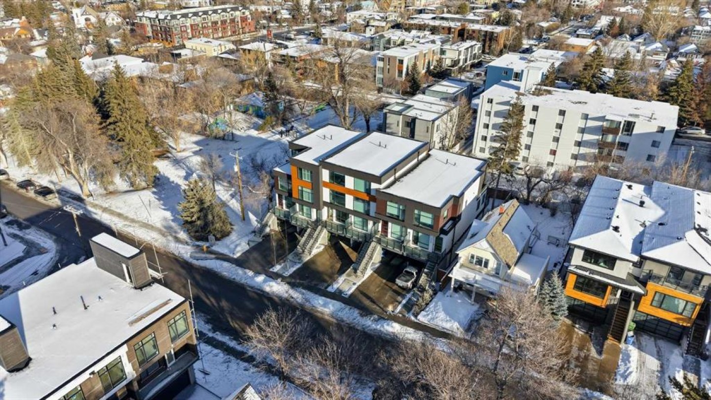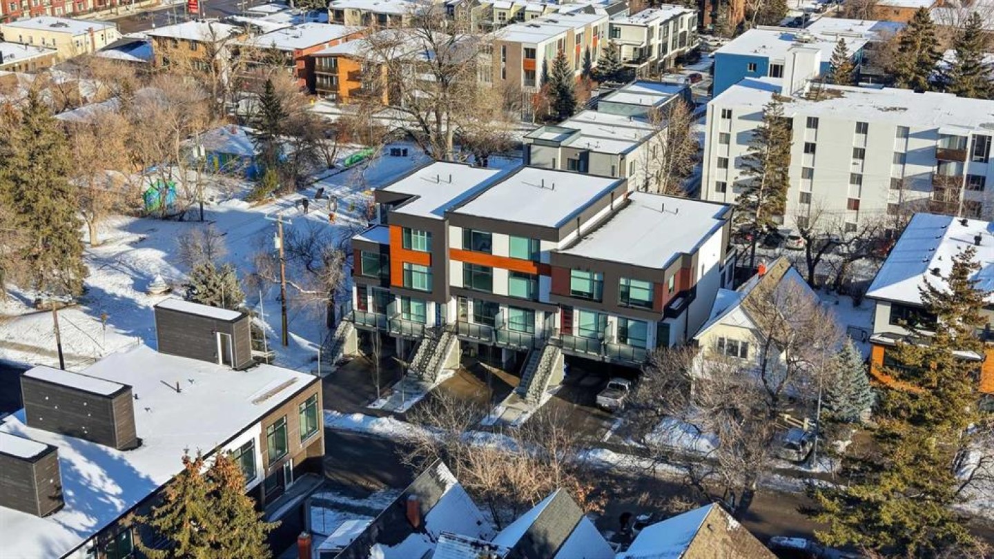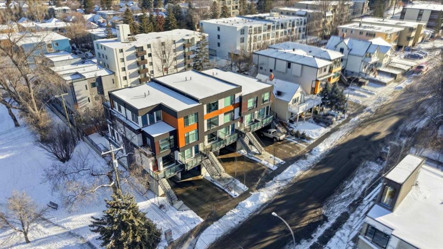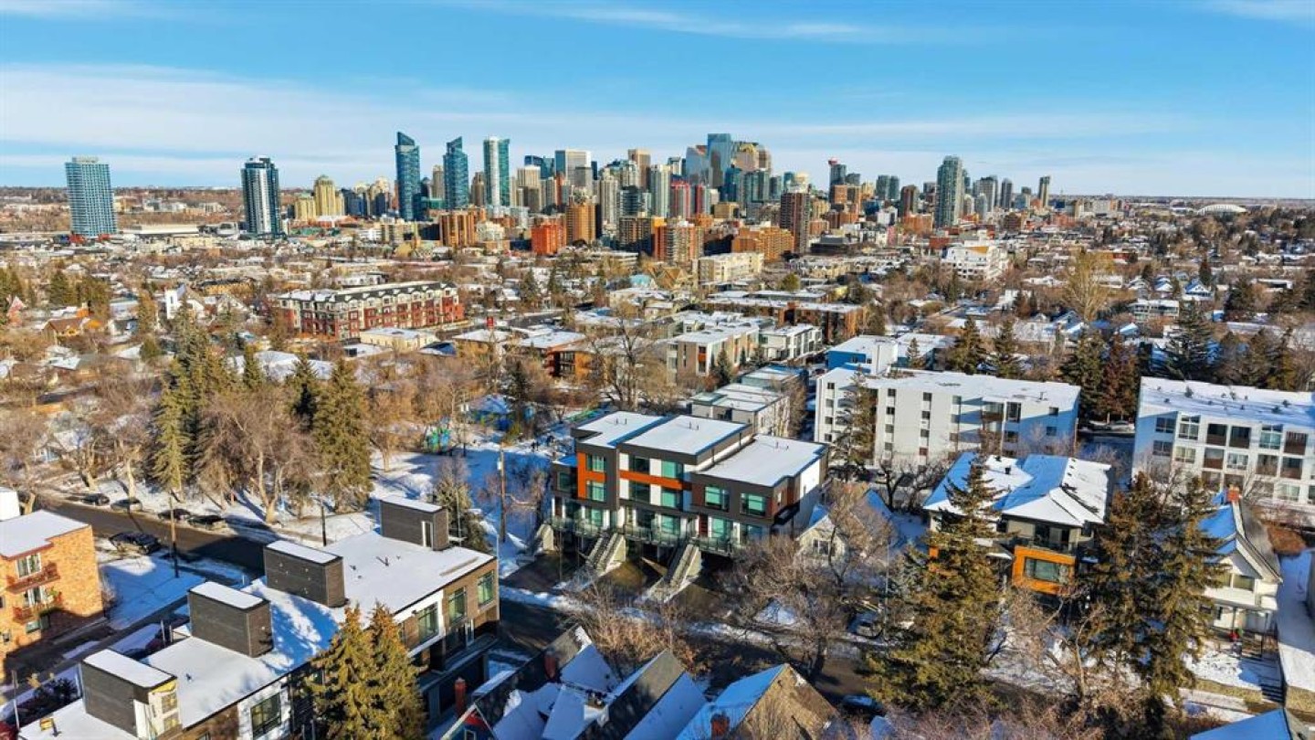 OPEN HOUSE JANUARY 31ST FROM 1:00 - 4:00 PM & FEBRUARY 1ST FROM 12:00 - 3:00 PM!!! Sophisticated and upscale, this 3 bedroom townhome is nestled in the desirable inner city community of Bankview, offering SPECTACULAR CITY AND DOWNTOWN VIEWS along with over 2,600 sq ft of beautifully designed living space. The open main level is ideal for entertaining, featuring hardwood floors, lofty ceilings, and stylish lighting. A spacious dining area flows seamlessly into the well appointed kitchen, complete with quartz countertops, two large islands providing exceptional prep space, abundant storage, and stainless steel appliances including a wine fridge. The inviting living room, anchored by a sleek electric fireplace, offers balcony access for enjoying the views. A 2 piece powder room completes the main level. The second level hosts a quiet office area, two bedrooms—including one with its own private 5 piece ensuite—a 4 piece main bath, and a convenient laundry room. Ascend to the top level to discover a secluded primary retreat featuring a generous walk in closet and a luxurious 5 piece ensuite with dual sinks, a large vanity, freestanding soaker tub, and oversized shower. A versatile flex space on this level is perfect for a home office or fitness area and provides access to a spacious rooftop patio showcasing expansive city and downtown vistas. The entry level includes a recreation/games area and direct access to the heated double attached tandem garage. This prime location offers effortless access to vibrant 17th Avenue, as well as nearby schools, shopping, and public transit.