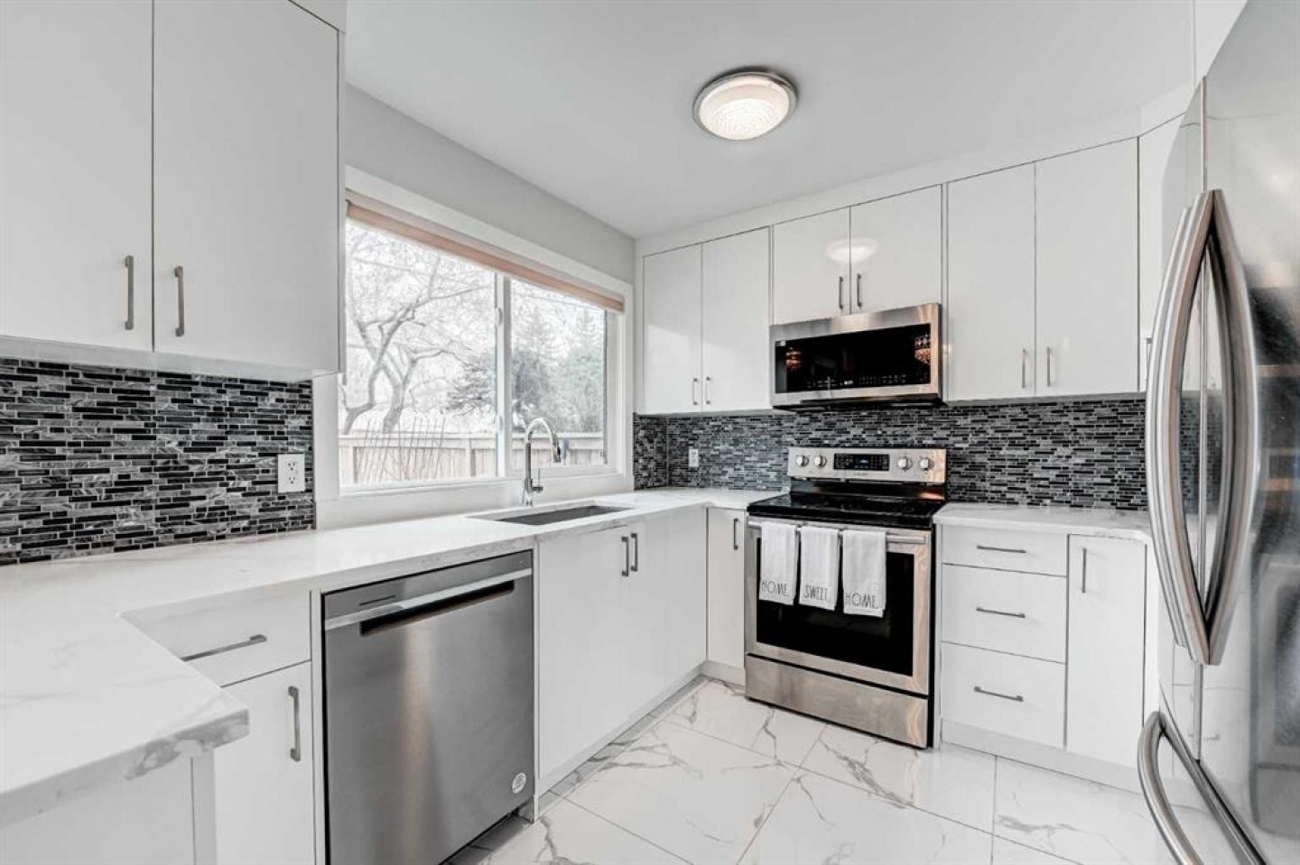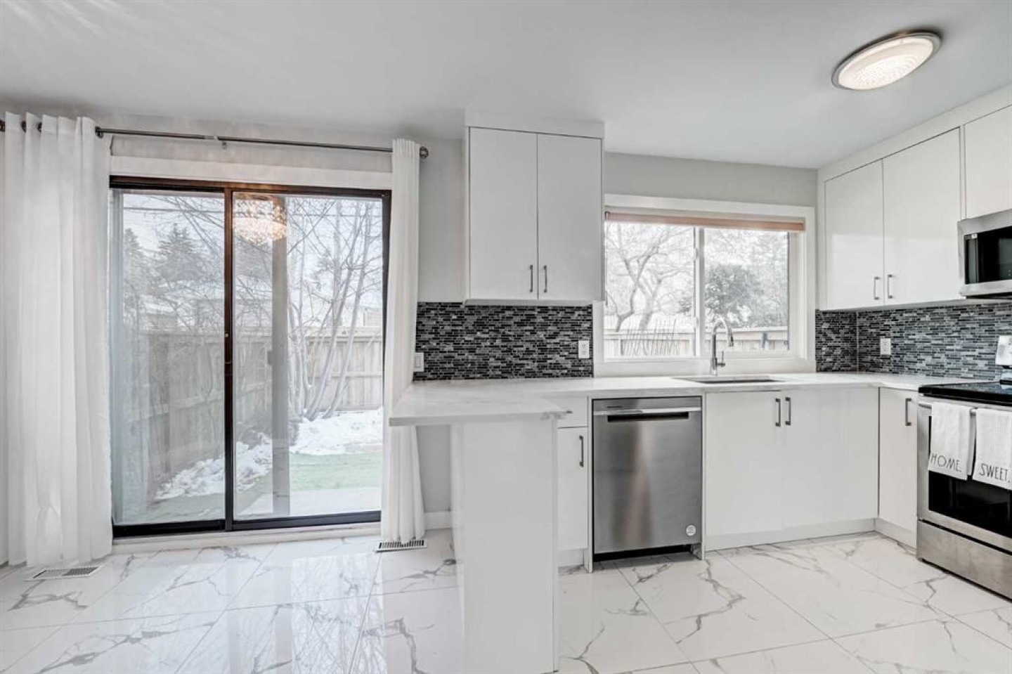 Welcome to 43 - 5019 46th Avenue SW. A beautifully upgraded, spacious, and light-filled home that is truly move-in ready. Thoughtful attention to detail is evident throughout, with flat ceilings, quartz countertops, luxury vinyl plank flooring throughout, upgraded vinyl windows, and newer high efficient furnace and hot water heater. Step outside to your private, fully fenced backyard—an inviting summer sanctuary complete with blooming flowers, climbing vines, and returning robins year after year. A built-in sprinkler system keeps the space effortlessly lush and green, while the charming rose garden out front adds instant curb appeal. Inside, the luxurious kitchen features soft-close cabinetry, Samsung stainless steel appliances, and generous counter space—perfect for everyday living and entertaining. The open-concept living and dining area is warm and welcoming, highlighted by a cozy electric fireplace framed in quartz. Custom wrought iron and wood railings add character and craftsmanship to the staircase. Upstairs, you’ll find two generously sized bedrooms, including a primary retreat with a two-piece ensuite. a large closet and mountain views. An open loft on this level offers a versatile space ideal for a home office, reading nook, or yoga area. The basement provides ample storage and convenient step-free access to the heated attached garage. Completing the picture are quiet neighbors on both sides and a safe, friendly complex where residents genuinely look out for one another—creating a peaceful, welcoming place to call home. Call today for you private viewing!