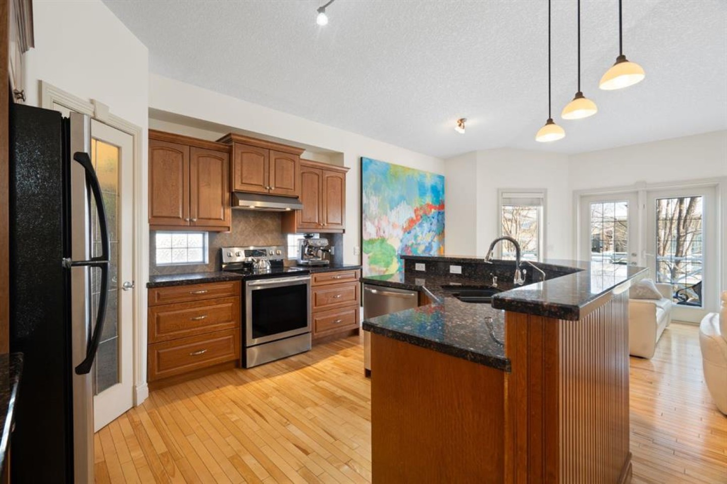 Designed for comfort and ease, the main floor offers everything you need for day to day living, including a spacious primary bedroom, 1.5 bathrooms, laundry, and an open concept kitchen and living area. Vaulted ceilings, original hardwood floors, and granite countertops create a sense of warmth and openness that feels both timeless and inviting. A natural gas fireplace anchors the living space, making it equally suited for quiet evenings or entertaining.