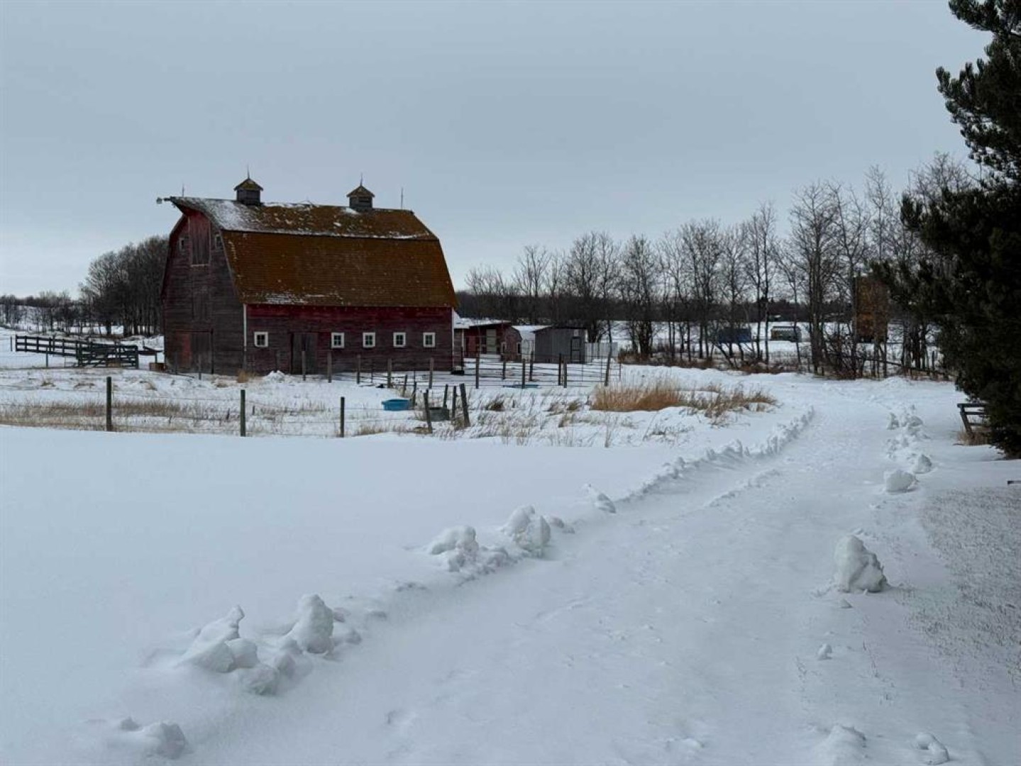 Large 6 Bedroom (4 up/ 2 down) Home with over 3100 sq ft of interior living space. Modern Kitchen & Dining area, plus separate Family & Living rooms. Total 4 washrooms including the Ensuite in the Master Bed. Basement also has a Rec Room, large Laundry, Utility Room, and extra Storage. Attached heated 673 sq ft Double Garage. Total 10.72 acres of land with 32' x 40' Hip Roof Barn and approx. 10 small outbuildings or shelters. Property is partly fenced with ample space to garden & play. Numerous mature trees add to it's privacy, even though it is only 2.5 miles to Vermilion, AB.