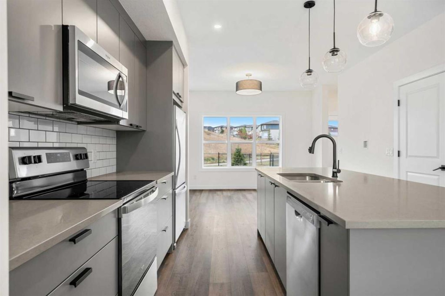 Welcome to the NEWLY BUILT #1206, 525 RIVER HEIGHTS DRIVE, a beautiful townhome that includes a NEW HOME WARRANTY and could offer a GST REBATE FOR QUALIFIED BUYERS. Enjoy a LARGE FENCED BACKYARD backing WEST that provides the feel of a single-family home. Step inside to a bright, airy main floor featuring a MODERN OPEN-CONCEPT LAYOUT that is both stylish and functional. At the heart of the home is a SLEEK CONTEMPORARY KITCHEN with QUARTZ COUNTERTOPS, MATTE BLACK HARDWARE, WHIRLPOOL STAINLESS STEEL APPLIANCES, SOFT-CLOSE CABINETRY, and a CENTRAL ISLAND WITH SEATING, ideal for casual dining or entertaining. The kitchen flows seamlessly into the dining and living areas, where LARGE WINDOWS and LUXURY VINYL PLANK FLOORING create a bright and inviting atmosphere. A POWDER ROOM and a DEDICATED MUDROOM off the back entrance provide added convenience and organization for daily living. Upstairs, the SPACIOUS PRIMARY BEDROOM includes a WALK-IN CLOSET and a PRIVATE 3-PIECE ENSUITE. Two additional bedrooms offer flexible space for children, guests, or a home office. A FULL 4-PIECE BATHROOM and a CENTRALLY LOCATED LAUNDRY AREA make busy routines easier and more efficient. The UNFINISHED BASEMENT provides exciting potential for future development, additional storage, or a customized space that fits your lifestyle. Designed with comfort and sustainability in mind, the home includes DUAL-PANE WINDOWS, a HIGH-EFFICIENCY HVAC SYSTEM, and an HRV UNIT for consistent comfort and performance year-round. Outside, you can relax on your PRIVATE REAR PATIO or enjoy a quiet morning on the COVERED FRONT PORCH. Two ASSIGNED PARKING STALLS add convenience, and with LANDSCAPING AND SNOW REMOVAL INCLUDED, this property offers truly LOW-MAINTENANCE LIVING. Located in the well-established community of RIVERSONG, you are just minutes from SCHOOLS, SCENIC WALKING PATHS, PARKS, CO-OP and the SPRAY LAKE SAWMILLS FAMILY SPORTS CENTRE. QUICK ACCESS TO HIGHWAY 1 and 22 makes it easy to reach CALGARY or escape to the MOUNTAINS for a weekend getaway. With QUALITY FINISHES, a SMART LAYOUT, and a VIBRANT NEIGHBORHOOD, this home is designed for modern, comfortable living. CONTACT to view the home TODAY as this home is MOVE IN READY! The FREESTONE SHOWHOME AT 525 RIVER HEIGHTS DRIVE is open on WEEKENDS from 12 – 5pm!