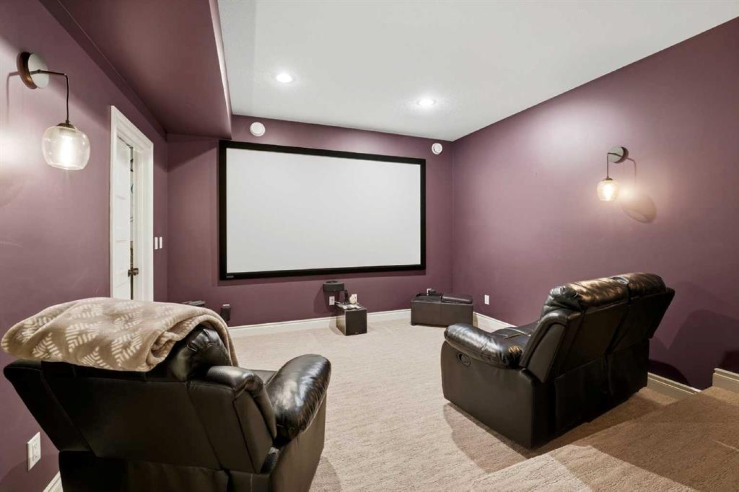 The fully finished basement offers a big family room with wet bar, a media room with built-in speakers, projector and tiered seating, plus three additional bedrooms and a 5pc bath with dual sinks. In-floor heat adds year-round comfort.