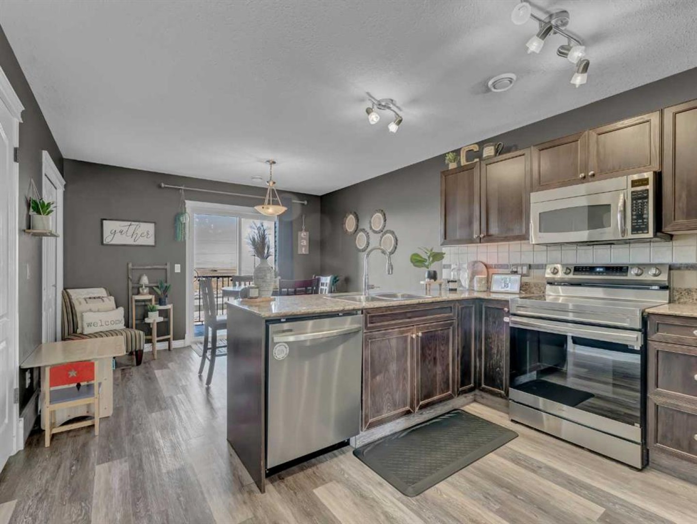 162 Northlands Point NE. Welcome to this beautifully updated 3-bedroom, 2-bathroom two-storey condo offering modern finishes, functional living, and unobstructed prairie views from your private covered deck. Thoughtfully refreshed throughout, this home is move-in ready and filled with natural light. The main floor features durable vinyl flooring and a spacious front living room, highlighted by a large window that floods the space with sunshine. The updated kitchen is both stylish and practical, showcasing upgraded cabinetry, granite countertops, and newer stainless steel appliances (2024) Flowing seamlessly into the generous dining area, this space opens directly onto your private covered deck—perfect for morning coffee, outdoor dining, or simply relaxing while enjoying the wide-open views. A 2-piece bathroom completes the main level. Upstairs, you’ll find three well-sized bedrooms, including a comfortable primary suite with a walk-in closet. A full 4-piece bathroom and the added convenience of upstairs laundry make daily living easy and efficient. This unit includes two parking stalls plus additional storage located off the deck. Condo fees of $308.16/month include all utilities except electricity, offering excellent value. The furnace and central air conditioning were professionally serviced this summer, providing added peace of mind. Ideally located in a family-friendly neighbourhood close to the Big Marble Go Centre, parks, schools, shopping, and public transit, this home delivers comfort, convenience, and outstanding value in a great location.