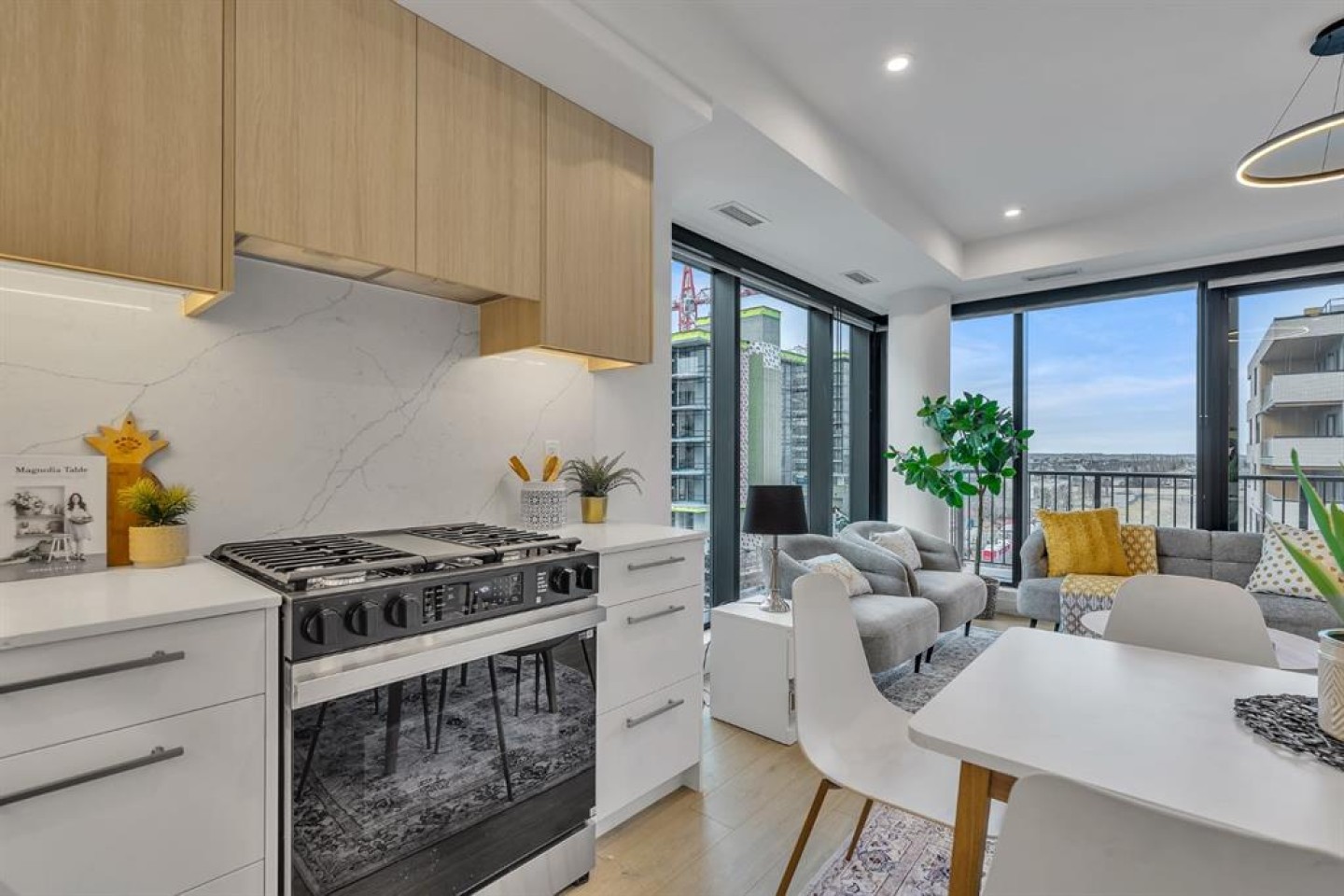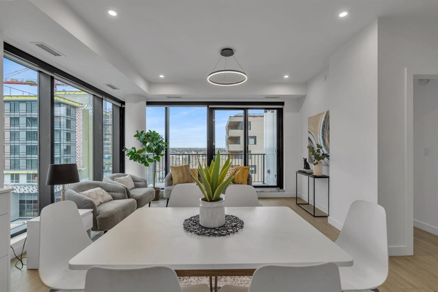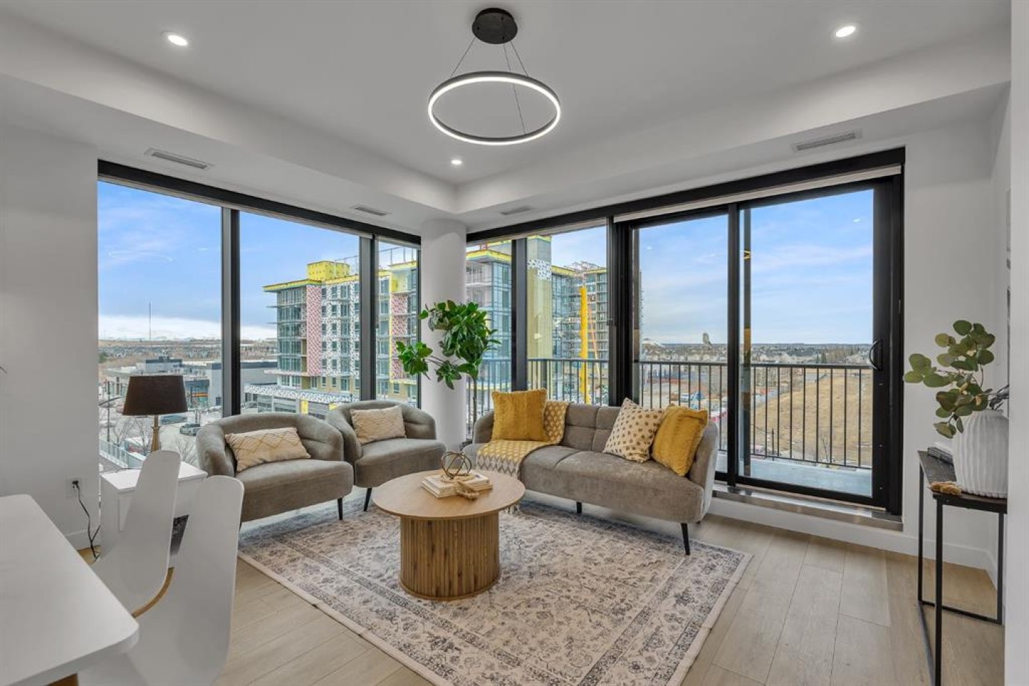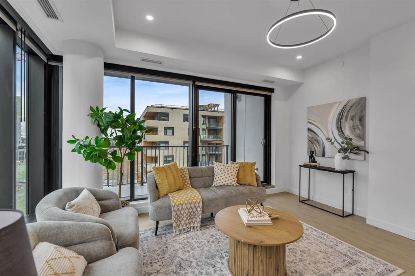 Step into bright, contemporary living with this never lived in corner residence at Plaza in West District, where floor to ceiling windows and southeast balcony exposure fill the home with natural light and warm south facing sun throughout the day. One of the larger two bedroom layouts in the building, this home offers an excellent balance of space and functionality rarely found in newer condo developments. The open concept design showcases a modern kitchen with quartz countertops, premium appliances, generous cabinetry, and a comfortable dining area that flows naturally into the living space and private balcony. The spacious primary suite includes its own ensuite and great storage, while the second bedroom works well for guests, a home office, or investment potential. Additional highlights include in suite laundry, titled underground parking, and a dedicated storage locker. Residents enjoy excellent building amenities including a fitness centre, owners’ lounge, pet spa, and bike storage. Ideally located about 15 minutes from downtown Calgary, under 5 minutes from Westside Recreation Centre, and within walking distance of shops, restaurants, cafés, and everyday services in the growing West District community. Opportunities like this in West District do not last long. Book your private showing today!