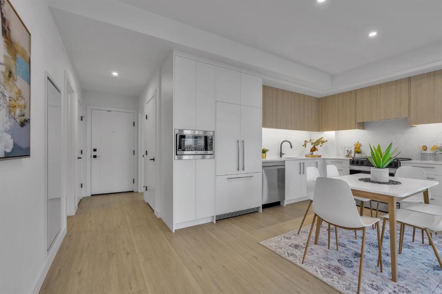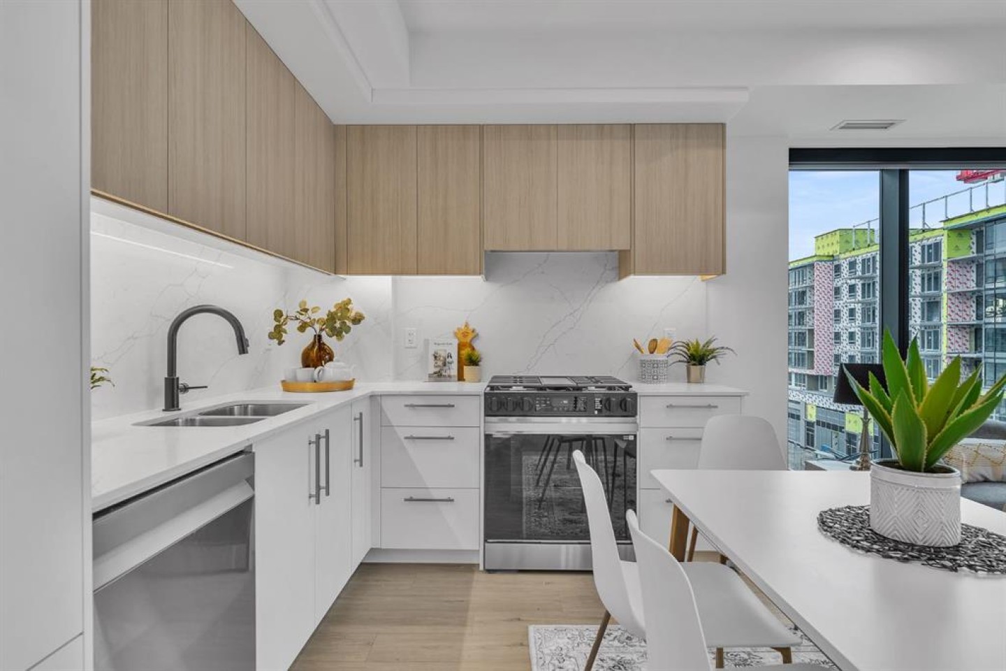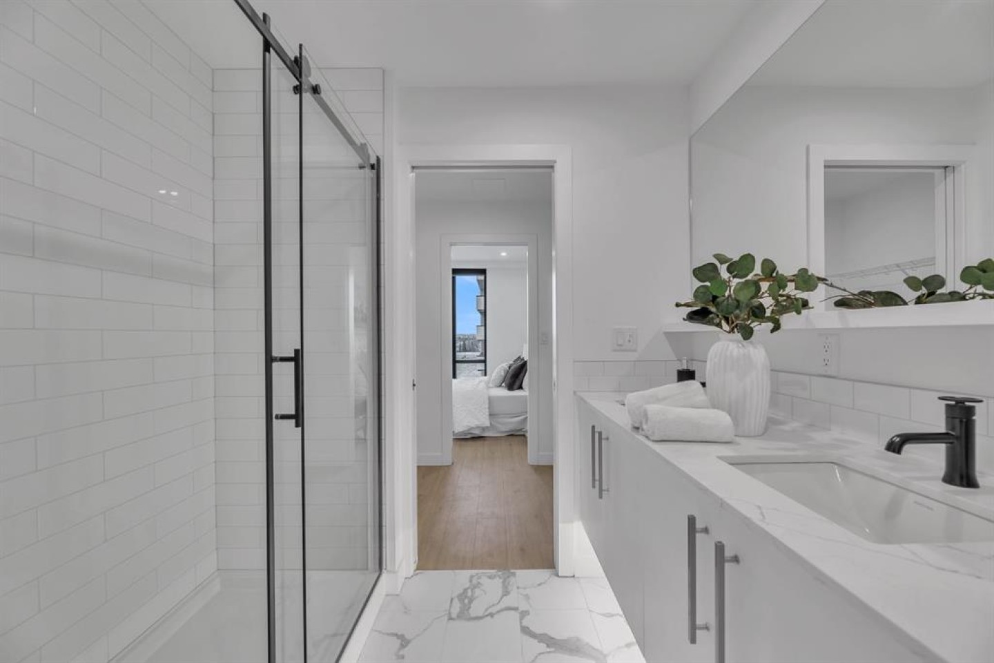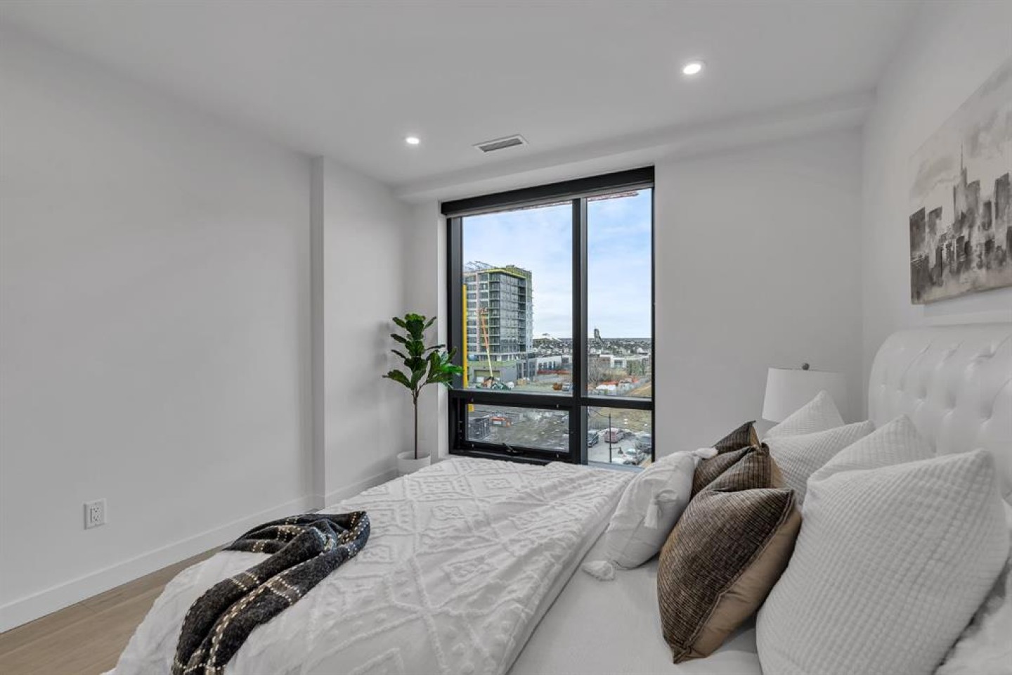 Step into bright, contemporary living with this never lived in corner residence at Plaza in West District, where floor to ceiling windows and southeast balcony exposure fill the home with natural light and warm south facing sun throughout the day. One of the larger two bedroom layouts in the building, this home offers an excellent balance of space and functionality rarely found in newer condo developments. The open concept design showcases a modern kitchen with quartz countertops, premium appliances, generous cabinetry, and a comfortable dining area that flows naturally into the living space and private balcony. The spacious primary suite includes its own ensuite and great storage, while the second bedroom works well for guests, a home office, or investment potential. Additional highlights include in suite laundry, titled underground parking, and a dedicated storage locker. Residents enjoy excellent building amenities including a fitness centre, owners’ lounge, pet spa, and bike storage. Ideally located about 15 minutes from downtown Calgary, under 5 minutes from Westside Recreation Centre, and within walking distance of shops, restaurants, cafés, and everyday services in the growing West District community. Opportunities like this in West District do not last long. Book your private showing today!