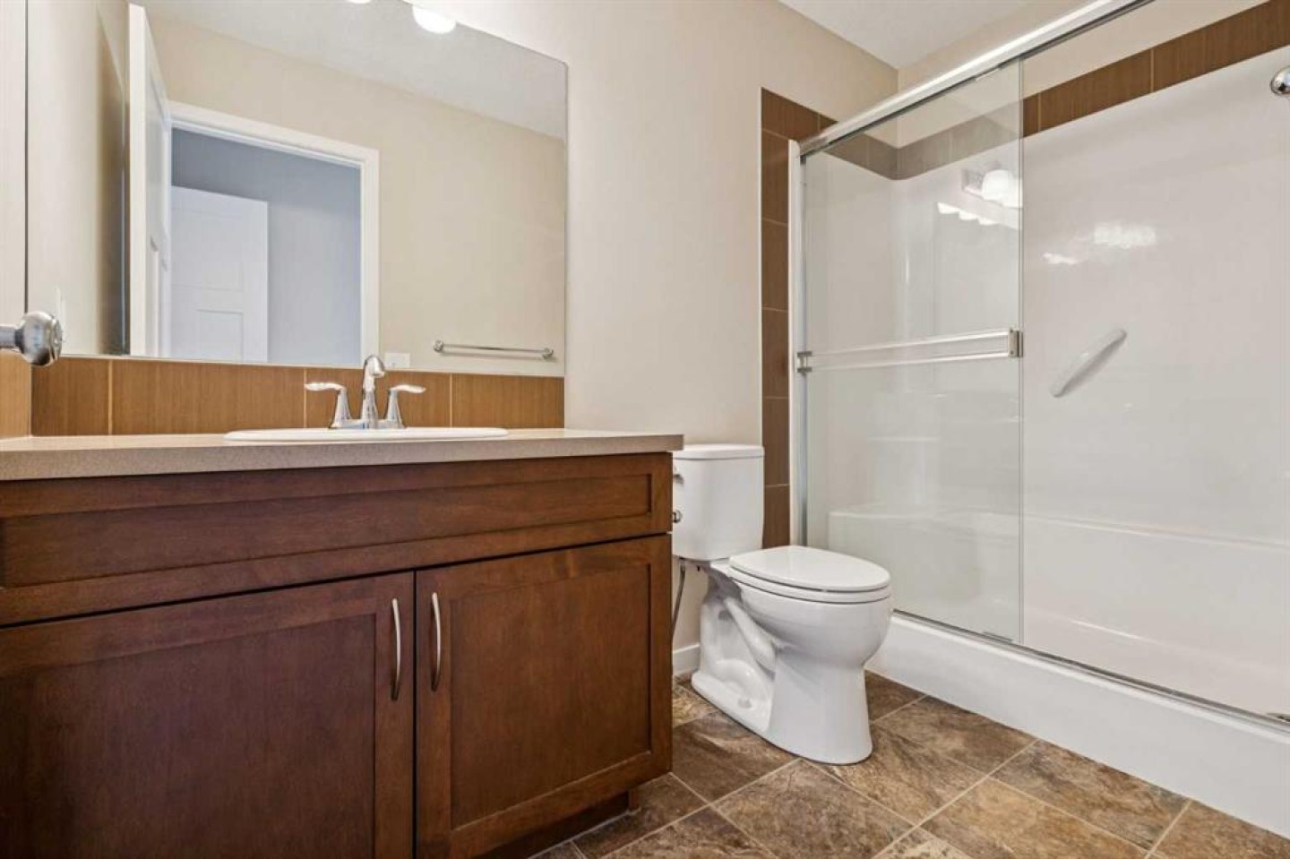Upstairs, you’ll find a SPACIOUS PRIMARY BEDROOM with a WALK-IN CLOSET and a PRIVATE ENSUITE (light fixture to be replaced with builder-grade). Two additional rooms include a front-facing bedroom and a versatile spare room, along with a 4-piece main bathroom. A large window in the stairwell adds even more natural light throughout the home.