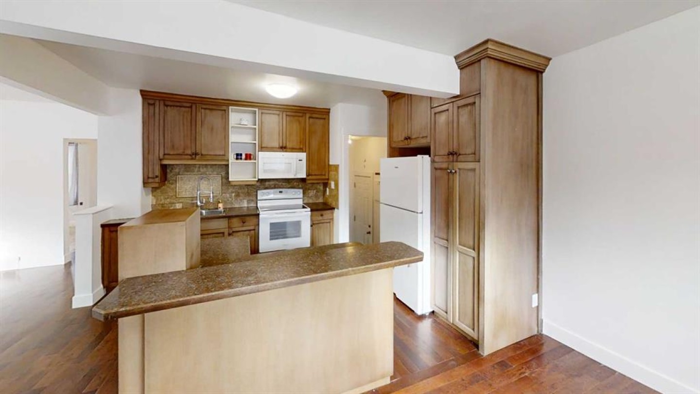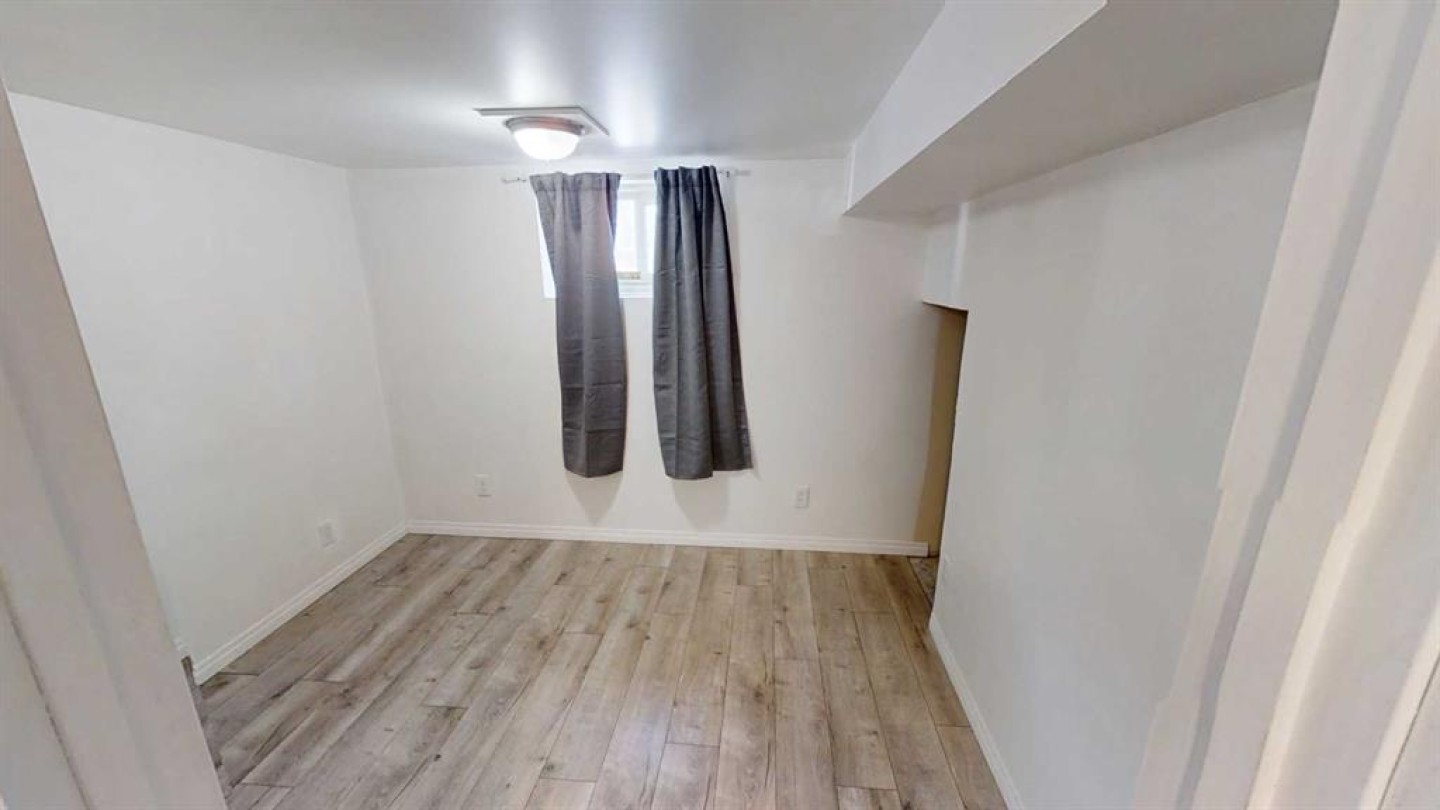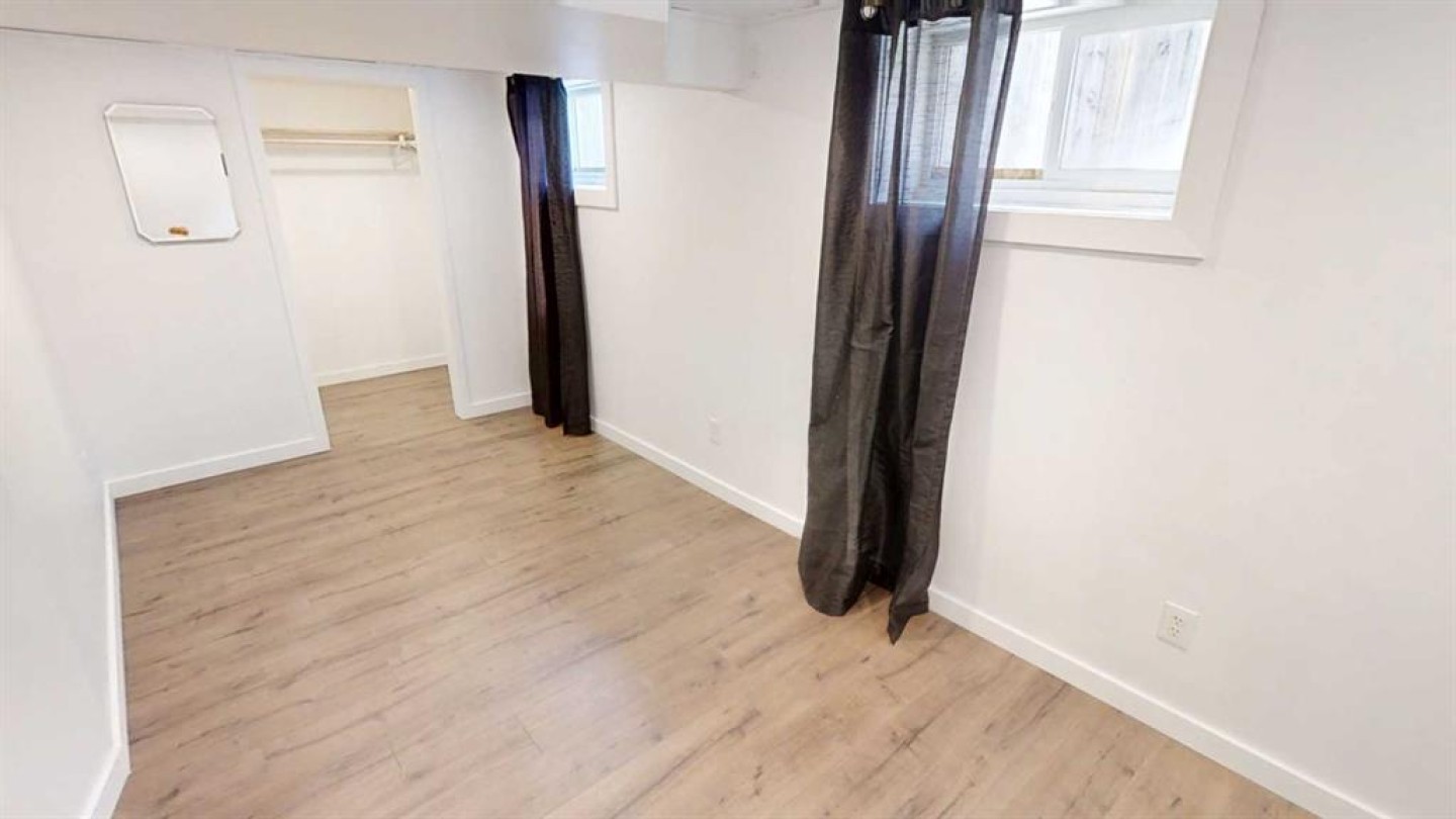 Cute 4 bedroom, 2 bathroom bungalow with detached garage conveniently located close to the hospital and schools. Main floor offers hardwood with tile inlay as well as vinyl and cork flooring, an open concept kitchen, living and dining, 2 bedrooms and 4 piece bathroom with tiled shower surround. The kitchen has been updated to include maple cabinets with eat up island and new fridge, stove and dishwasher. Downstairs offers a large bedroom with walk in closet (previously used as the primary), this room would also function as a family room with walk in storage space. Down here you also have another bedroom or office/workout/craft space (no closet) and 3 piece bathroom with tiled walk in shower. The side entry offers ease of access from your rear off street parking and detached garage (with power, shelving and garage opener) coupled with the laundry location, offers shared access for potential for basement suite. This home also offers fiber board siding, new shingles on the front side of the house and PVC windows.