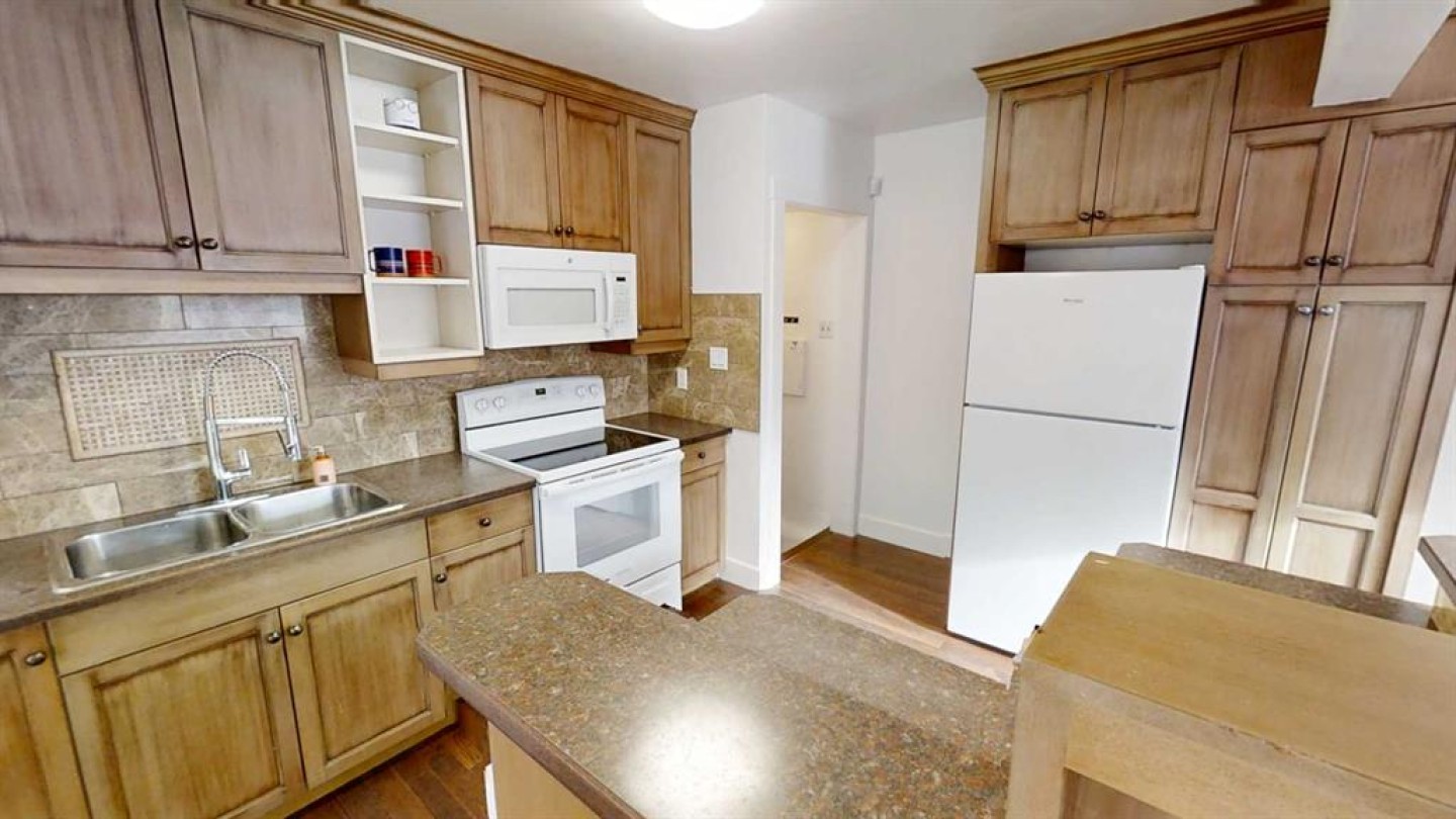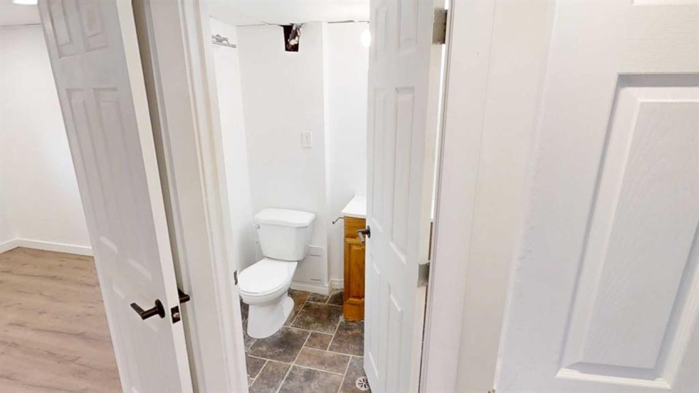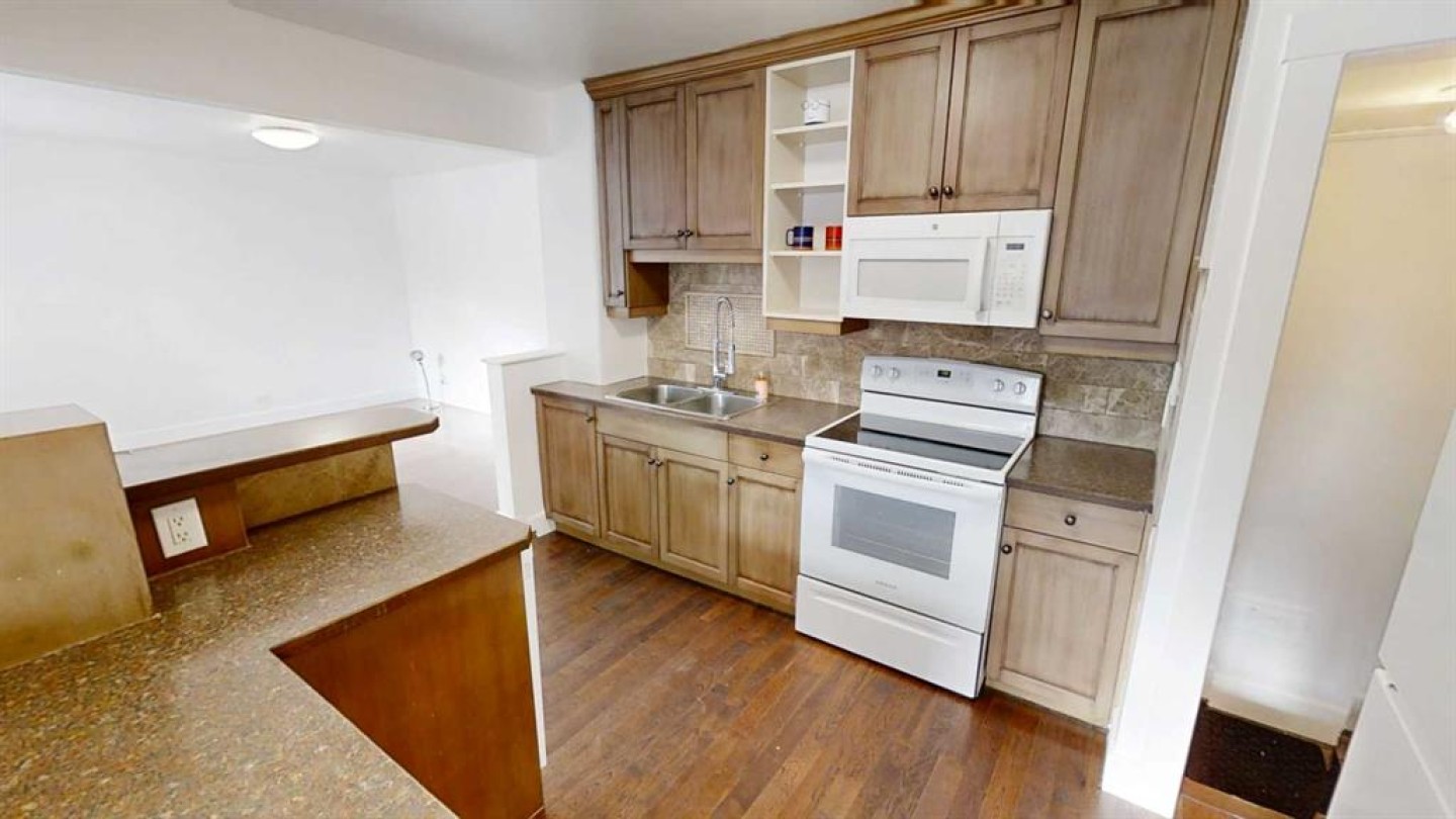 Cute 4 bedroom, 2 bathroom bungalow with detached garage conveniently located close to the hospital and schools. Main floor offers hardwood with tile inlay as well as vinyl and cork flooring, an open concept kitchen, living and dining, 2 bedrooms and 4 piece bathroom with tiled shower surround. The kitchen has been updated to include maple cabinets with eat up island and new fridge, stove and dishwasher. Downstairs offers a large bedroom with walk in closet (previously used as the primary), this room would also function as a family room with walk in storage space. Down here you also have another bedroom or office/workout/craft space (no closet) and 3 piece bathroom with tiled walk in shower. The side entry offers ease of access from your rear off street parking and detached garage (with power, shelving and garage opener) coupled with the laundry location, offers shared access for potential for basement suite. This home also offers fiber board siding, new shingles on the front side of the house and PVC windows.