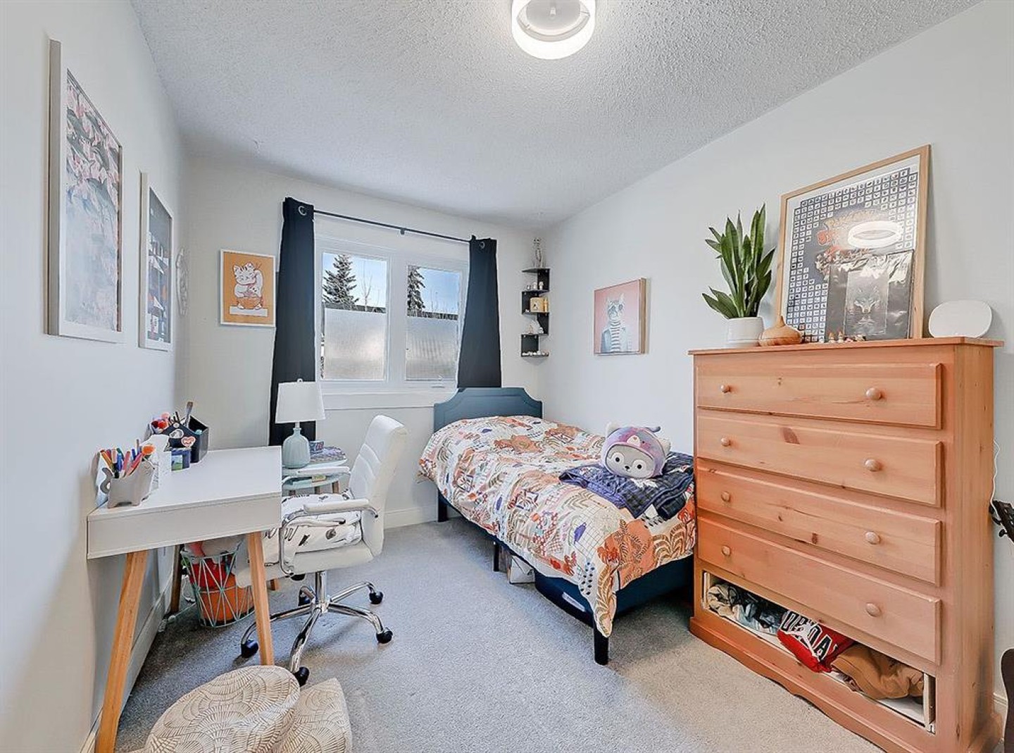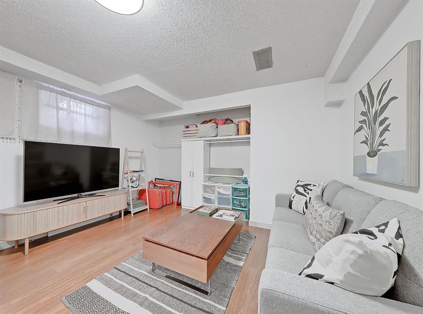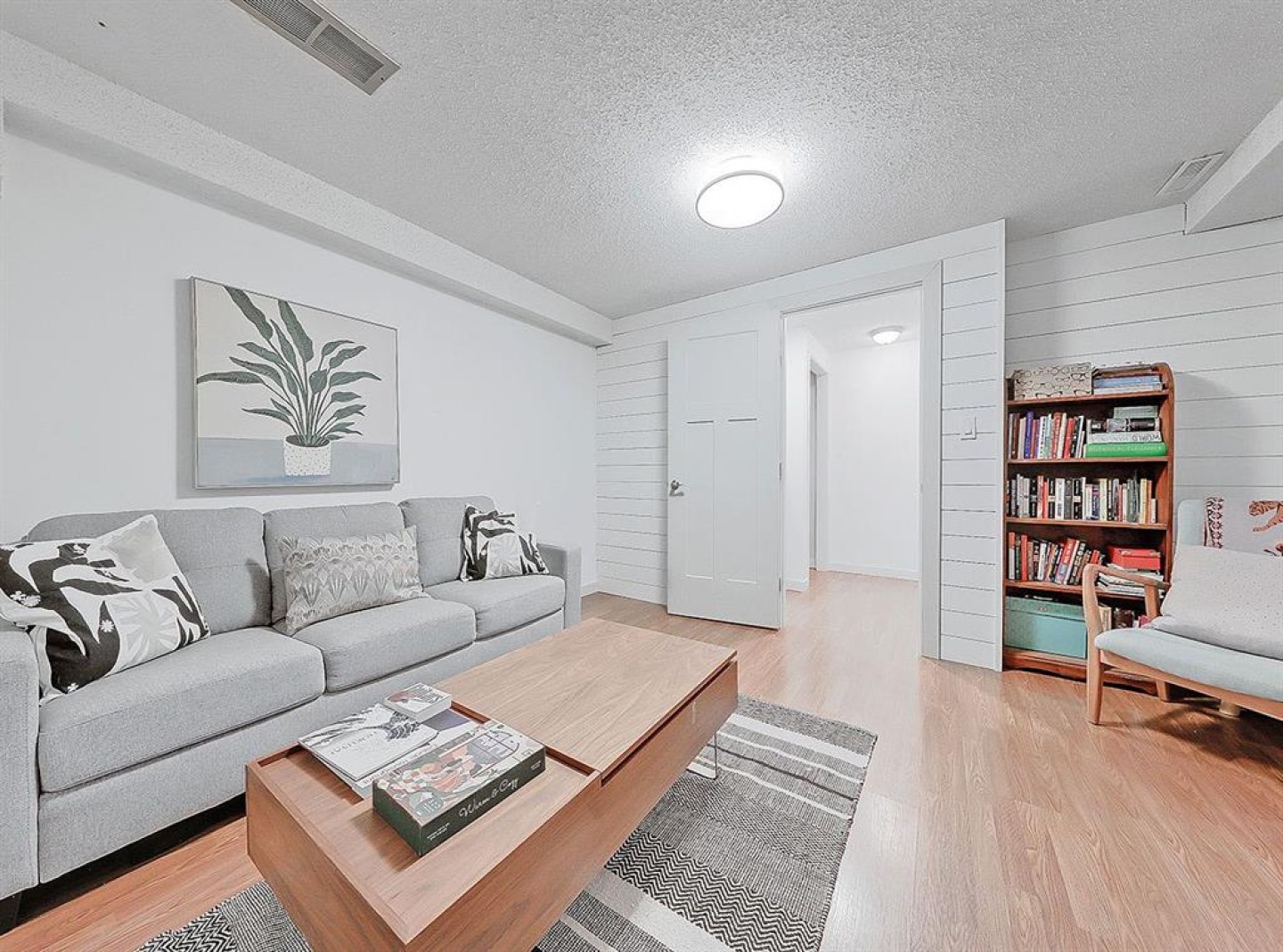 Upstairs, you’ll find a bright and modern bathroom alongside comfortable bedrooms. The fully finished basement expands the home’s versatility, offering a third bedroom with shiplap detailing; ideal for guests, a home office, or extra lounge space.