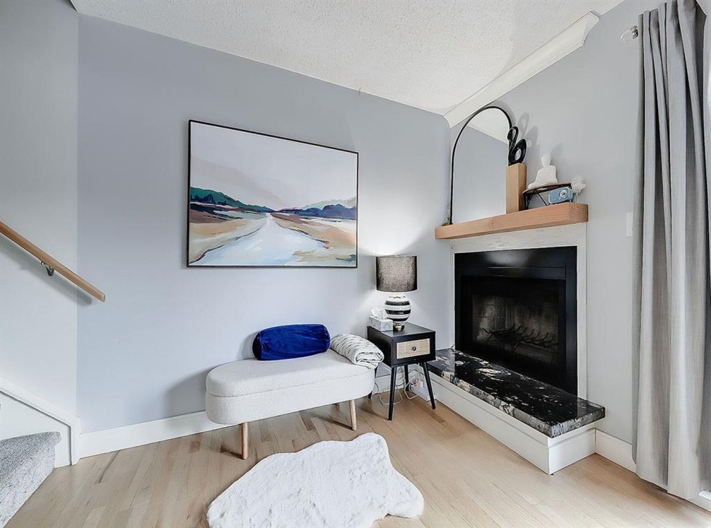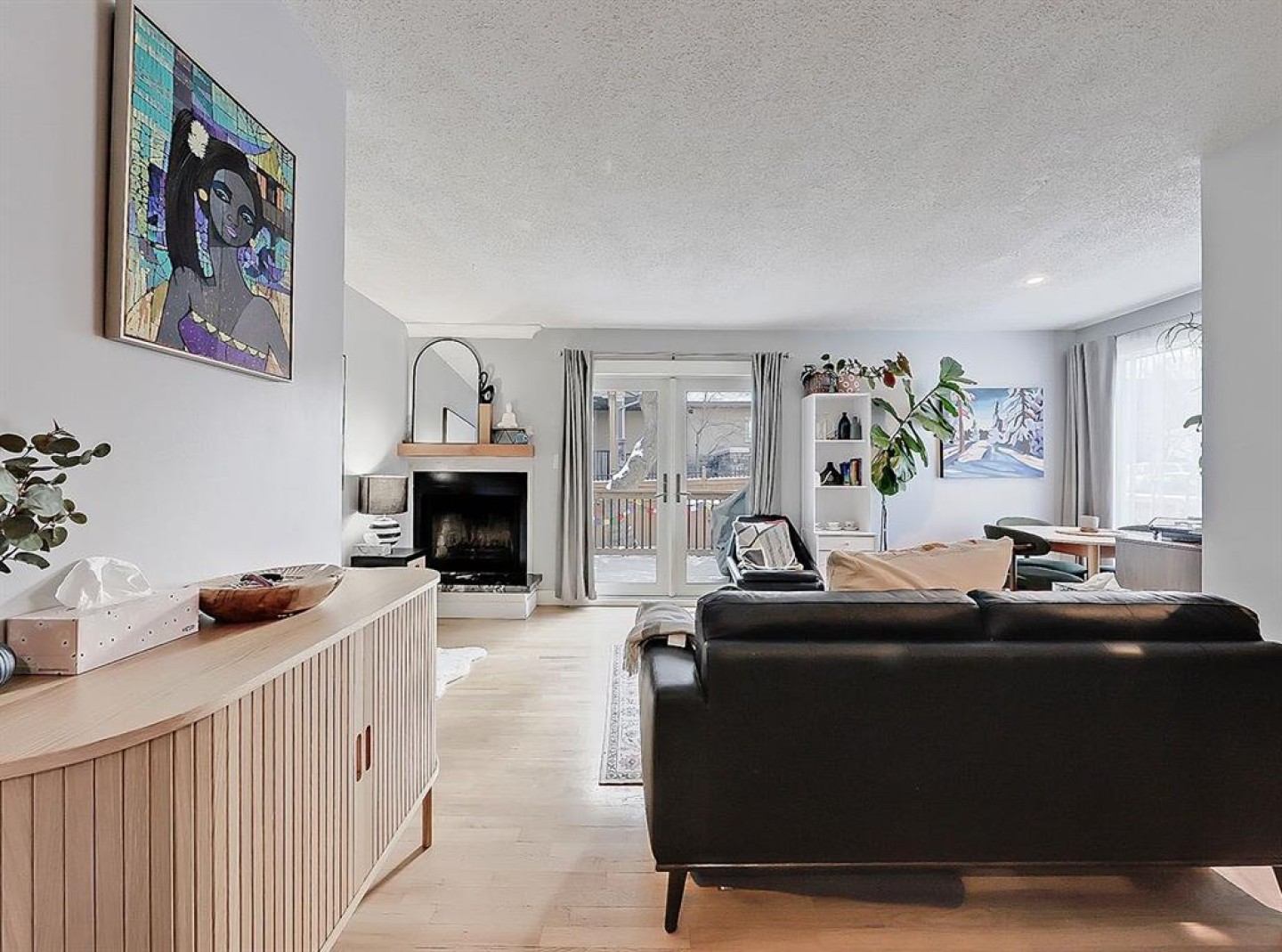 The main level is filled with natural west-facing light and has been tastefully refreshed with updated finishes, creating a warm and inviting space that feels immediately like home. The kitchen blends function and style with new appliances, while the adjacent living area is anchored by a wood burning fireplace perfect for cozy evenings. Patio doors open the space to your own private side yard, enhancing the natural flow of the home.