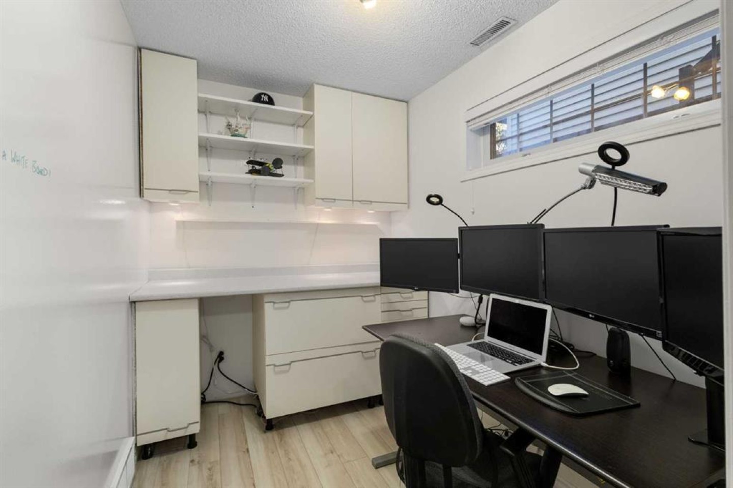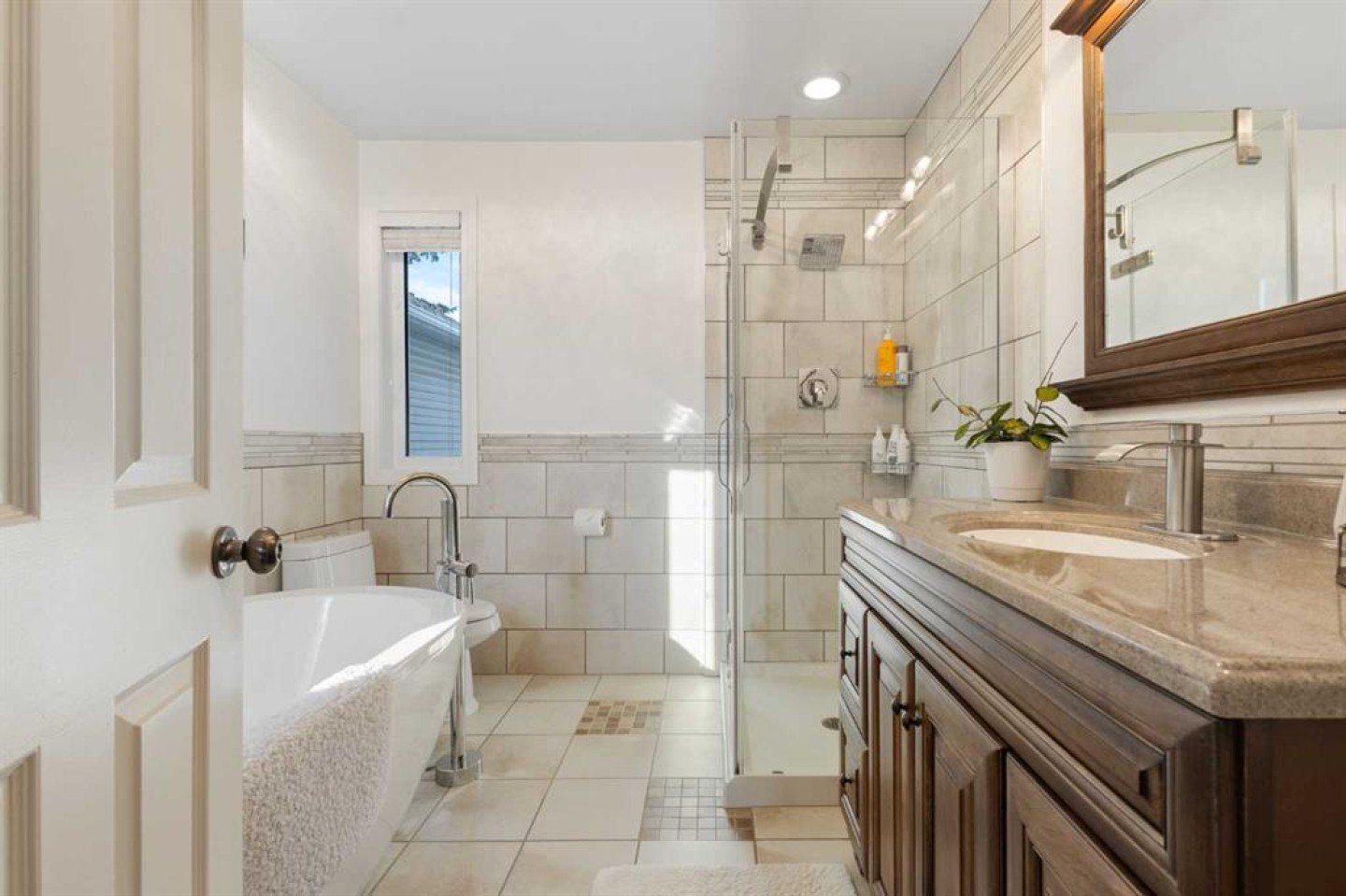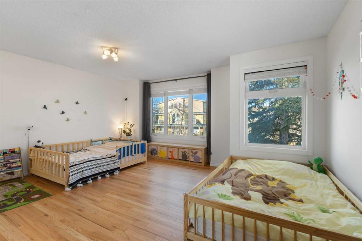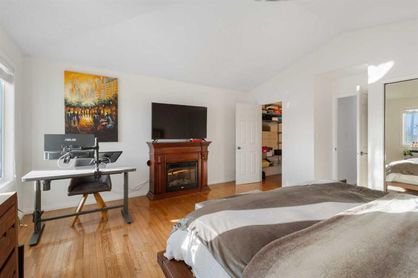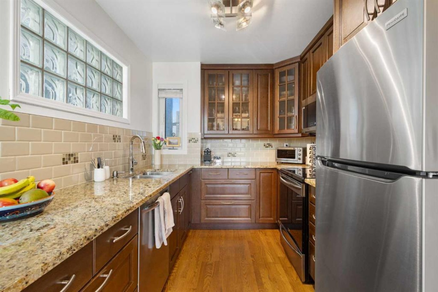 Welcome Home! Just one block from South Calgary Park, this beautifully Detached home combines modern comfort with timeless charm. The park features a bike pump track, city swimming pool, public library, beach volleyball courts, and enclosed winter rinks—all just steps away. Meticulously maintained, the home features numerous recent improvements, including new class 4 shingle roof (Apr 2025), energy efficient triple-pane low-E vinyl casement windows, fiberglass doors and jambs, solid hardwood on upper level and stairway (2023), new basement flooring (2023), and full suite of stainless steel appliances (replaced 2024–25). The raised foundation was engineered with drainage in mind, elevating the basement at street grade level for a dry, durable structure. Inside, the main floor is filled with natural light from large windows that showcase the solid hardwood floors throughout. A highly functional kitchen features granite countertops, upgraded oak cabinetry, soft-close drawers, an attached pantry, and under-cabinet lighting. The dining room is bright and open with a cozy gas fireplace. Upstairs, the spacious primary suite offers a double closet and a walk-in closet, along with a luxurious 5-piece en-suite with glass shower and free-standing soaker tub. A second large bedroom includes a private 4-piece en-suite and ample closet space. From north-facing bedroom windows, enjoy a partial downtown skyline view. Additional highlights include dual-flush toilets, bathroom timers, custom closet organizers, Bosch laundry on the upper-level, and a built-in VacuFlo central vacuum system. A separate side entry provides potential to legally suite the basement (subject to city approvals). The fully developed lower level features recently installed vinyl plank flooring throughout and includes a large rec room with bar, bedroom, office, and 3-piece bath. Outdoors, enjoy a south-facing, low-maintenance backyard with a composite deck, aluminum railings, and fenced perimeter providing ample space for play or gardening. A double detached garage with an extra-high roof offers convenient parking and generous storage. Don’t miss your chance to call Marda Loop home!