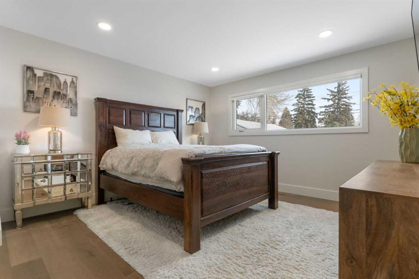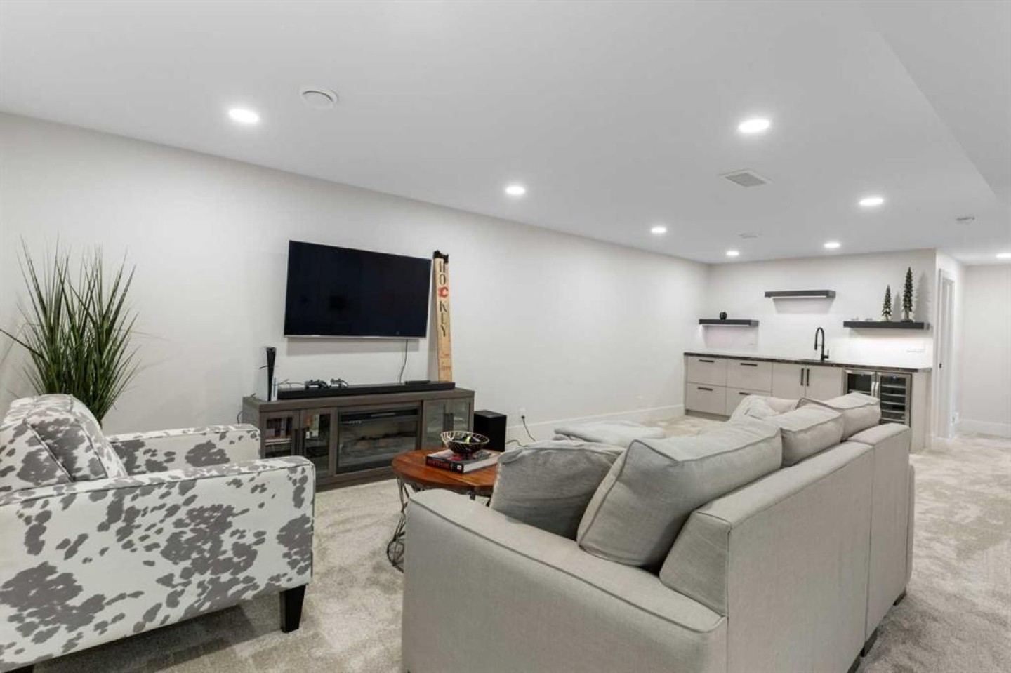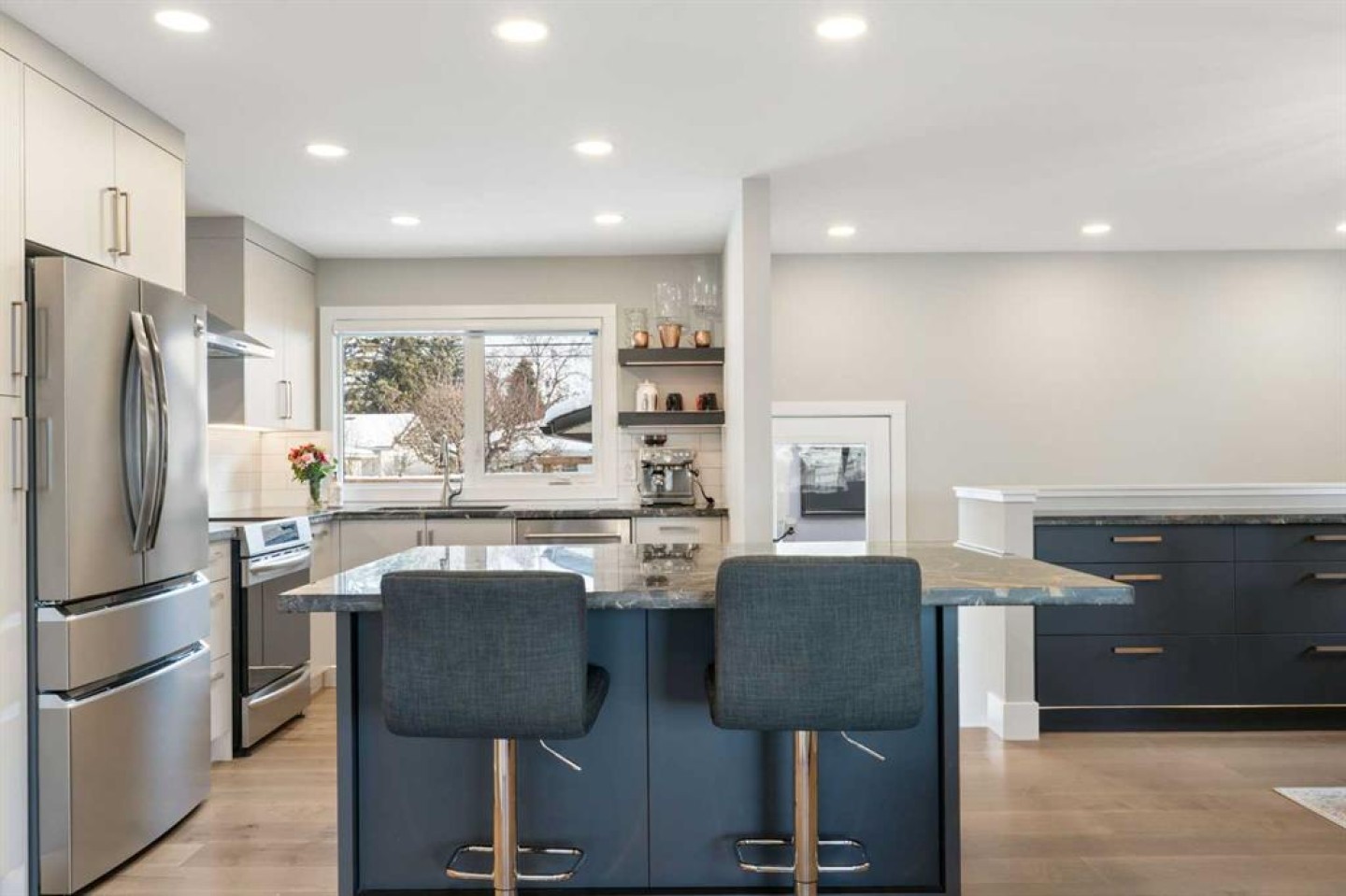 Welcome to 9936 Maplecreek Drive SE, a beautifully reimagined elevated bungalow nestled in the heart of the highly coveted Maple Ridge community. Showcasing a striking modern mid-century aesthetic, exceptional craftsmanship, and SMART home living, this residence offers a seamless blend of timeless design and contemporary luxury. With 1,115 sq. ft. of thoughtfully designed living space above grade and an additional 900 sq. ft. of fully developed basement, the home features 4 bedrooms and 3 bathrooms—perfectly suited for families, professionals, and those who love to entertain. The exterior has been meticulously transformed with refreshed stucco, sleek black windows, refined architectural detailing, and elegant Glowstone front lighting. Professionally landscaped grounds showcase exposed aggregate concrete steps, a wraparound patio, and a custom-built pergola with ambient string lighting—creating inviting outdoor spaces ideal for both intimate evenings and larger gatherings. Elevated from the street, the home enjoys enhanced privacy and striking curb appeal. Inside, the open-concept main floor is bathed in natural light and enhanced by custom built-ins, powered blinds throughout, and a Bluetooth-enabled smart gas fireplace that anchors the living area. The designer kitchen is both stunning and functional, featuring two-toned grey cabinetry with gold accents, Italian marble countertops, under-cabinet and toe-kick lighting, and a spacious island with seating for three. An under-mounted sink overlooks the backyard, while newer appliances include an induction cooktop with air-fry capable oven and an upgraded refrigerator. The primary suite offers a serene retreat, complete with his and hers custom walk-in closets and a spa-inspired 4-piece ensuite with dual vanities, marble countertops, and a custom glass-enclosed shower. One additional bedroom and a beautifully appointed 4-piece bathroom complete the main level. The fully finished basement provides versatile living and entertaining space, featuring a media area, games space, and wet bar, along with two additional bedrooms, a 4-piece bathroom, epoxy-coated laundry flooring, a basement subfloor system, sump pump, and exterior French drain. WiFi-enabled washer and dryer are included. The refinished 25’x 23' double garage accommodates larger vehicles and storage needs and includes a WiFi-enabled garage door opener and EV charger. Additional upgrades include new electrical, HVAC, Carrier air conditioning, a smart Ecobee Premium thermostat with secondary sensor, water softener (excluding kitchen cold and exterior taps), upgraded attic insulation (previously R50), electronic programmable deadbolts, and a 7.29 kW solar panel system delivering enhanced energy efficiency and reduced utility costs. Impeccably finished and truly move-in ready, this exceptional home is steps from top-rated schools, parks, shopping, and everyday amenities—offering a rare opportunity to own in one of Calgary’s most desirable communities.