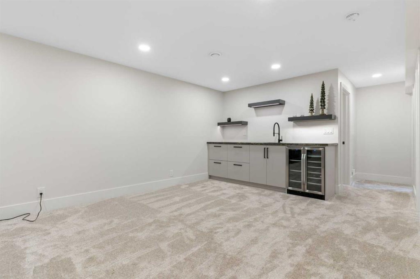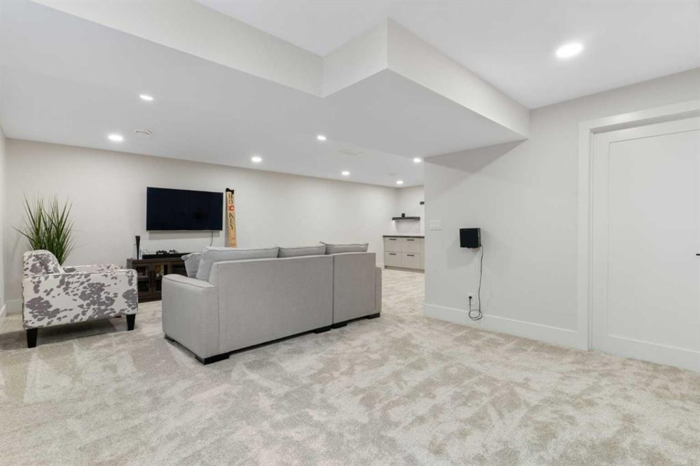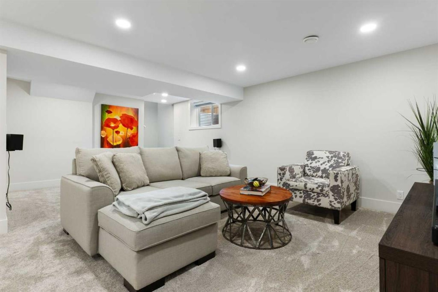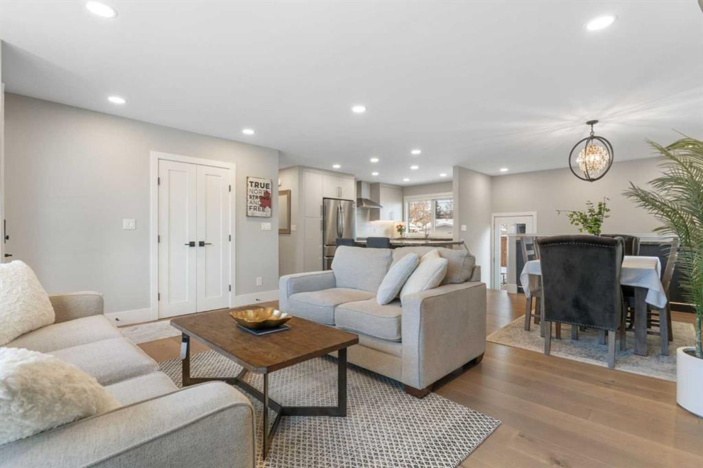 Welcome to 9936 Maplecreek Drive SE, a beautifully reimagined elevated bungalow nestled in the heart of the highly coveted Maple Ridge community. Showcasing a striking modern mid-century aesthetic, exceptional craftsmanship, and SMART home living, this residence offers a seamless blend of timeless design and contemporary luxury. With 1,115 sq. ft. of thoughtfully designed living space above grade and an additional 900 sq. ft. of fully developed basement, the home features 4 bedrooms and 3 bathrooms—perfectly suited for families, professionals, and those who love to entertain. The exterior has been meticulously transformed with refreshed stucco, sleek black windows, refined architectural detailing, and elegant Glowstone front lighting. Professionally landscaped grounds showcase exposed aggregate concrete steps, a wraparound patio, and a custom-built pergola with ambient string lighting—creating inviting outdoor spaces ideal for both intimate evenings and larger gatherings. Elevated from the street, the home enjoys enhanced privacy and striking curb appeal. Inside, the open-concept main floor is bathed in natural light and enhanced by custom built-ins, powered blinds throughout, and a Bluetooth-enabled smart gas fireplace that anchors the living area. The designer kitchen is both stunning and functional, featuring two-toned grey cabinetry with gold accents, Italian marble countertops, under-cabinet and toe-kick lighting, and a spacious island with seating for three. An under-mounted sink overlooks the backyard, while newer appliances include an induction cooktop with air-fry capable oven and an upgraded refrigerator. The primary suite offers a serene retreat, complete with his and hers custom walk-in closets and a spa-inspired 4-piece ensuite with dual vanities, marble countertops, and a custom glass-enclosed shower. One additional bedroom and a beautifully appointed 4-piece bathroom complete the main level. The fully finished basement provides versatile living and entertaining space, featuring a media area, games space, and wet bar, along with two additional bedrooms, a 4-piece bathroom, epoxy-coated laundry flooring, a basement subfloor system, sump pump, and exterior French drain. WiFi-enabled washer and dryer are included. The refinished 25’x 23' double garage accommodates larger vehicles and storage needs and includes a WiFi-enabled garage door opener and EV charger. Additional upgrades include new electrical, HVAC, Carrier air conditioning, a smart Ecobee Premium thermostat with secondary sensor, water softener (excluding kitchen cold and exterior taps), upgraded attic insulation (previously R50), electronic programmable deadbolts, and a 7.29 kW solar panel system delivering enhanced energy efficiency and reduced utility costs. Impeccably finished and truly move-in ready, this exceptional home is steps from top-rated schools, parks, shopping, and everyday amenities—offering a rare opportunity to own in one of Calgary’s most desirable communities.