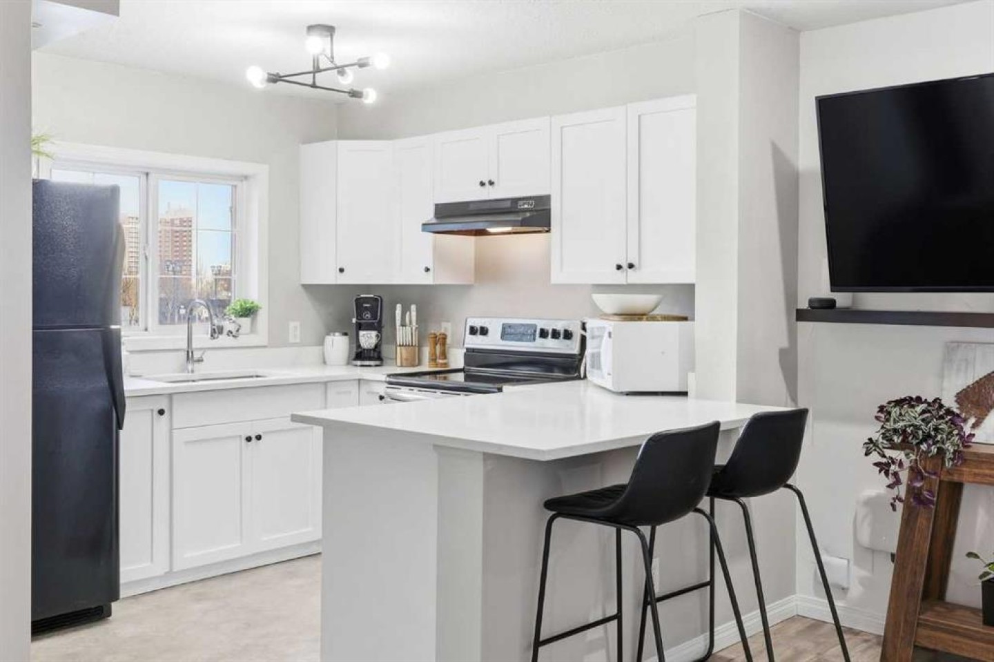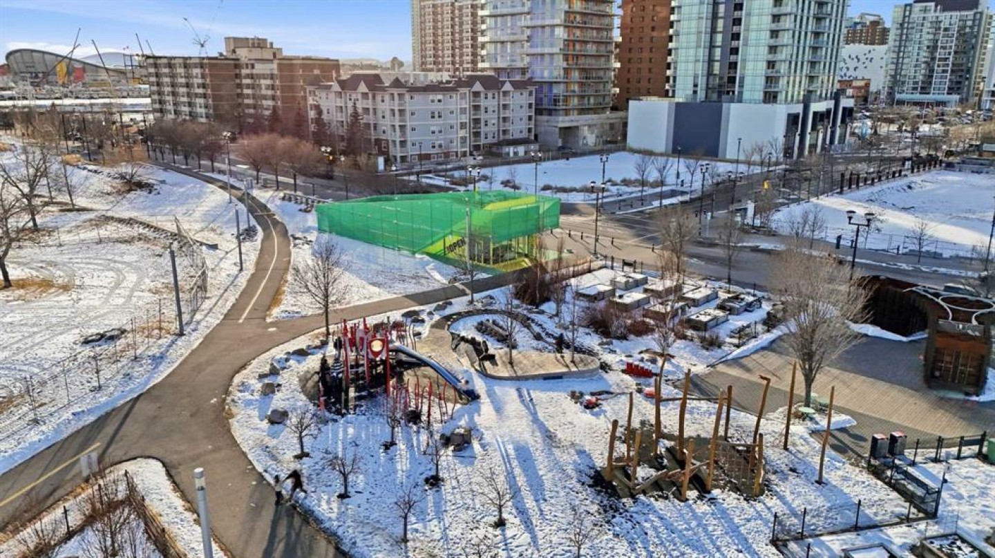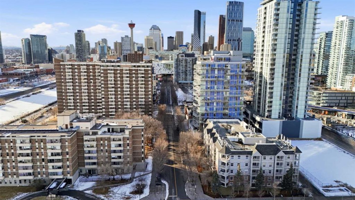 WELCOME - TO YOUR SPACIOUS CORNER UNIT in EAST VILLAGE - one of Calgary's most evolving communities. With 795 Square Feet, your new home in "RIVER TWIN" offers a noticeably more comfortable layout than many new builds. Both bedrooms are large enough to comfortably fit a KING-SIZED BED — making the layout ideal for roommates, guests, or a dedicated HOME OFFICE setup. The kitchen and bathroom have been FRESHLY UPDATED with new MATCHING QUARTZ COUNTERTOPS, creating a brighter, more cohesive feel throughout the OPEN-CONCEPT LIVING AND DINING AREA. HARD-SURFACE FLOORING THROUGHOUT (NO CARPET) adds durability and ease of maintenance, while IN-SUITE LAUNDRY + STORAGE UNIT (on your floor) enhances everyday livability. As a CORNER UNIT, the home benefits from ADDED PRIVACY (only 1 common wall) and NATURAL LIGHT. The BALCONY offers a quiet outdoor retreat — perfect for fresh air, container plants, or evening downtime. HEATED UNDERGROUND PARKING plus your CONDO FEES INCLUDE ALL UTILITIES — HEAT, WATER, GAS, AND ELECTRICITY. This RARE ALL-IN STRUCTURE provides exceptional cost certainty whether you're a home owner or investory seeking long-term profitability in this AIR BnB / Short Term Rental friendly building. The building itself is much LOWER DENSITY than you'll find in the area as it is only 5 floors and is primarily composed of TWO-BEDROOM RESIDENCES. The LOCATION has a lot to offer with the New CALGARY FLAMES ARENA and entertainment district opening in Fall of 2026, Fort Calgary park across the street, and you're just steps to the BOW RIVER PATHWAYS not to mention your conveinetly close proximity to DOWNTOWN. PET-FRIENDLY (WITH RESTRICTIONS), FLEXIBLE POSSESSION AVAILABLE, and has had the SAME OWNER FOR approx 15 YEARS — this is a WELL-ROUNDED OPPORTUNITY for buyers seeking SPACE, LOCATION, AND COST CERTAINTY in the downtown core. OPEN HOUSE this SUNDAY, Feb 1st from Noon - 2PM!