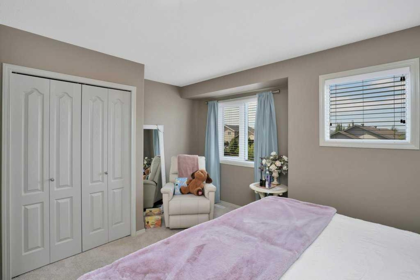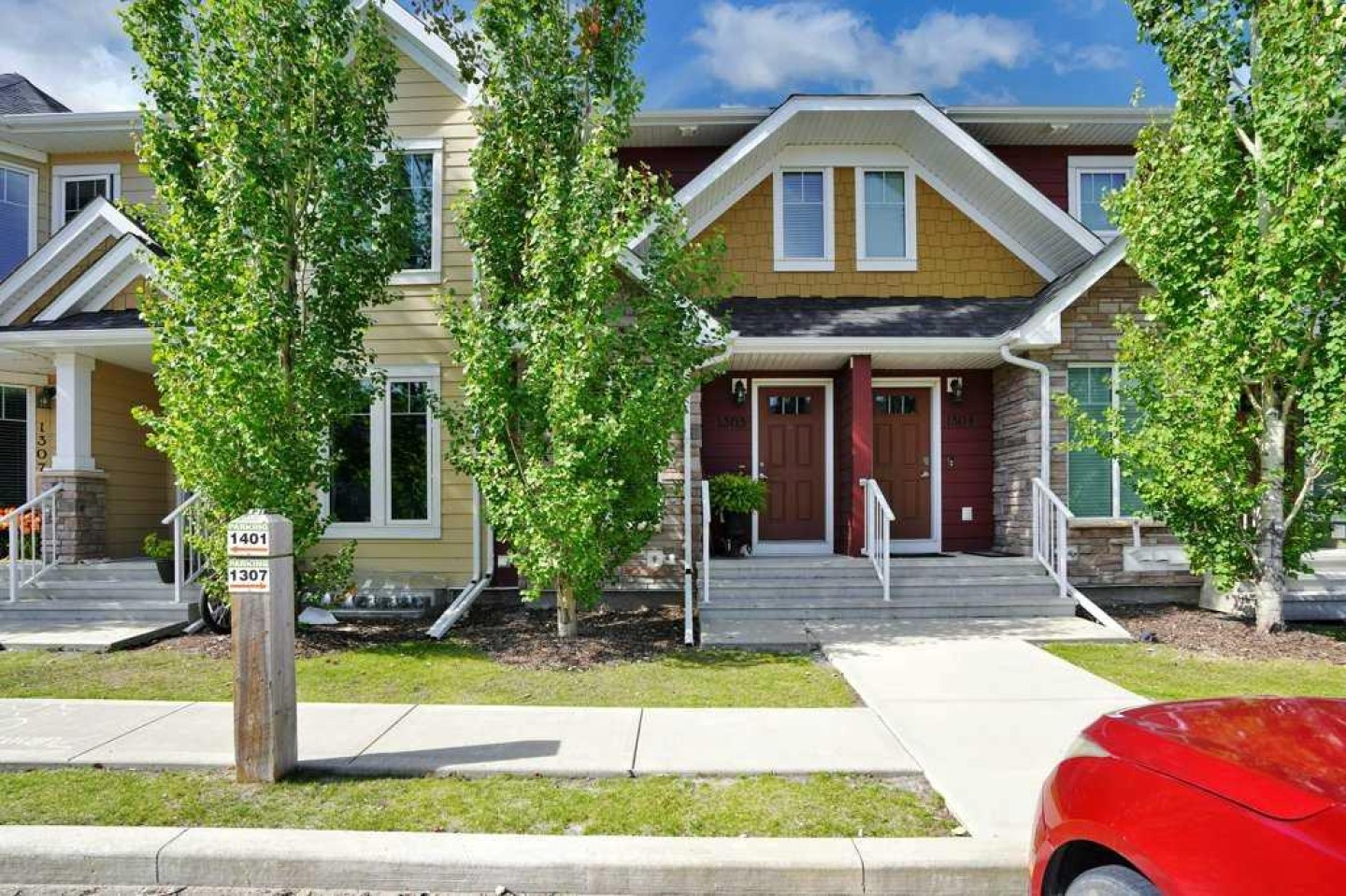 Don't miss this well maintained unit in one of Red Deer's most desired condominium complexes. Conveniently located close to shopping, coffee shop, pubs, schools, parks, trails and transit, this is the perfect spot for working professionals or a young family. Enter the home into the main floor living room, flow through into the dining area and kitchen featuring ample counter and cupboard space with stainless steel appliances. Walk out into the fenced back yard from the dining area. 2 pc powder room completes the main floor. Upstairs is the perfect layout for roommates, or teenagers, with 2 separate master bedrooms each with their own ensuite bath. The basement is undeveloped and awaits your finishing touches. Laundry is located in the lower level. Back yard is fully fenced and ready for your kids or pets and has access to the alley. This is a great starter unit, or add it to your rental portfolio. 2 assigned parking stalls are outside your front door.