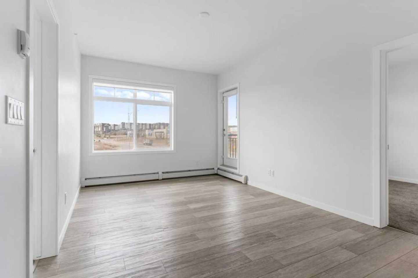 Stylish, well laid out TOP FLOOR 2 bedroom, 2 bathroom condo. Located in popular Sage Hill in the well maintained "Mark 101" by Shane Home, walking distance to shopping and amenities! Features include 9 foot ceilings, Luxury Vinyl Plank flooring and quartz counter tops throughout , vinyl windows with sleek blinds, and in-suite laundry. As you enter the unit, you will find a 4 piece bathroom, and the laundry closet. The modern Kitchen has a functional and warm feel, with dark brown laminate finished cabinets, quartz countertops, modern white subway tile backsplash and stainless steel appliances. Opening on to the kitchen is the family room with a large, bright, sunny window and a patio door leading to your private covered balcony, with gas line roughed in. The primary bedroom has an en-suite bathroom and double closets. The second bedroom is across the family room from the primary allowing for maximum privacy. This unit also includes 1 titled underground parking stall, a storage locker, and there is secure bike storage available in the parkade. Condo fees are affordable and include heat/water/sewer. Located just steps away from public transit, shopping, restaurants, and many other amenities, this is a GREAT place to live OR a wonderful investment property.