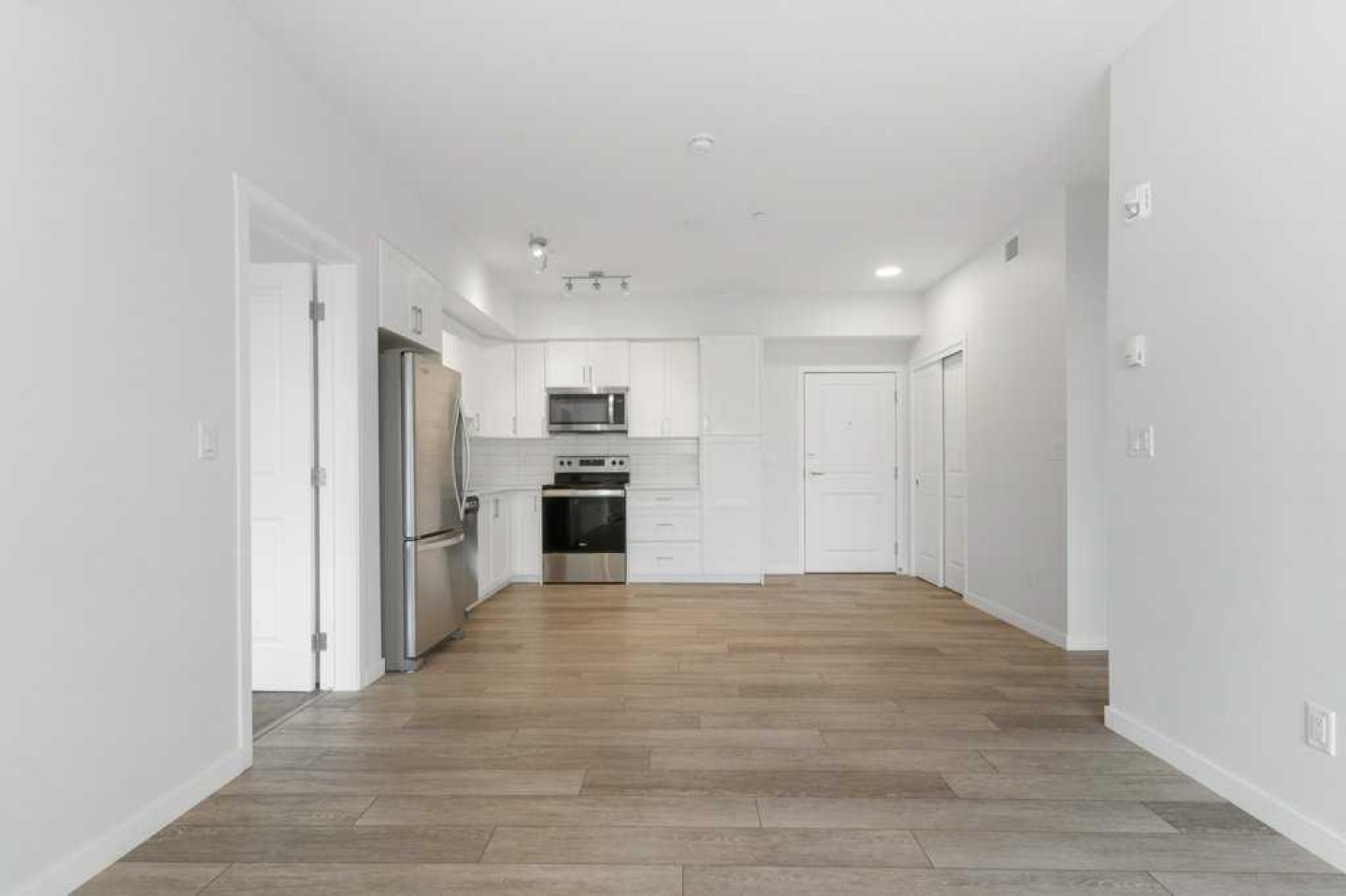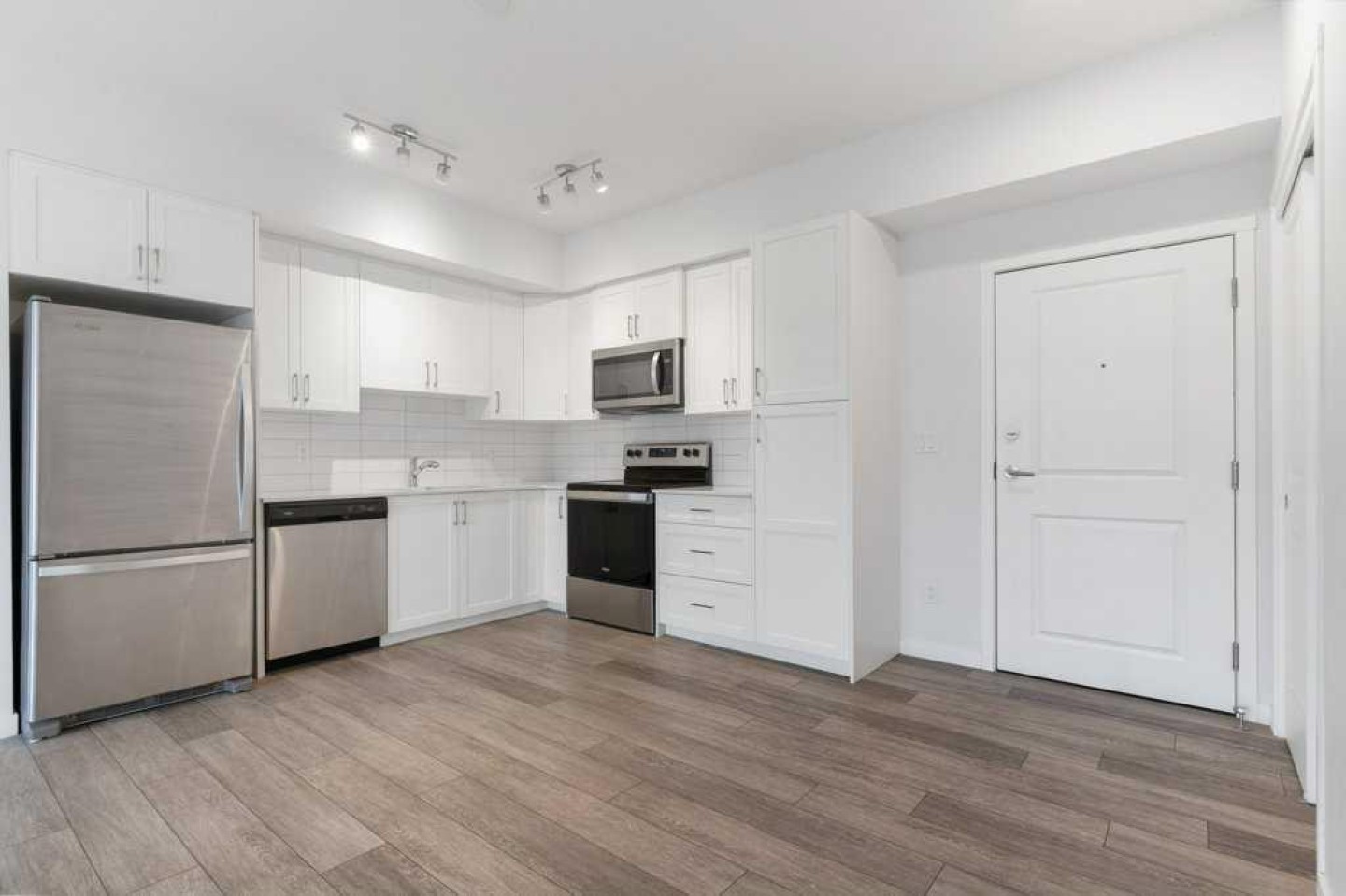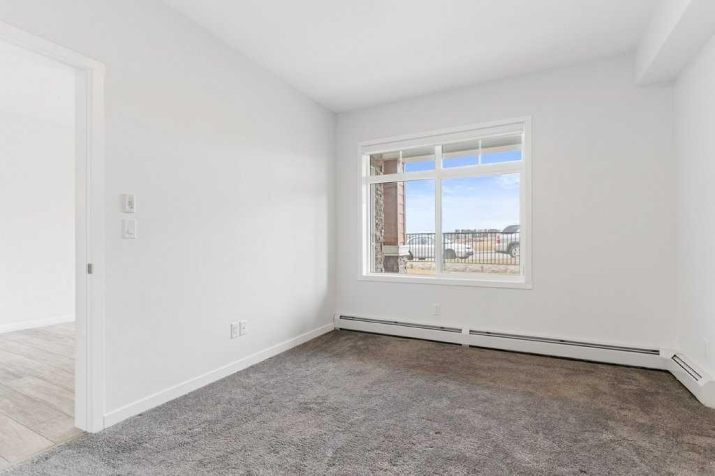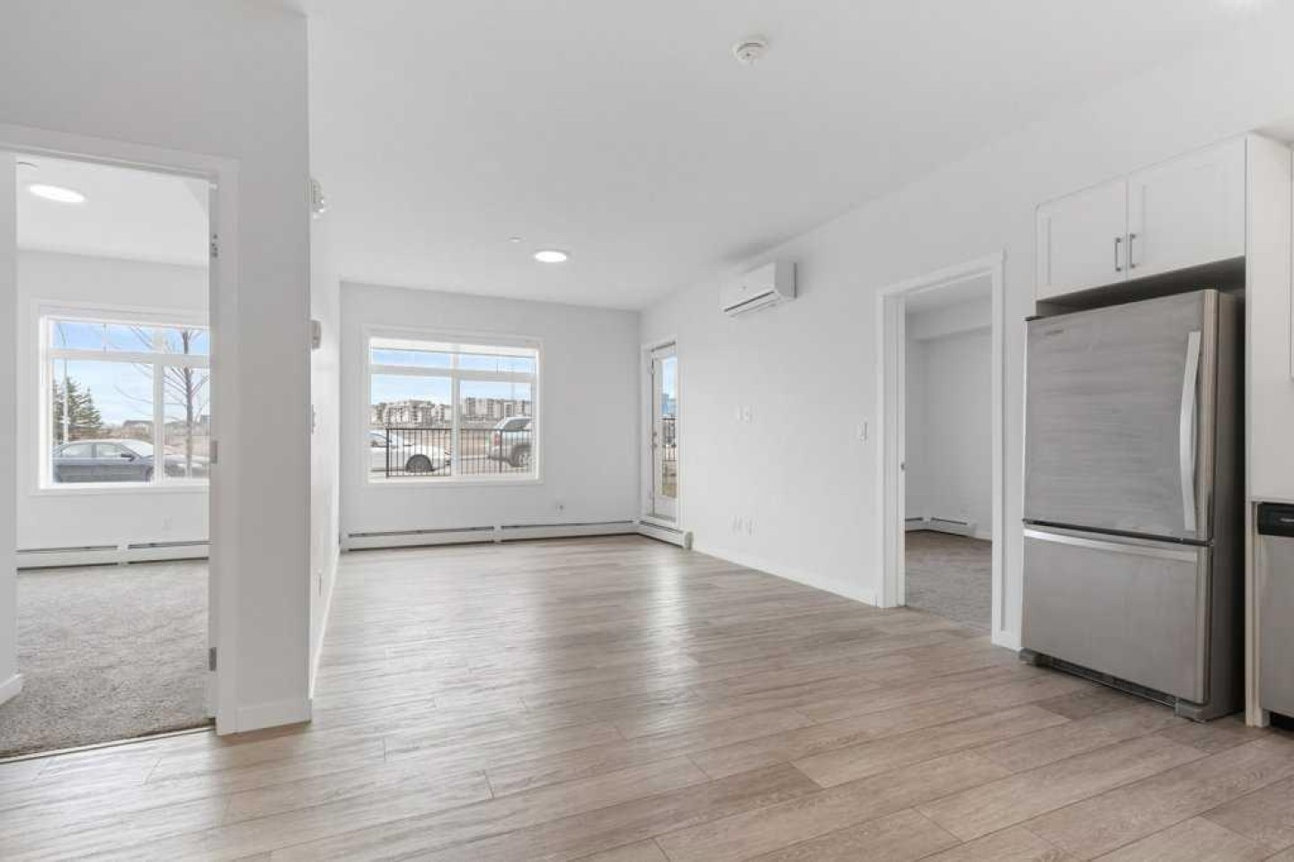 Gorgeous unit with AIR-CONDITIONING in popular Sage Hill. This open concept main floor 2 bedroom, 2 bathroom condo located in the well maintained "Mark 101" by Shane Home is walking distance to shopping and amenities! Features include 9 foot ceilings, Luxury Vinyl Plank flooring and quartz counter tops throughout , vinyl windows with sleek blinds, and in-suite laundry. In the well appointed kitchen , there are white cabinets, quartz countertops, modern white subway tile backsplash and stainless steel appliances. Opening on to the kitchen is the family room with large windows and a patio door leading to your private spacious main floor patio, with gas line roughed in. The primary bedroom has an en-suite bathroom and large walk-thru closet. The second bedroom is across the hall from the stylish 4 piece bathroom, and both are located on the other side of the family room from the primary allowing for maximum privacy. This unit also includes 1 titled underground parking stall, a storage locker, and there is secure bike storage available in the parkade. Condo fees are affordable and include heat/water/sewer. Located just steps away from public transit, shopping, restaurants, and many other amenities, this is a GREAT place to live OR a wonderful investment property.