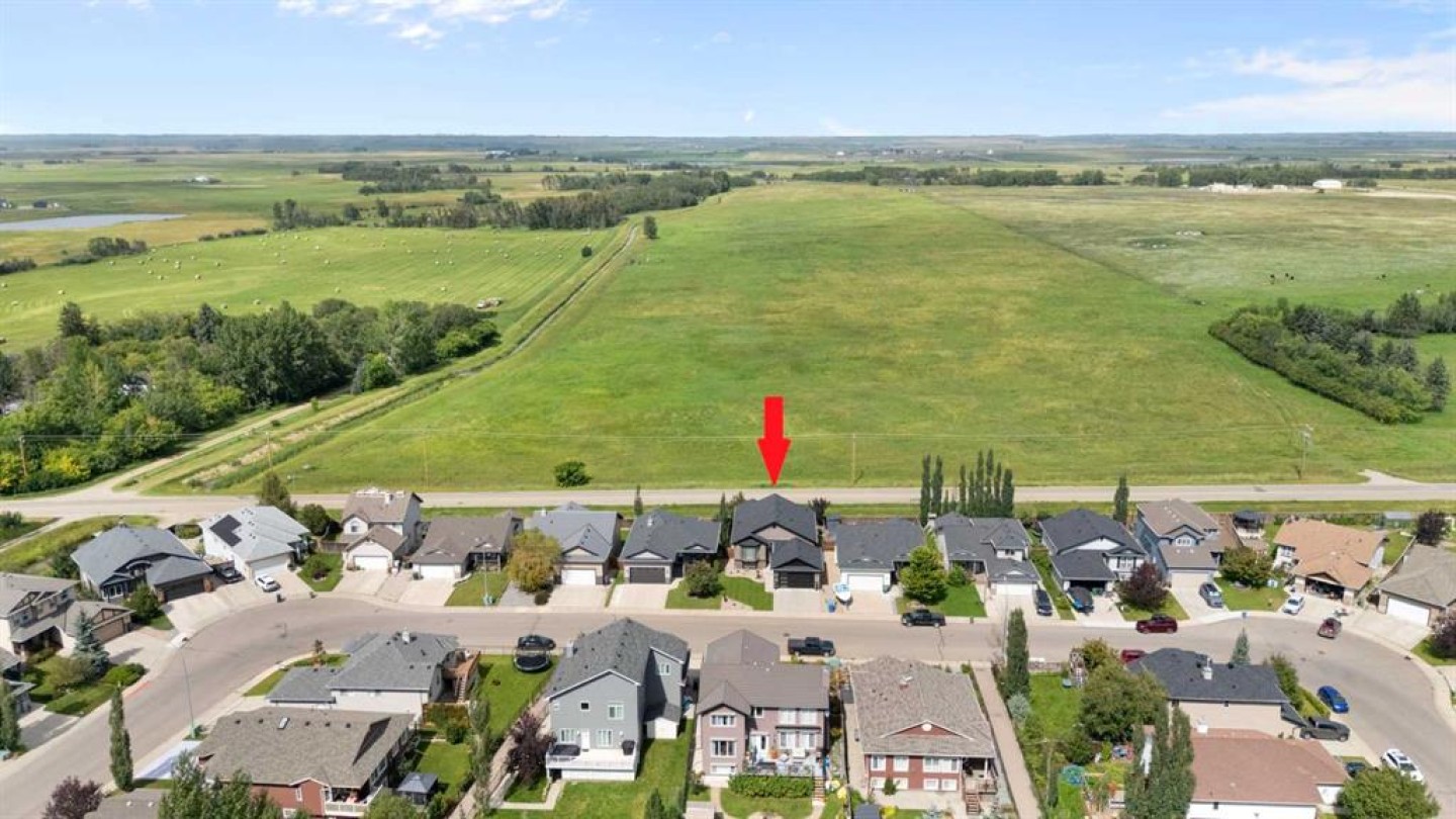 Exquisite 5-bedroom, three bathroom walkout! Welcome to a home where elegance meets comfort, and every detail has been thoughtfully curated. Perfectly positioned with no neighbors behind, this stunning bi-level offers a serene backdrop of wide open space and a long list of luxurious upgrades. From the moment you arrive, you’ll be charmed by the freshly landscaped yard, the new roof and eavestroughs, the new modern garage door and the oversized garage. Inside, natural light floods the open-concept main floor, where rich quartz counters sparkle against stainless steel appliances, and soft-close cabinetry with custom pullout drawers adds both refinement and function. Gather by the sleek electric fireplace or step onto the raised composite deck, adorned with glass railings and a gas line, to savor golden summer evenings and uninterrupted views. The primary retreat feels like a sanctuary, crowned with soaring 12 ft vaulted ceilings and a spa-inspired ensuite that invites you to unwind in luxury. Two additional bedrooms and a full bath complete the main level with both warmth and style. The second bedroom has a secret storage area behind the bookcase, designed for a play area, extra bed space or storage. The fully finished walkout basement is designed for both relaxation and celebration. Heated floors, a cozy electric fireplace, and a welcoming rec room with wet bar and pool table set the stage. Step into the luminous three-season sunroom with infrared heating and enjoy the beauty of every season while overlooking your private, fully landscaped backyard. Two spacious bedrooms and full bath complete the lower level. Every comfort has been considered—central A/C, central vac, and a brand-new 75-gallon hot water tank are among the many thoughtful upgrades. With its timeless finishings, gracious flow, and an idyllic setting, this Strathmore home is more than a residence—it’s a lifestyle.