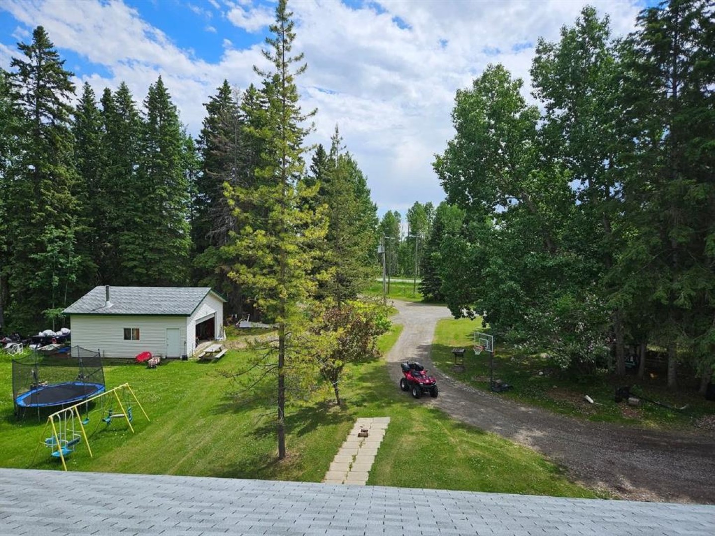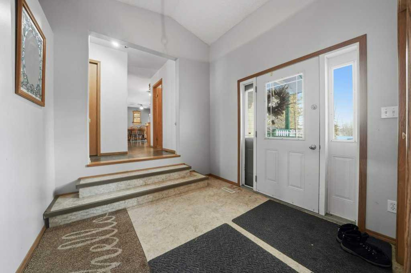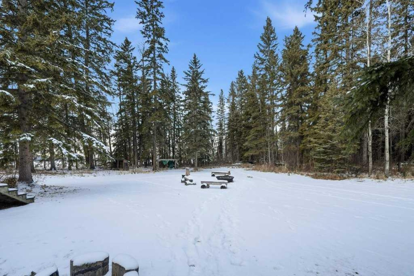 Welcome to your private retreat where nature, space, and comfort meet. This beautiful 8+ acre property is located just 8 minutes from Rocky Mountain House and offers the perfect blend of country living with town convenience. Enjoy sunrise views from the southeast-facing covered front veranda. The property features walking trails, quadding trails, and cross-country ski paths throughout, making it an ideal setting for outdoor enthusiasts and families. The land offers excellent potential for a home-based business, secondary business space, or recreational use, including space for children to explore and enjoy nature. The property includes 8 acres of treed and open land, a single attached garage, and a double detached garage. The covered front veranda and porch provide a peaceful outdoor living space with scenic views. Inside, the home offers a bright open-concept main floor. The spacious primary bedroom includes a full ensuite and dual closets. A 4-piece main bathroom with tub and shower combination serves the main floor. The basement is open and functional offering excellent space for a family room, office, gym, or additional living area. This property offers the freedom of acreage living with the comforts of home, all within 8 minutes of town.