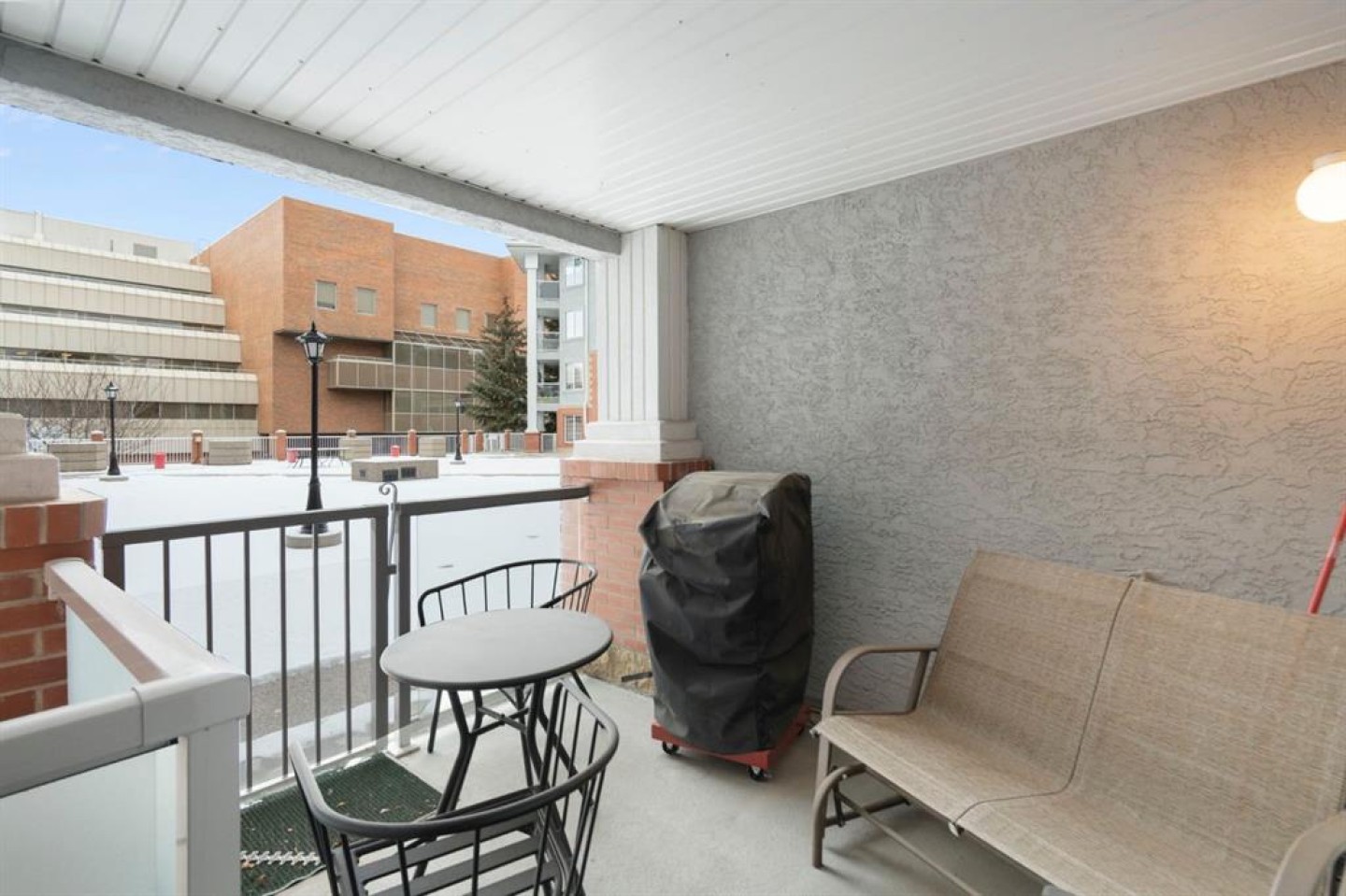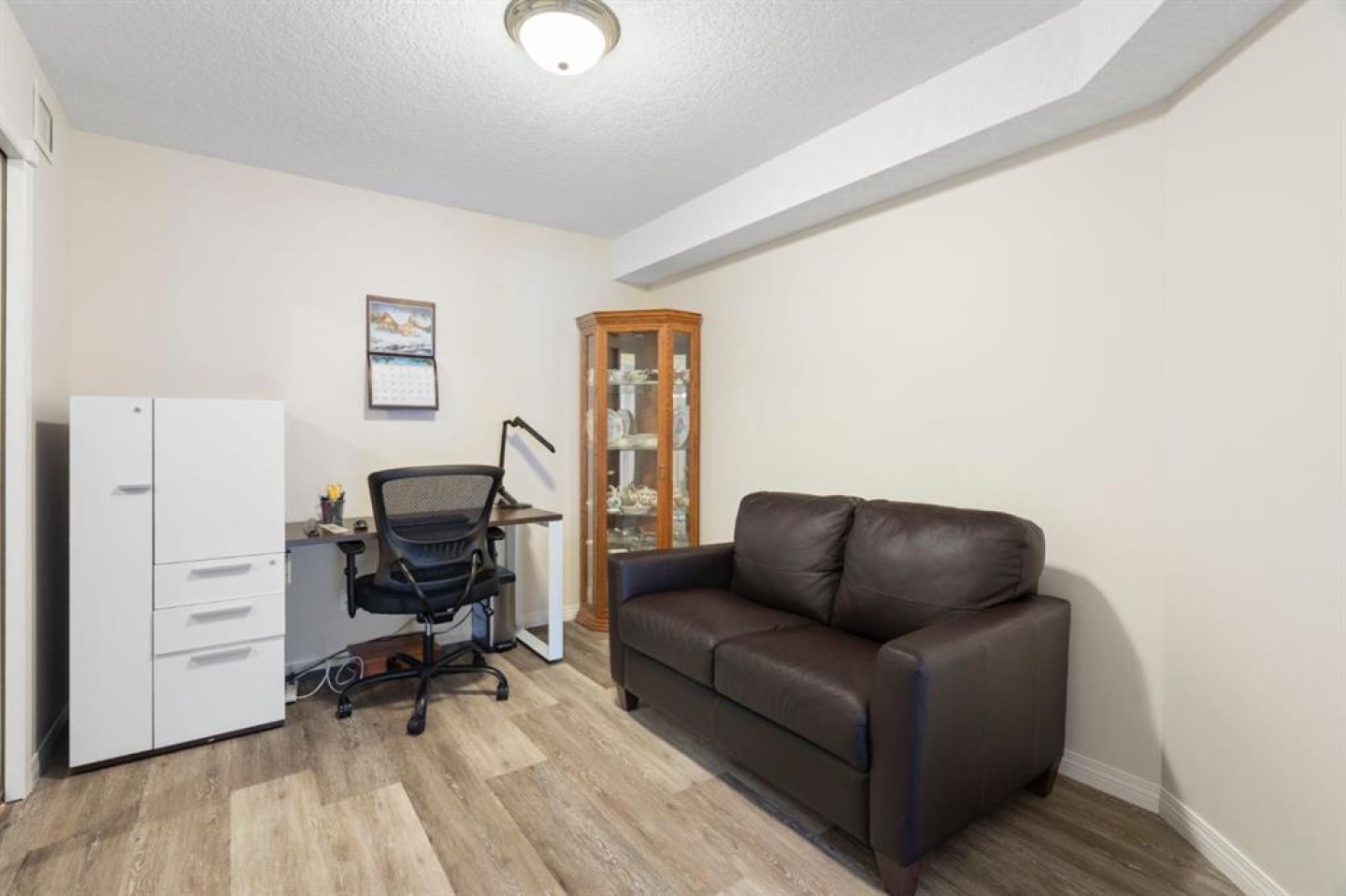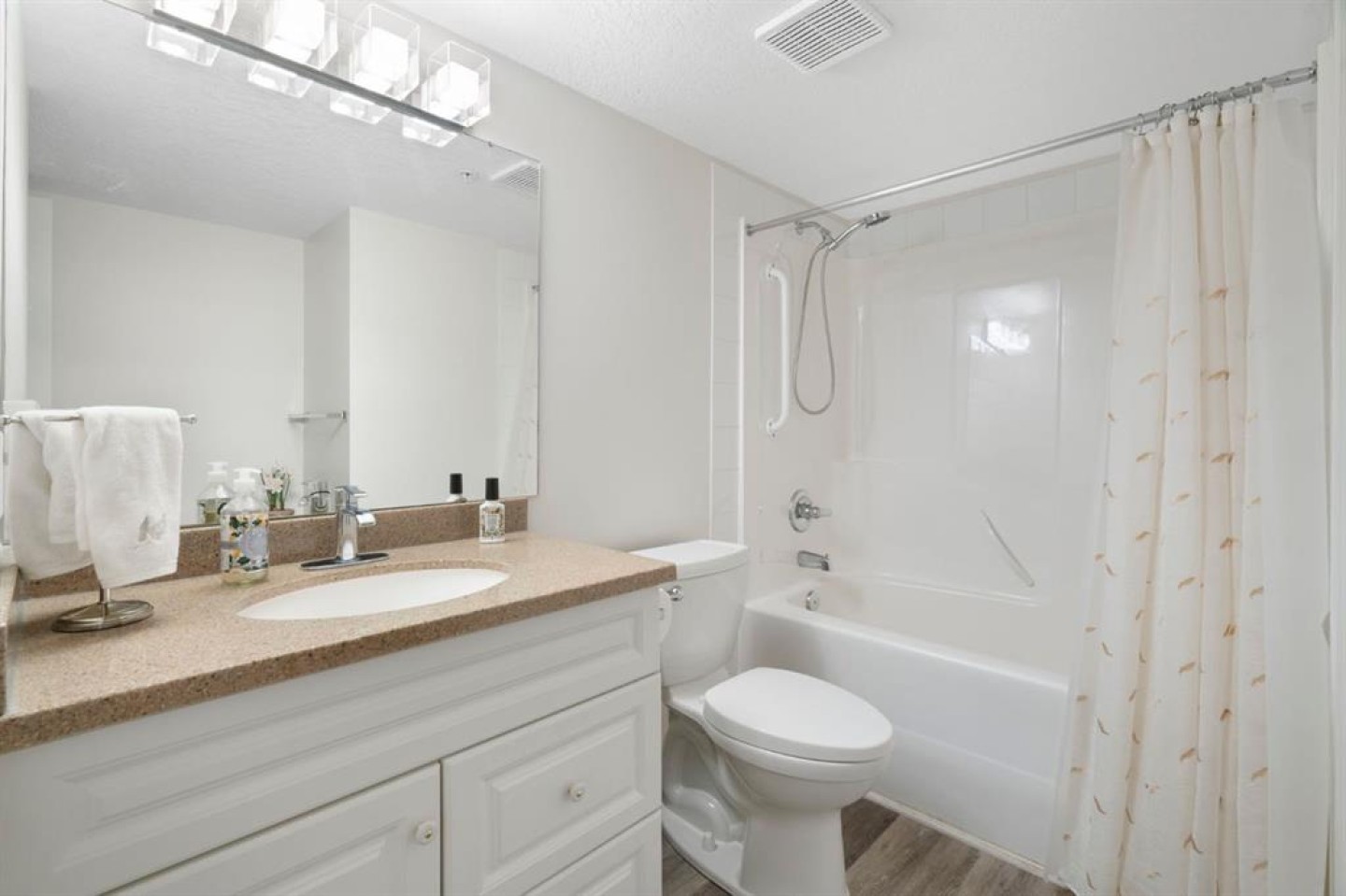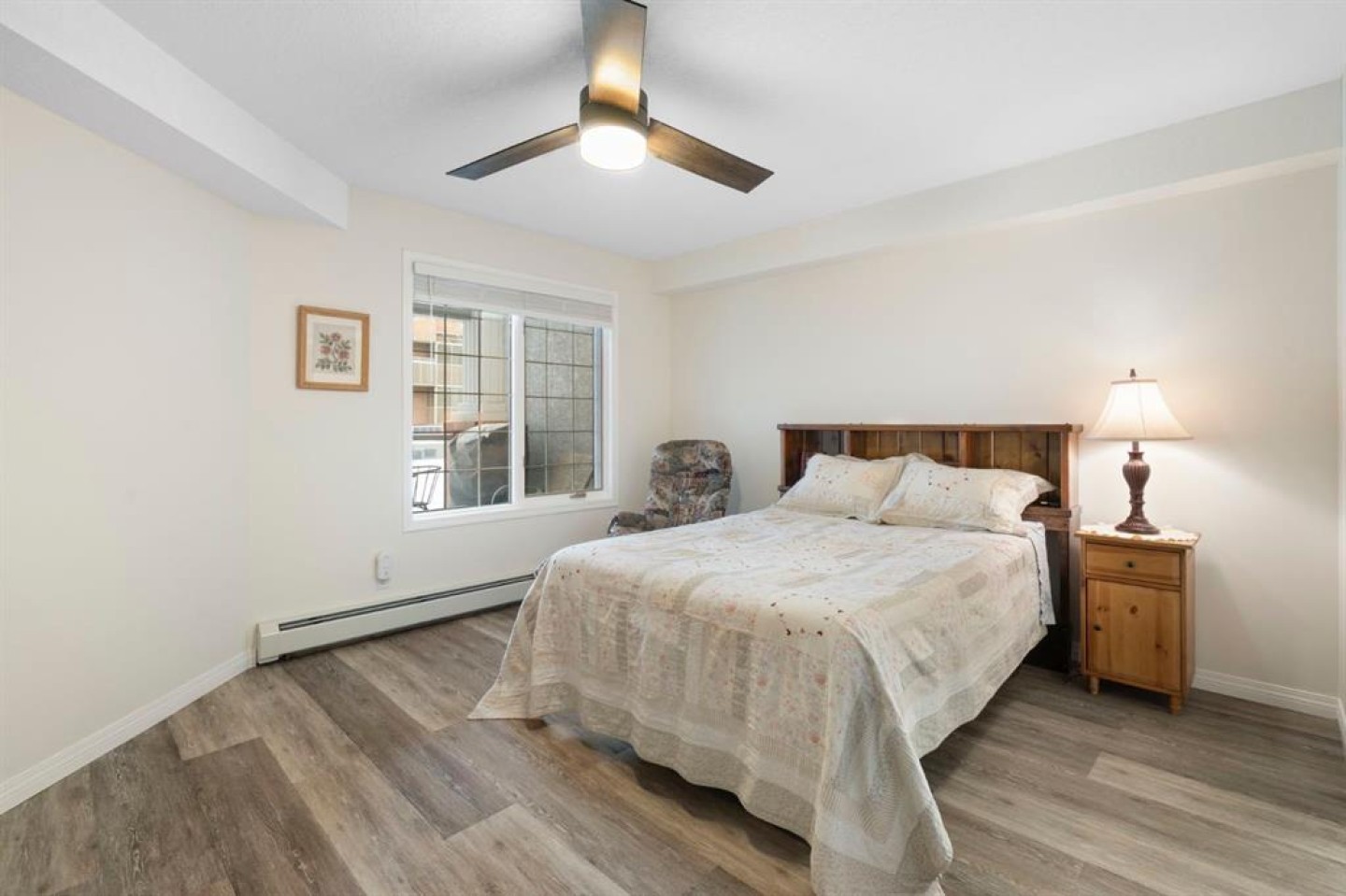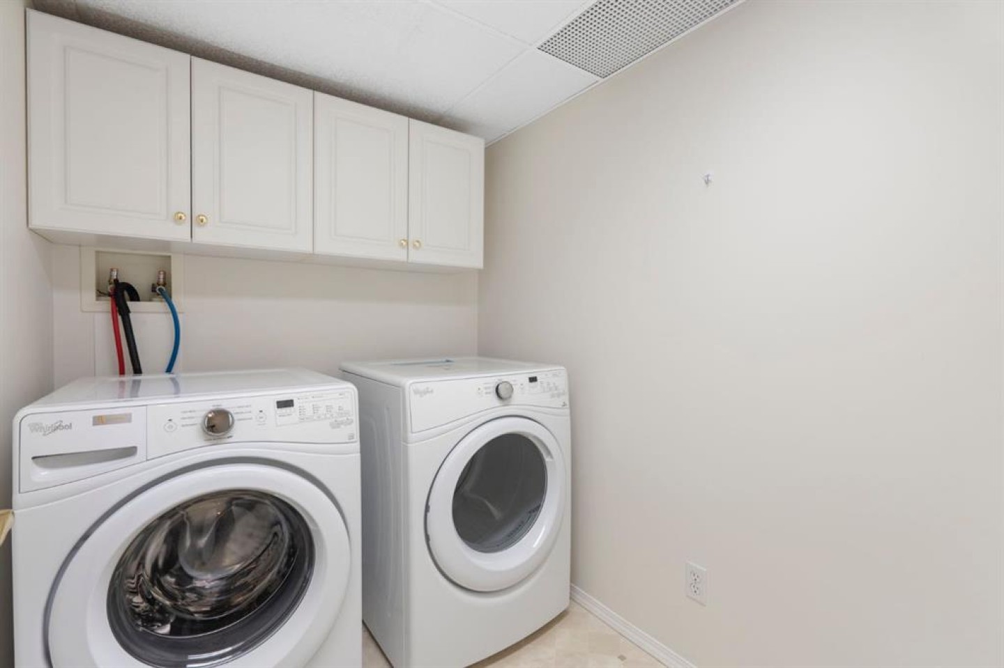 Located in one of the most desirable 55+ complexes the south has to offer, this amenities-loaded building provides a unique lifestyle that you'll be sure to enjoy... welcome to Sierra's of Heritage. This unit offers 2 bedrooms, 2 bathrooms, 2 parking stalls, an out-of-unit storage locker, a full-sized kitchen, direct access to the west-facing courtyard, and upgrades throughout! This complex conveniently INCLUDES ALL UTILITIES in the condo fee as well as the cost of all your luxurious amenities. At the entrance, you're welcomed with updated paint (2024) on the walls, ceiling, baseboards, and trim, vinyl flooring, a front closet, and a spacious open-floor concept. The large kitchen has been upgraded with newer appliances (2024) and newer quartz countertops with a matching quartz backsplash (2024). With plenty of cabinetry and a generous pantry, you'll be able to bring all your cooking appliances with you for this transition. Some of the cabinets have also been upgraded with roll-out drawers for easy access and convenience. Walking through your large pantry, you have an additional stand-up freezer and access to your laundry room with a side-by-side washer/dryer. Off the kitchen, you have a dining space that's open to your living room, featuring a gas fireplace and access to your ground-floor patio that has direct access to the west-facing courtyard! With this ground-floor unit, you no longer need to trade your backyard for a balcony; this unit provides the luxury of an outdoor living space that you can walk right onto and enjoy.Off the living space, you have the multi-purpose secondary bedroom or den/office, featuring french doors and a closet. Nearby, you also have an updated 4-piece bathroom and linen closet. The primary bedroom features a west-facing window, enough room for a king-sized bed, and a 4-piece ensuite with a proper walk-in closet. Both toilets have been upgraded to chair height. This unit eliminates the need to compromise. Offering a full-size kitchen, pantry, proper laundry room, courtyard access, and 1,160 sq/ft of living space, this is a great place to call home. The building amenities include a pool, hot tub, gym, library, craft room, theatre room, pool tables, poker table, dart board, car wash, bike storage, and an amazing woodshop.