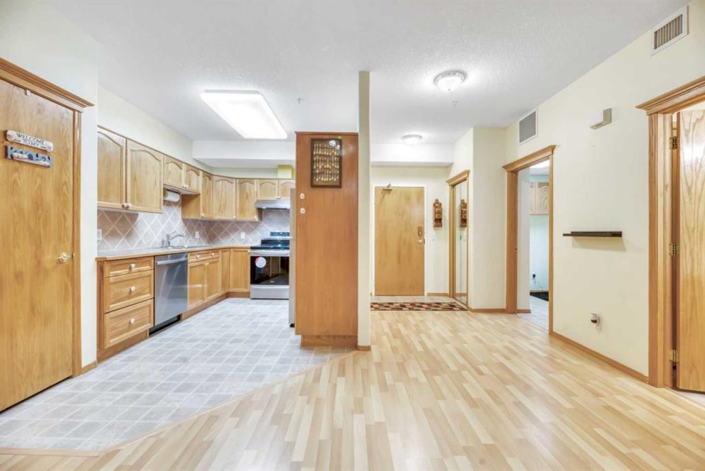 Inside, the layout is smart and functional, with updated appliances, faucets, and toilets, great natural light from the south exposure, and a private balcony to enjoy the sunshine. The open kitchen flows easily into the dining and living areas, making everyday living and entertaining feel effortless. The primary bedroom includes a walk-in closet and a 4-piece ensuite, while the second bedroom and full bathroom are ideal for guests or a flexible home office.