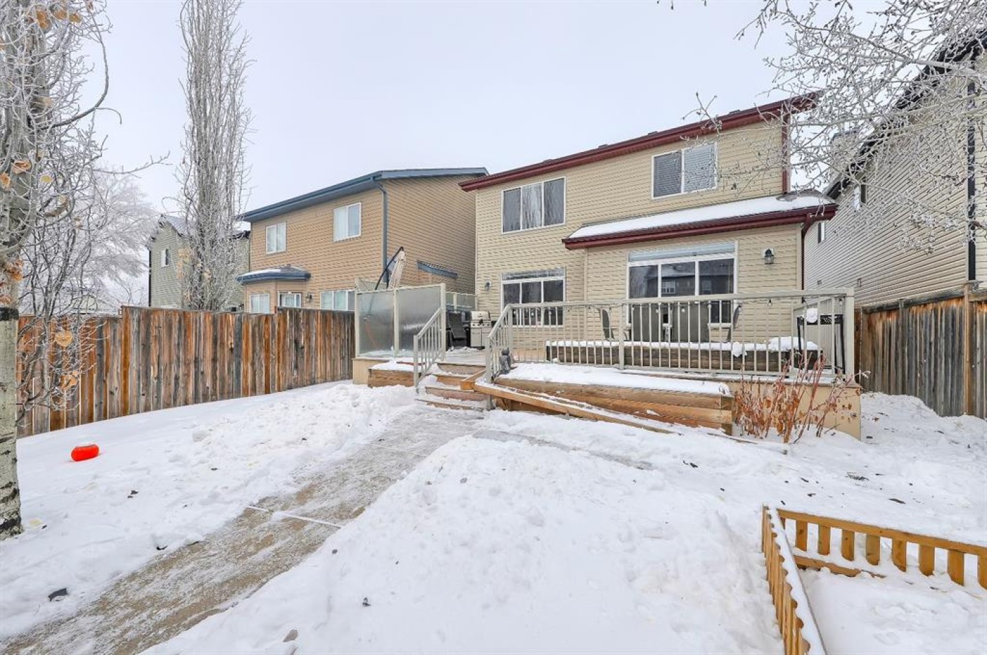 **OPEN HOUSE THIS SUNDAY, FEBRUARY 1st from 1:00pm - 3:00pm** Located in the heart of Copperfield, this like-new and upgraded home offers over 2,600 sq. ft. of total developed living space (over 1,900 sq. ft. above grade), a fully finished basement, 3 bedrooms, 3.5 bathrooms, a sunny south-facing backyard, and a heated, oversized, double-attached garage. Thoughtfully designed with high ceilings and quality finishes throughout, this move-in-ready property is ideal for growing families or professionals seeking both comfort and functionality. The main floor features 9-ft ceilings, solid oak hardwood flooring, a bright, open layout, and oversized windows that fill the space with natural light. The kitchen includes stainless steel appliances, a gas range, a water filtration tap, an oversized island, and abundant cabinetry and counter space. The dining and living areas connect seamlessly, highlighted by a gas fireplace with a tile surround and wood mantle, as well as direct access to the backyard. Across the yard is the back lane, great alley access for RV’s or Trailers! A powder room and laundry with built-ins complete the level. Upstairs, carpeted stairs lead to three bedrooms and a spacious bonus room. The primary suite offers custom closet organizers and a private 4-piece ensuite with a soaker tub and separate shower. The fully developed basement provides additional flexible living space with a large rec area and a full bathroom, perfect for guests, a home gym, or media room and already has a built-in surface for the perfect pool table! Enjoy the south-facing backyard with a large deck, privacy glass, expansive patio, and garden shed. Exterior updates include updated siding, soffits, fascia, and roof installed in 2021). Additional features include central AC, central vacuum, a water softener, fresh paint, heated + oversized garage with shelving. Copperfield is a fantastic community for buyers of all kinds, with a diverse and comprehensive range of nearby shops, services, and amenities, including grocery stores, coffee shops, professional services, restaurants, fitness options, and more. Schools, parks, playgrounds, and pathways are all within walking distance. This home also benefits from close proximity to Stoney Trail, Deerfoot, 52 Street, and the BRT, making transit to the city easy. Sorry, Time Machine in the garage not included.