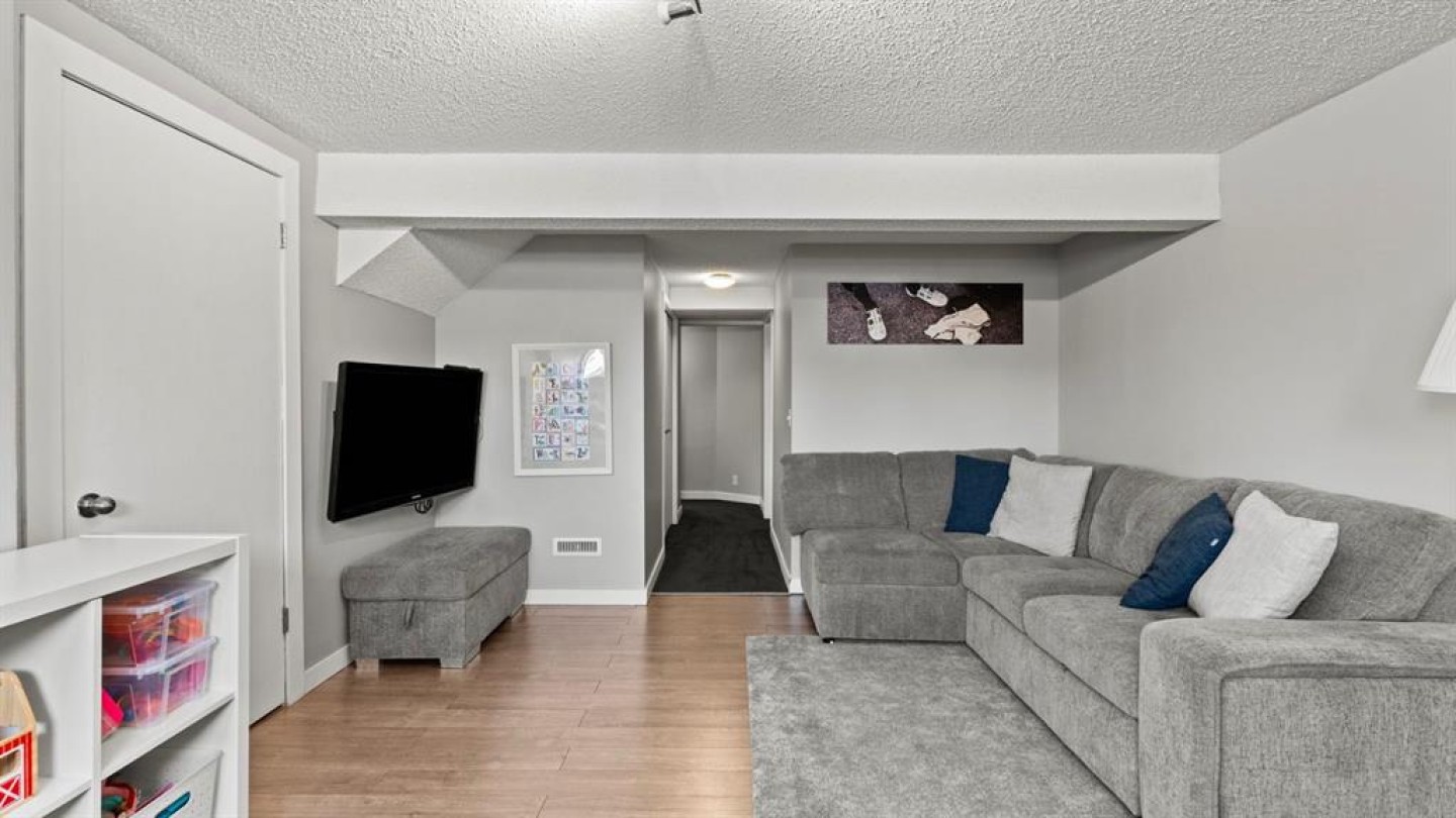 The fully developed basement adds valuable and versatile living space. A spacious recreation room offers the ideal setting for movie nights, a play area, or a second family room. An additional fourth bedroom is perfect for guests or older children, while a dedicated office or flex space supports work-from-home needs. A full bathroom and a separate laundry room complete the lower level, creating a functional and comfortable extension of the home.