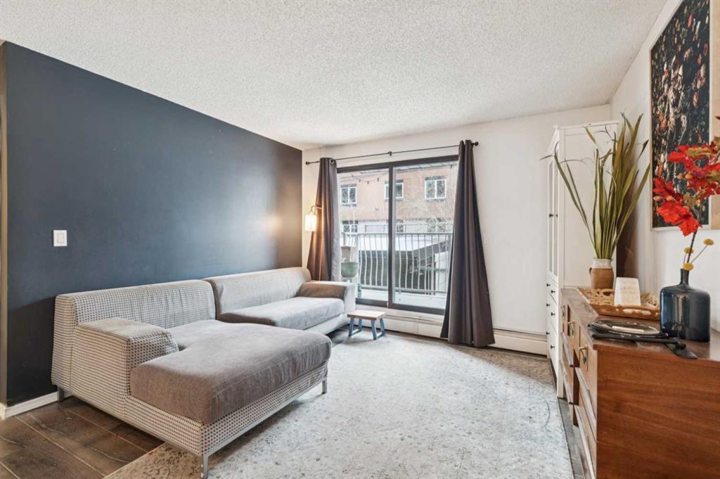 Located on the second floor of the building, this sweet, charming condo features a large, private, south-facing balcony in a beautiful setting on a quiet street in Lower Mount Royal. Located on the quiet rear side of the building, the open floor plan offers new LVP flooring throughout, a functional kitchen, generous in-suite storage (plus a separate secured locker on the main floor) and complete in-suite laundry. The spacious bedroom includes a double closet and easily accommodates a king-sized bed. Enjoy covered, secure parking, ample street parking for guests, and elevator access. An exceptional location just steps to the vibrant 17th Avenue district — restaurants, coffee shops, fitness, groceries, shopping, and an easy walk to downtown.