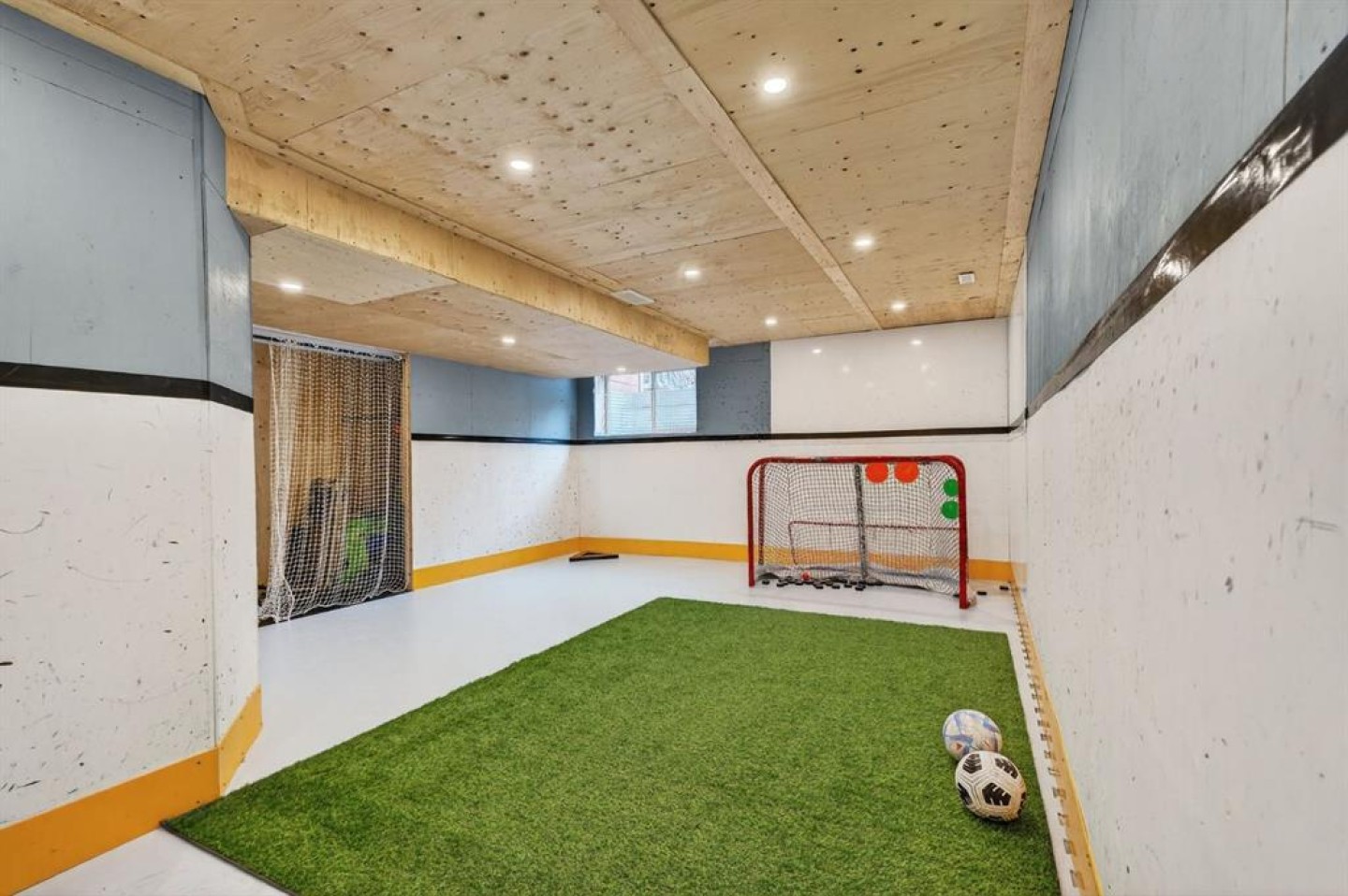 The partially finished basement includes a gym area, recreation space, finished stairs, pot lighting, and a bathroom rough-in. Additional highlights include an epoxy-coated garage floor, updated lighting, two backyard storage sheds, Custom concrete curbing accenting flower beds, Air Conditioning to keep you cool in the Summer months, walnut-stained deck with gas BBQ hookup, and permanent Lumenox exterior lighting.