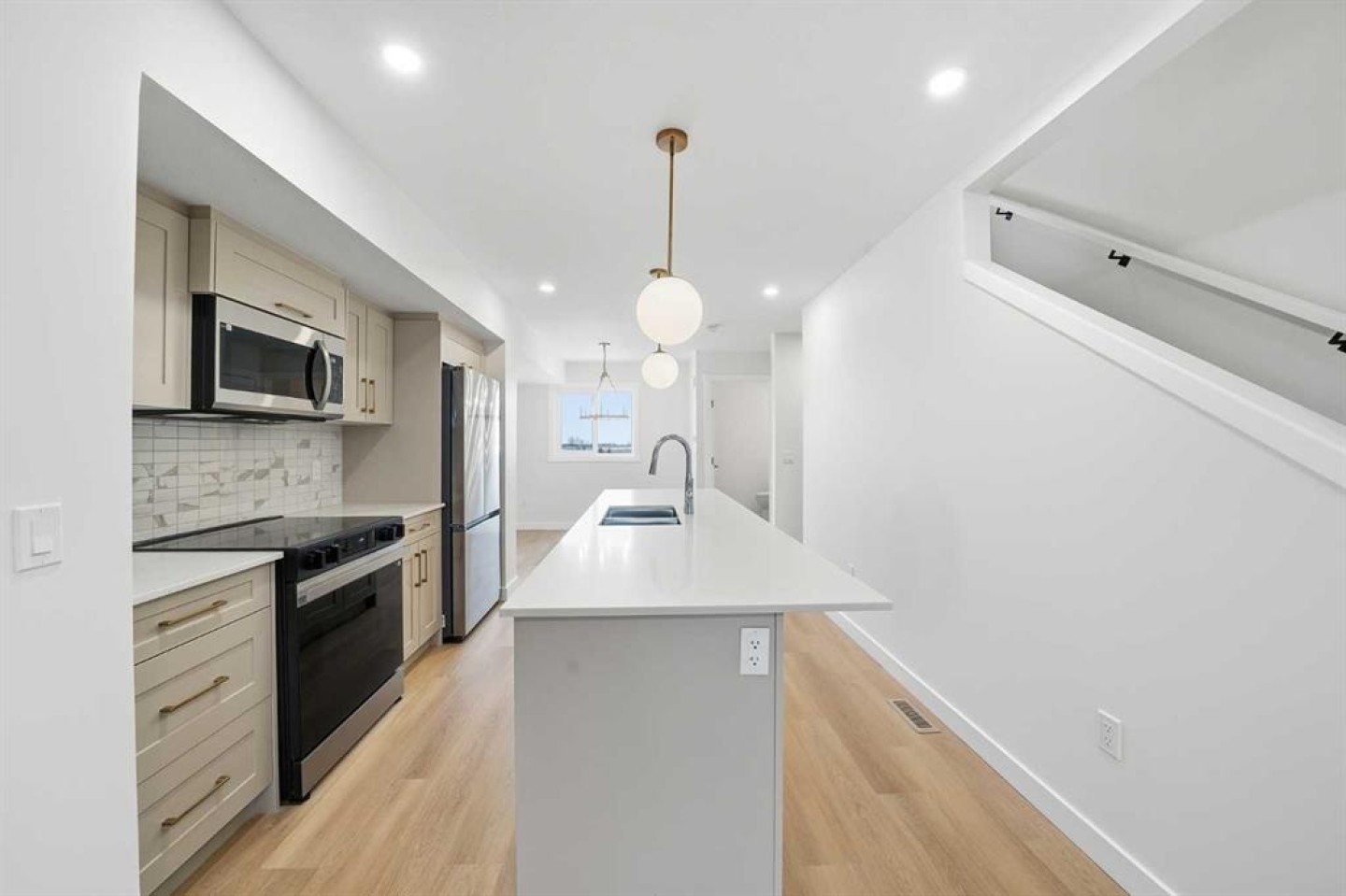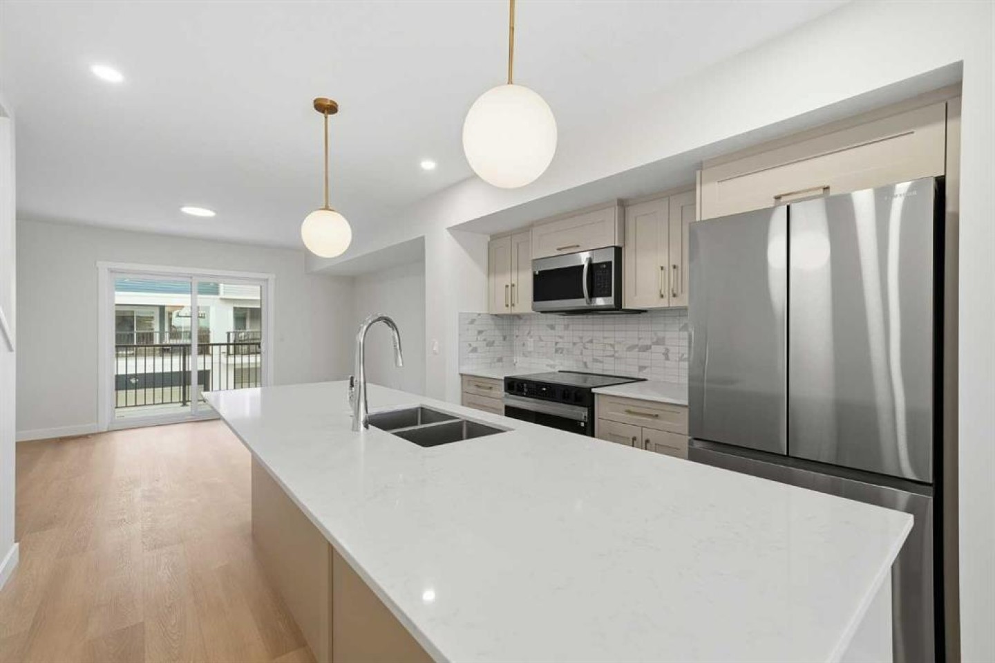 Welcome to this brand-new 3-storey townhome for sale in Belmont, Calgary, offering 1,250+ sq. ft. of modern living space with 2 bedrooms, 2.5 bathrooms, and a double tandem attached garage. This well-designed Belmont townhome is ideal for buyers seeking new construction in southwest Calgary. The open-concept main floor is bright and functional, featuring large windows, a spacious living area, and a modern kitchen with quartz countertops, full-height cabinetry, stainless steel appliances, and a dedicated dining space—perfect for everyday living and entertaining. A private balcony extends the living area and provides outdoor space ideal for morning coffee or evening relaxation. The upper level includes two generously sized bedrooms, each with its own ensuite bathroom, along with upper-floor laundry for added convenience. The entry level provides access to the tandem double attached garage, offering ample parking and additional storage. Located in Belmont, one of Calgary’s fastest-growing communities, this townhouse for sale in southwest Calgary is surrounded by parks, playgrounds, and scenic pond pathways. The property is steps from a future commercial plaza with planned amenities including Tim Hortons, daycare, and gas station, as well as public transit directly in front of the complex. Enjoy quick access to Stoney Trail, Macleod Trail, and the future Green Line LRT extension, making this an excellent location for commuters. Pet-friendly and rental-friendly, this Belmont Calgary townhome presents a strong opportunity for first-time home buyers, investors, or those looking for low maintenance living in a high-growth Calgary neighbourhood. Pet-friendly and rental-friendly, this Belmont Calgary townhome presents a strong opportunity for first-time home buyers, investors, or those looking for low-maintenance living in a high-growth Calgary neighbourhood.