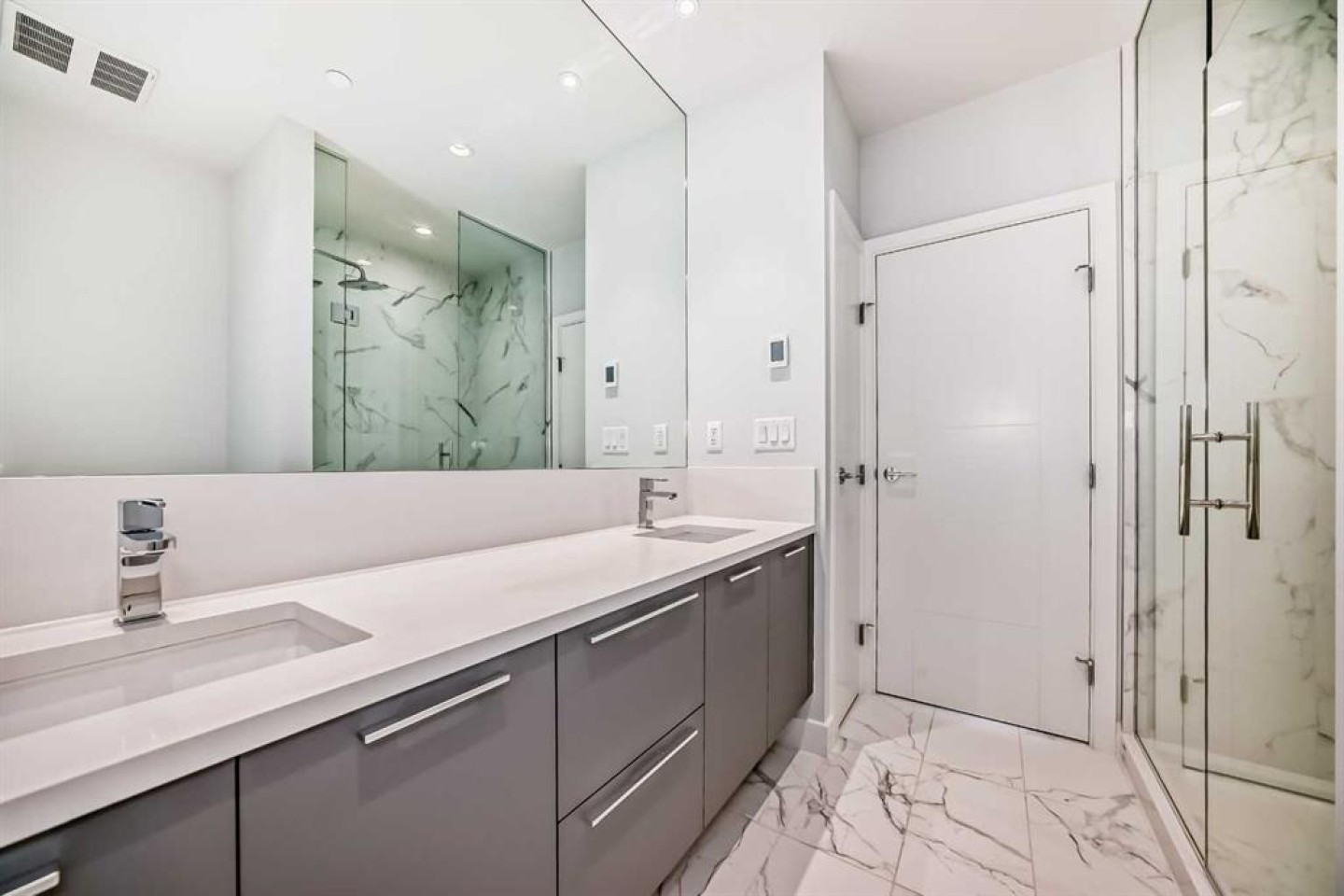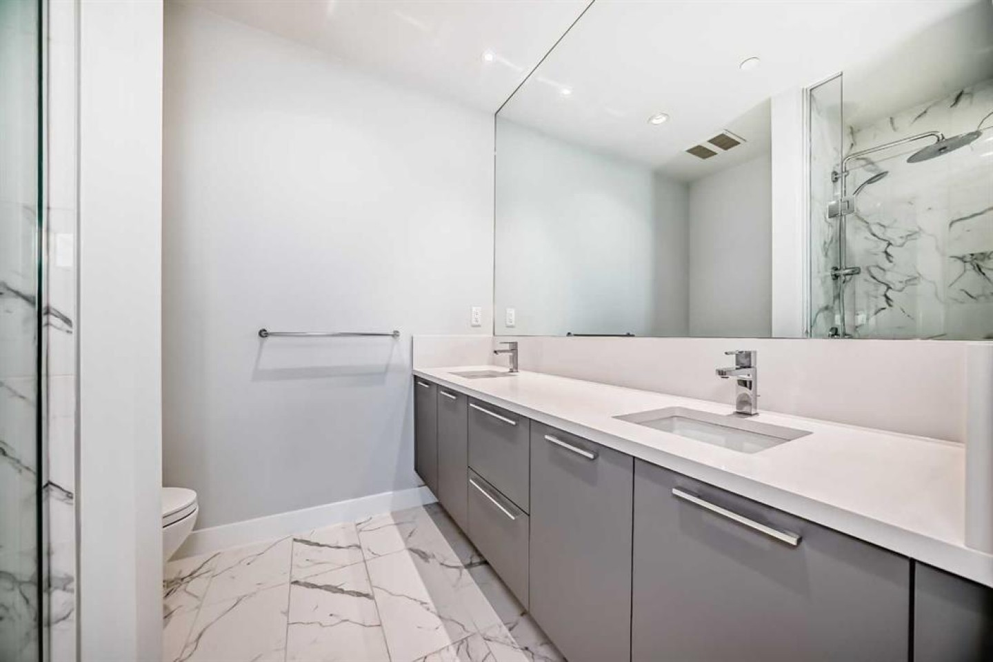 The primary bedroom boasts ample space and a generously sized closet. Mornings are a delight in the 4-piece ensuite, which features double sinks, vanity drawers, and a spacious step-in shower enclosed by a glass door. The second bedroom offers versatility, and serves as an ideal workspace or guest retreat. To top it all off, this unit includes an underground parking stall and a storage locker. EV parking options available.