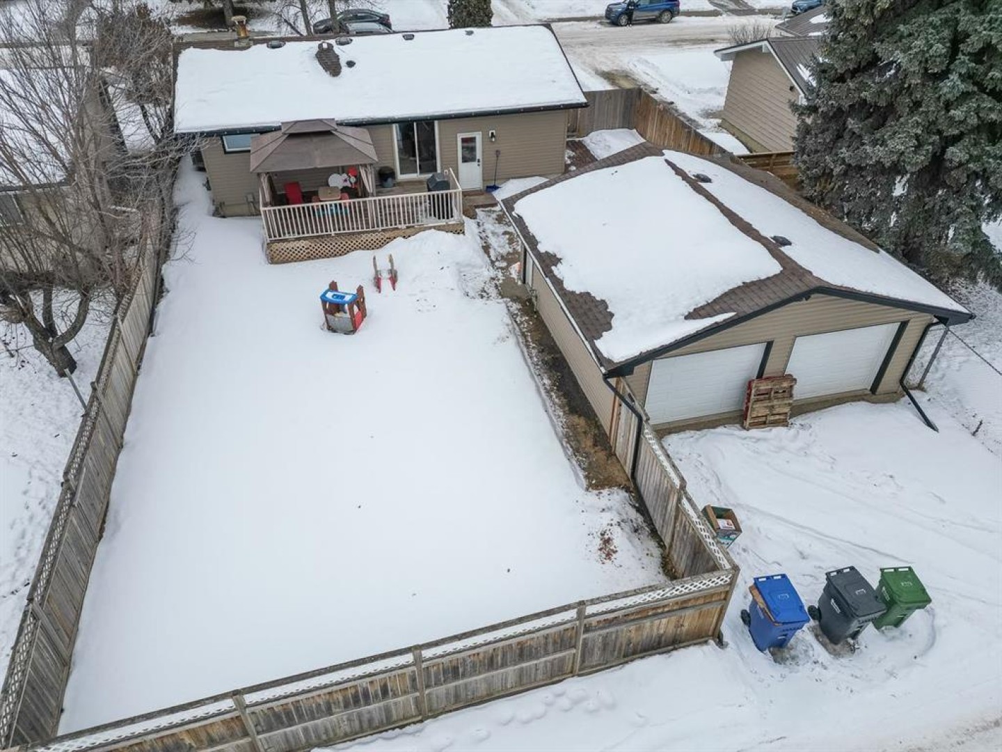 DESIRABLE MORRISROE! This bright and beautiful home has seen extensive renovations throughout! Featuring all vinyl windows and siding, large front parking pad plus detached heated double garage, fully fenced yard with rear deck and pergola. Inside you will find vinyl plank flooring, an open concept main area, kitchen with ample storage and patio doors to the rear deck. The dining room has built in cabinetry and the living room features updated pot lighting. 3 bedrooms on the main, including the primary bedroom with half bath ensuite. The basement features a spacious games / media room, large bedroom and full bathroom. A spacious laundry / storage room rounds out this space. Other features including updated electrical panel, high efficient furnace and hot water tank, and central a/c. Located in a fantastic walkable neighborhood near all amenities, including elementary and middle schools, the Kinsmen arenas and all your shopping and grocery needs!