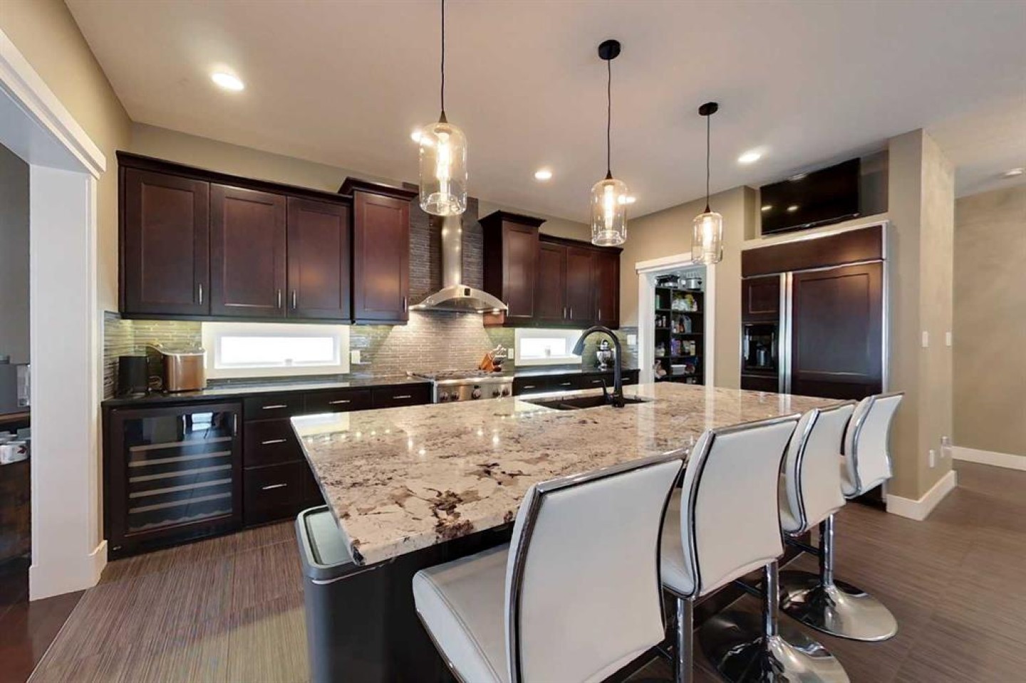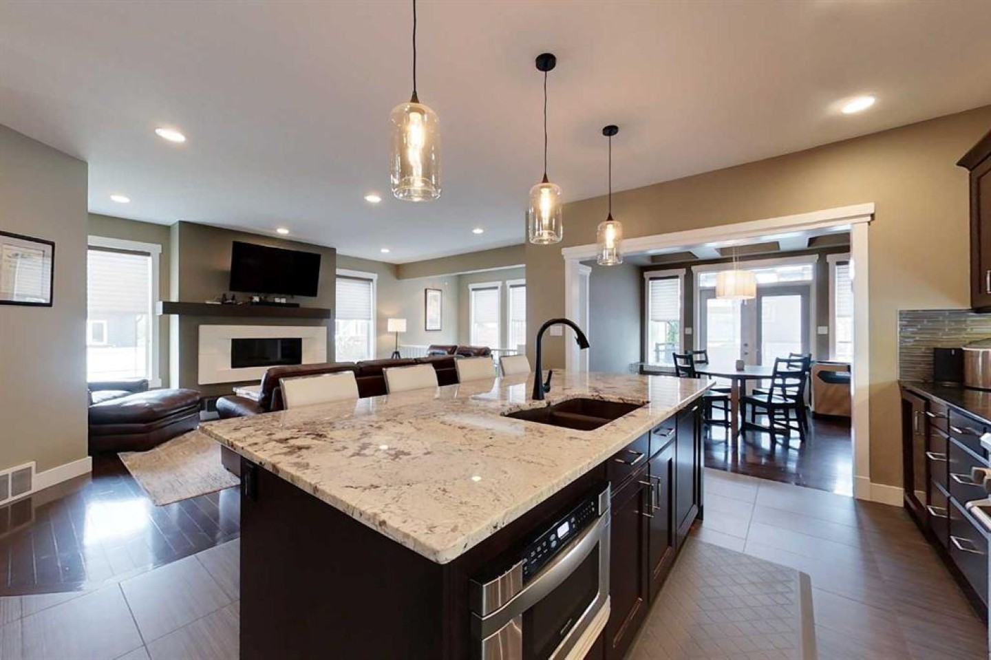 Welcome to your dream oasis! This exquisite 5-bedroom, 3.5-bathroom residence perfectly blends modern elegance and comfort, nestled in one of the most desirable neighbourhoods. As you step inside, you're greeted by an expansive open-concept layout that bathes in an abundance of natural light, creating a warm and inviting atmosphere throughout. The heart of this home is undoubtedly the large kitchen, featuring sleek Italian granite countertops and a generously sized island that beckons for gatherings with family and friends. The walk-through pantry, a convenient addition to your culinary adventures, ensures that everything you need is within easy reach, while high-end stainless steel appliances promise both style and functionality.