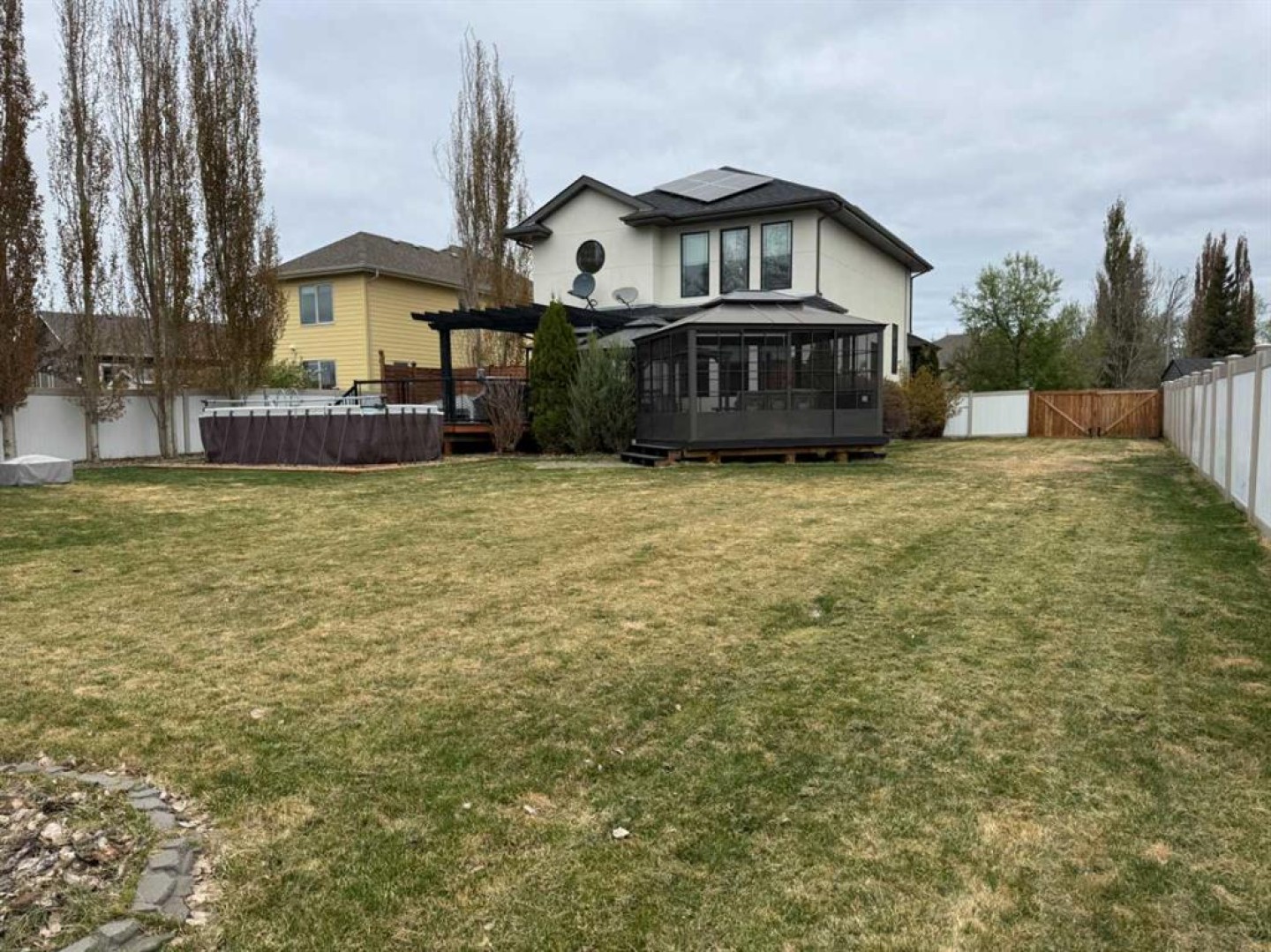 Retreat to the luxurious master suite, where you'll find a spacious haven complete with a 5-piece ensuite designed for relaxation with a steam shower and a deep air-bubble tub. Imagine unwinding in your own spa-like sanctuary after a long day! Each additional bedroom offers ample space for family or guests, ensuring everyone enjoys their own private retreat. The living room boasts a cozy gas fireplace that serves as the perfect focal point for those chilly evenings. Ascend to the top floor where you'll discover a versatile family room—ideal for movie nights or as a play area for children, sparking your imagination for the endless possibilities. With the convenience of laundry facilities located on both the second floor and the basement, everyday chores become effortless. Step outside into your backyard paradise! A heated exposed aggregate driveway leads you to an attached heated triple-car garage—perfect for keeping your vehicles warm during winter. The outdoor space features a pool surrounded by lush landscaping, alongside a gazebo on the deck that sets the stage for summer barbecues with its gas BBQ hookup. The in-ground sprinkler system keeps your lawn lush all summer long. And don't forget about the hot tub—your personal retreat under the stars! This home is not just about luxury; it's also about lifestyle. With a 16kw solar system, two furnaces, two air conditioners and in-floor heat in the basement, this home truly has it all! Located in a highly sought-after neighbourhood, so don't miss out on this rare opportunity to own such an exceptional property!