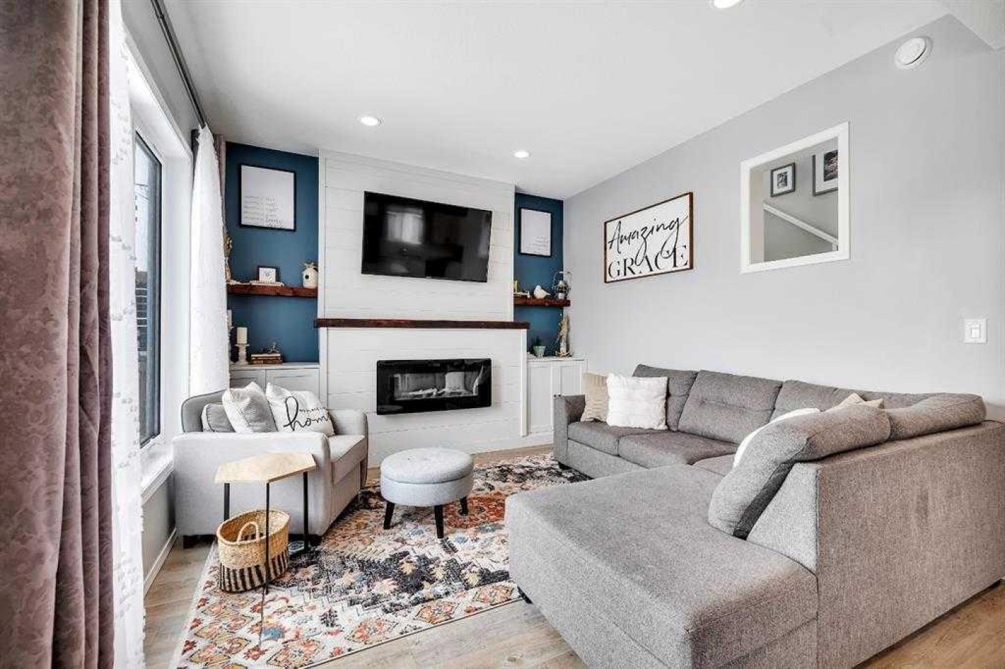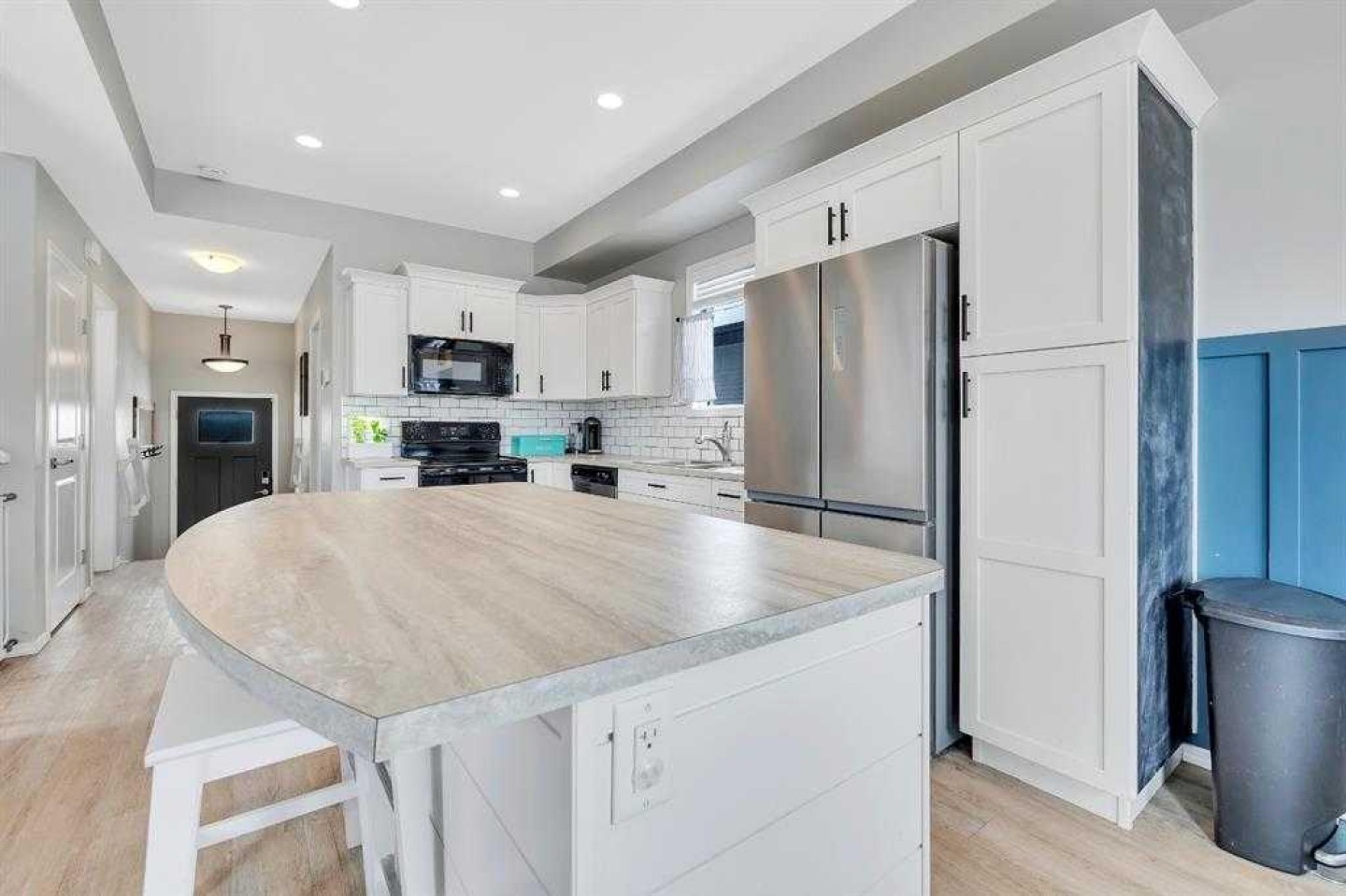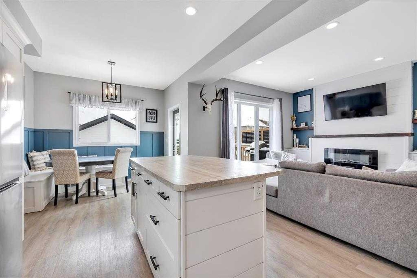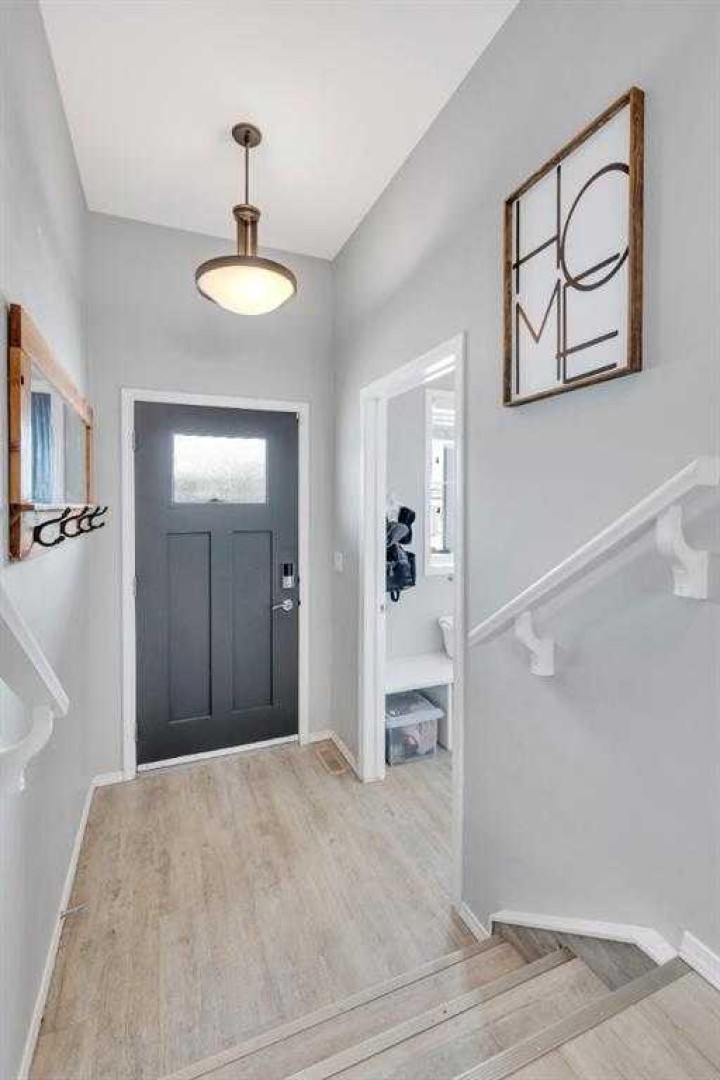 Spacious two-storey home with TRIPLE CAR GARAGE, ideally located close to parks, schools, and shopping. This well-appointed home features a welcoming covered front porch, large mudroom with laundry, and a versatile office or flex room near the entry. The open-concept main floor offers a bright living area and a chef-inspired kitchen with ample cabinetry, center island, and dining nook with access to the deck—perfect for summer BBQs—plus a convenient 2-piece bath. Upstairs includes a primary bedroom with walk-in closet and 4-piece ensuite, two additional good-sized bedrooms, and a full bath. The lower level provides a side entrance with access to both levels. Outside, enjoy a decent-sized yard and a triple-car garage with a divided space ideal for a man cave, workshop, or hobby room