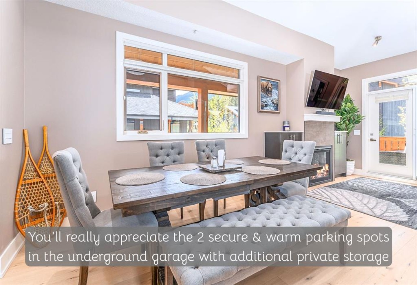 Practicality meets convenience with two titled underground parking stalls and a large storage cage—plenty of room for your bikes, skis, and all your mountain gear. Say goodbye to icy windshields and chilly mornings!
