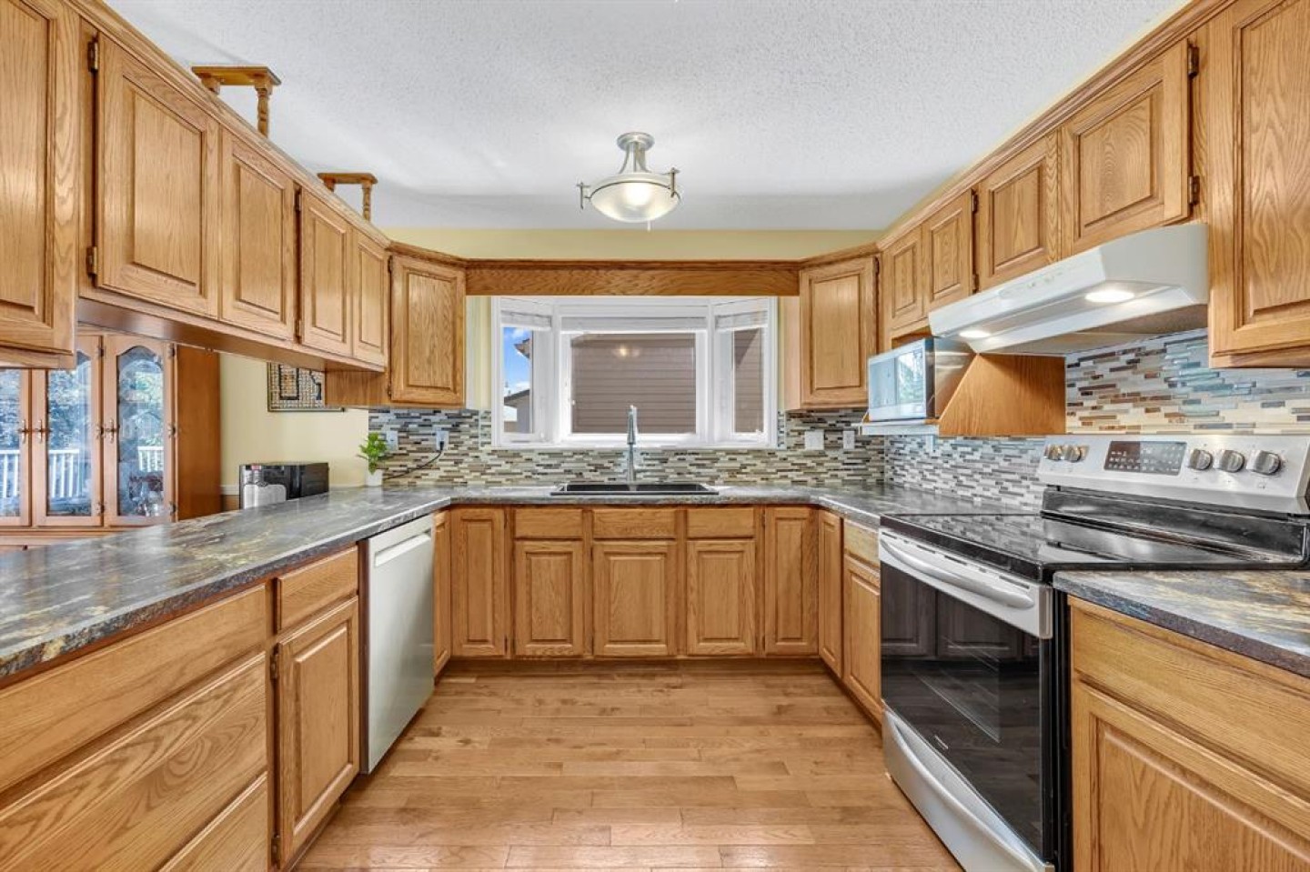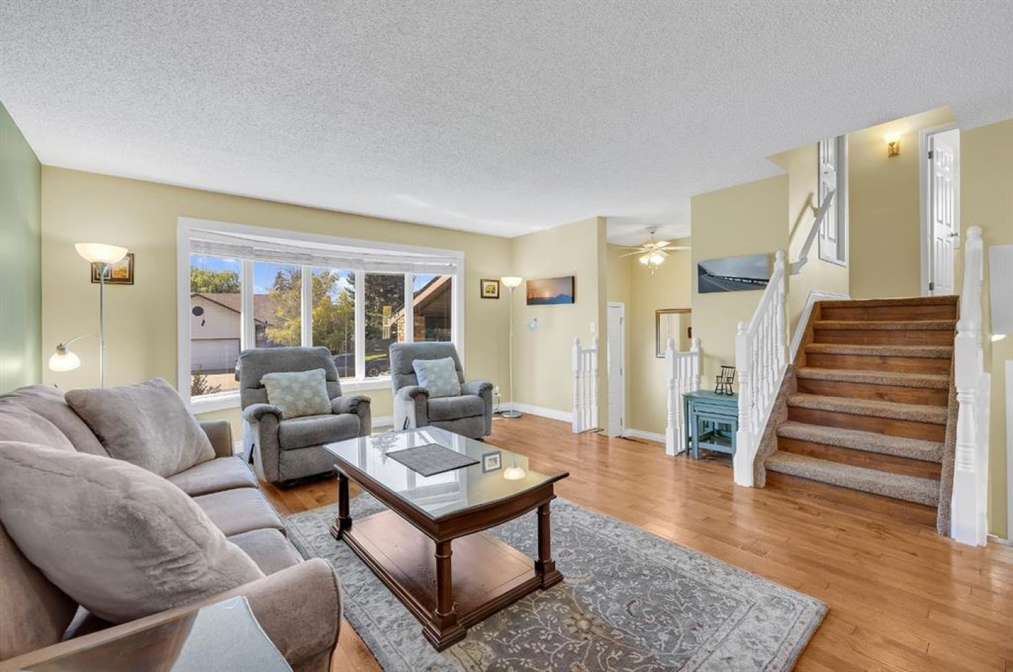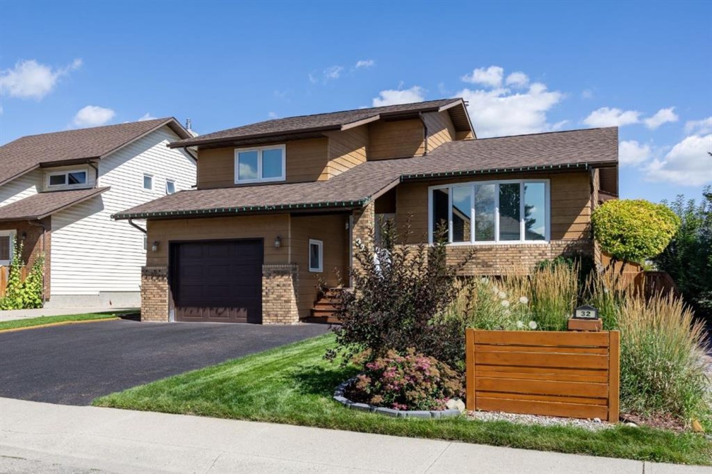 OPEN HOUSE SATURDAY FEBRUARY 7 12:00-4:00. Pride of ownership resonates throughout this ORIGINAL OWNER occupied home in the COVETED community of RIDGEGATE. BACKING onto NOSE CREEK PARK, this absolutely stunning 4 level split will immediately capture your attention with its breathtaking front curb appeal. An immaculately manicured front lawn with shrubs & foliage. Canexel composite siding is bold, beautiful & ready for Alberta's changing weather conditions. The accent brick offers a sophisticated focal point to the home while the RUBBER drive pad is not only beautiful but offers a child friendly buffer for those day to day spills. This home offers over 2600 sq ft of tl developed living space with a total of 4 bedrooms above grade. Sunshine floods through the large front bay & rear windows. A substantial sized living room with beautiful hardwood floors ushering you to a LARGE bright kitchen. Ample counter space, cabinets & pantry. Updated appliances, countertops, sink, garburator & fixtures. The kitchen is open to a spacious dining area. The rear door off the dining room leads to your large low maintenance deck & fully fenced back yard. Stunning mature trees, shrubs & flowers offer a balance of beauty & privacy in this meticulously maintained OASIS. Exceptional outside storage under the deck, corner shed & garden enclosure. Back inside the house you will note a large master with 3 pc ensuite & SKYLIGHT. An exceptional sized 2nd bed, comfortable sized 3rd bed & updated 4 pc main bath with jetted tub & SKYLIGHT. The 3rd level WALK OUT is ideal for someone with a DAYHOME/HOME BASED BUSINESS & is host to the 4th bed, a large family room with stone faced gas FP, 2 pc bath & washer & dryer. The basement offers a generous sized family room, Study/Den/Wine Cellar, 3 pc bath, & Storage room. The 2 lower level rooms could be converted to beds to suit the needs of a large family while the 3rd LEVEL WALKOUT could make this home a candidate to SUITE subject to city approval & permitting. Additional storage adjacent the utility room. The single oversized attached garage is fully insulated, drywalled & includes a plug in heater. Additional features of this home include all newer windows & doors on the top 3 levels. Triple pain windows on the main rear of the home & built in blinds on the back door. Roof , Canexel siding & furnace app 2014. Hot water tank app 2020. Upgraded attic insulation. Garburator app 2020.. Water softener. Vacu Flo & attachments. Phantom screen at front door. A/C app 2022. Underground sprinklers in the backyard. This GEM is surrounded by the tranquil beauty of NOSE CREEK PARK which is host to various community events including the Christmas Light Celebration. Nose Creek Park is home to Airdrie's largest playground, fishing ponds, pickle ball courts & various trails. Walking distance to the new public library, grocery store, gym & other amenities. Nearby schools & quick access to the highway.