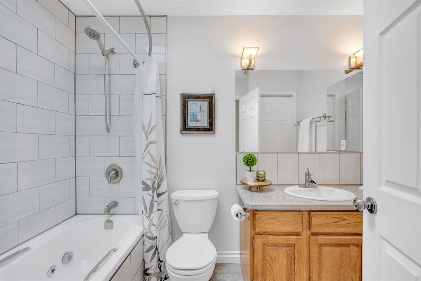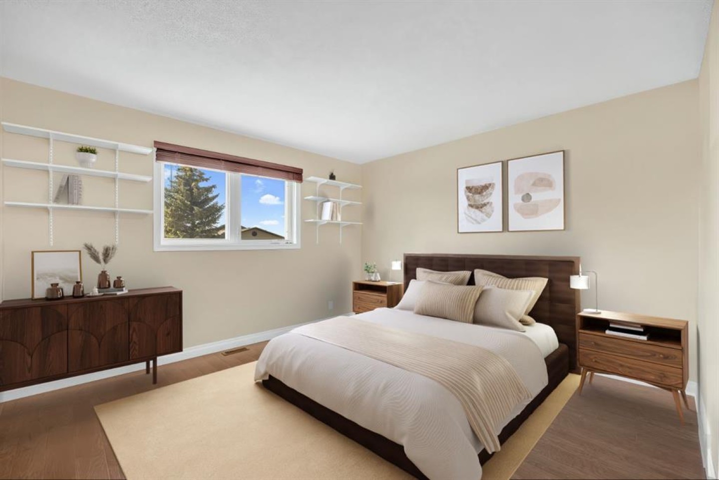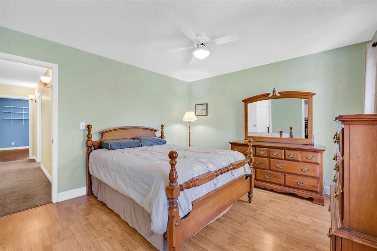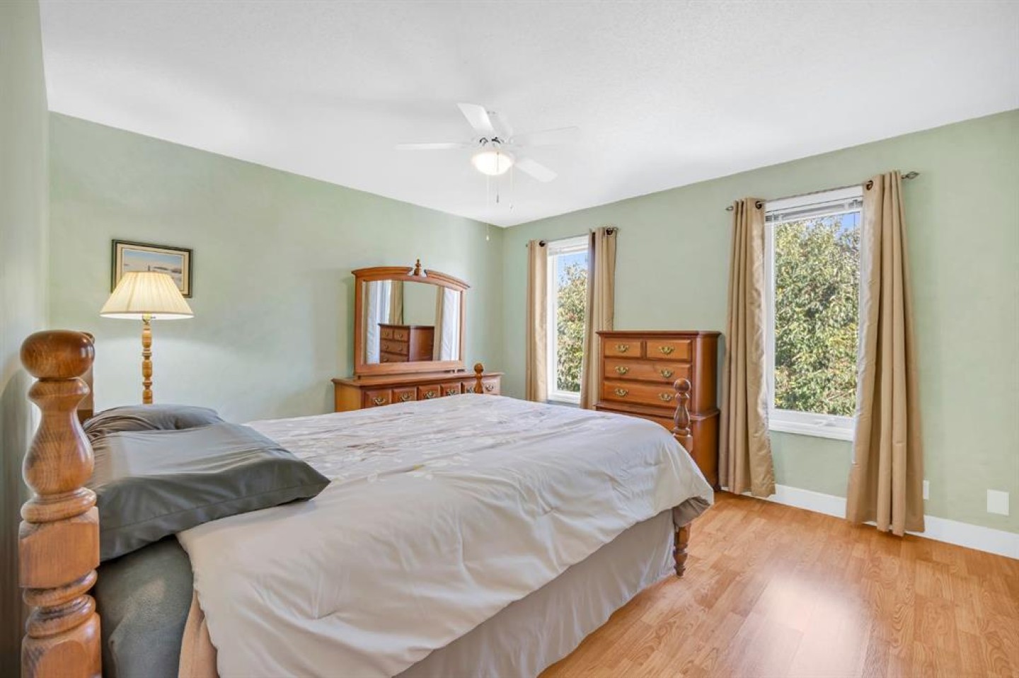 OPEN HOUSE SATURDAY FEBRUARY 7 12:00-4:00. Pride of ownership resonates throughout this ORIGINAL OWNER occupied home in the COVETED community of RIDGEGATE. BACKING onto NOSE CREEK PARK, this absolutely stunning 4 level split will immediately capture your attention with its breathtaking front curb appeal. An immaculately manicured front lawn with shrubs & foliage. Canexel composite siding is bold, beautiful & ready for Alberta's changing weather conditions. The accent brick offers a sophisticated focal point to the home while the RUBBER drive pad is not only beautiful but offers a child friendly buffer for those day to day spills. This home offers over 2600 sq ft of tl developed living space with a total of 4 bedrooms above grade. Sunshine floods through the large front bay & rear windows. A substantial sized living room with beautiful hardwood floors ushering you to a LARGE bright kitchen. Ample counter space, cabinets & pantry. Updated appliances, countertops, sink, garburator & fixtures. The kitchen is open to a spacious dining area. The rear door off the dining room leads to your large low maintenance deck & fully fenced back yard. Stunning mature trees, shrubs & flowers offer a balance of beauty & privacy in this meticulously maintained OASIS. Exceptional outside storage under the deck, corner shed & garden enclosure. Back inside the house you will note a large master with 3 pc ensuite & SKYLIGHT. An exceptional sized 2nd bed, comfortable sized 3rd bed & updated 4 pc main bath with jetted tub & SKYLIGHT. The 3rd level WALK OUT is ideal for someone with a DAYHOME/HOME BASED BUSINESS & is host to the 4th bed, a large family room with stone faced gas FP, 2 pc bath & washer & dryer. The basement offers a generous sized family room, Study/Den/Wine Cellar, 3 pc bath, & Storage room. The 2 lower level rooms could be converted to beds to suit the needs of a large family while the 3rd LEVEL WALKOUT could make this home a candidate to SUITE subject to city approval & permitting. Additional storage adjacent the utility room. The single oversized attached garage is fully insulated, drywalled & includes a plug in heater. Additional features of this home include all newer windows & doors on the top 3 levels. Triple pain windows on the main rear of the home & built in blinds on the back door. Roof , Canexel siding & furnace app 2014. Hot water tank app 2020. Upgraded attic insulation. Garburator app 2020.. Water softener. Vacu Flo & attachments. Phantom screen at front door. A/C app 2022. Underground sprinklers in the backyard. This GEM is surrounded by the tranquil beauty of NOSE CREEK PARK which is host to various community events including the Christmas Light Celebration. Nose Creek Park is home to Airdrie's largest playground, fishing ponds, pickle ball courts & various trails. Walking distance to the new public library, grocery store, gym & other amenities. Nearby schools & quick access to the highway.