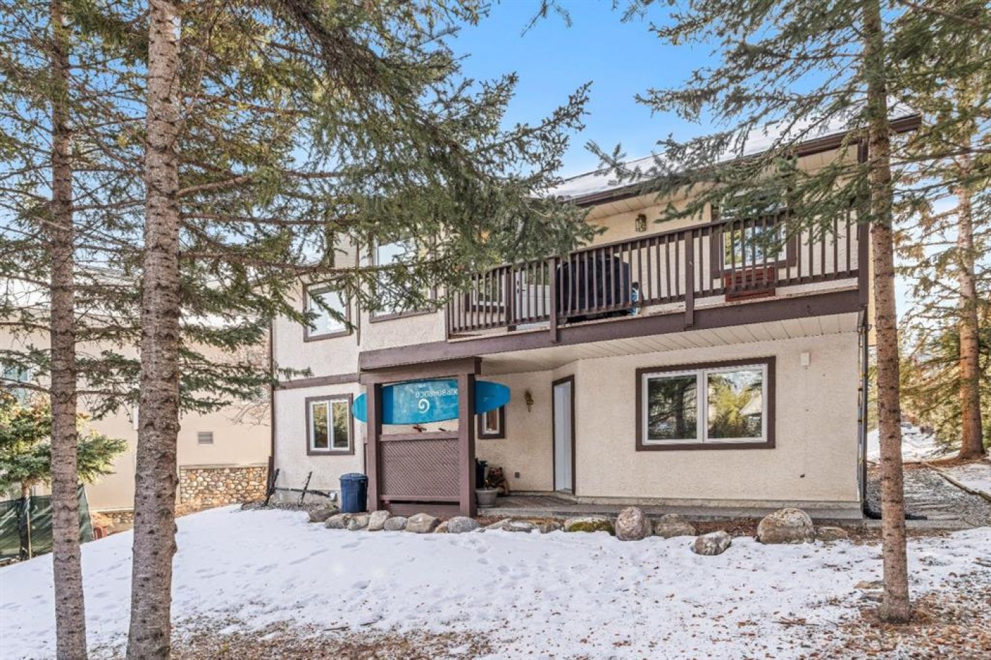 Single-family home in a highly sought-after location at the base of Sulphur Mountain in Banff. This south-facing, well-cared-for home is tucked into a quiet residential neighbourhood just steps from Bow Falls and a short walk to the iconic Banff Springs Hotel. Enjoy stunning views across the Bow River toward Sulphur, Rundle, and Cascade Mountains. The main living level is thoughtfully positioned on the second floor to maximize natural light and views. This level features a spacious primary bedroom with ensuite, a large great room with vaulted ceilings and a cozy fireplace, generous office, formal dining room, and a well-appointed kitchen. A sunroom and two balconies further enhance the indoor-outdoor living experience. The ground level offers a large family room, two additional bedrooms, a full bathroom, laundry, ample storage, and a double attached garage with workshop. This level walks out to a private, treed backyard—perfect for enjoying the natural surroundings. An exceptional property offering space, views, and an unbeatable setting.