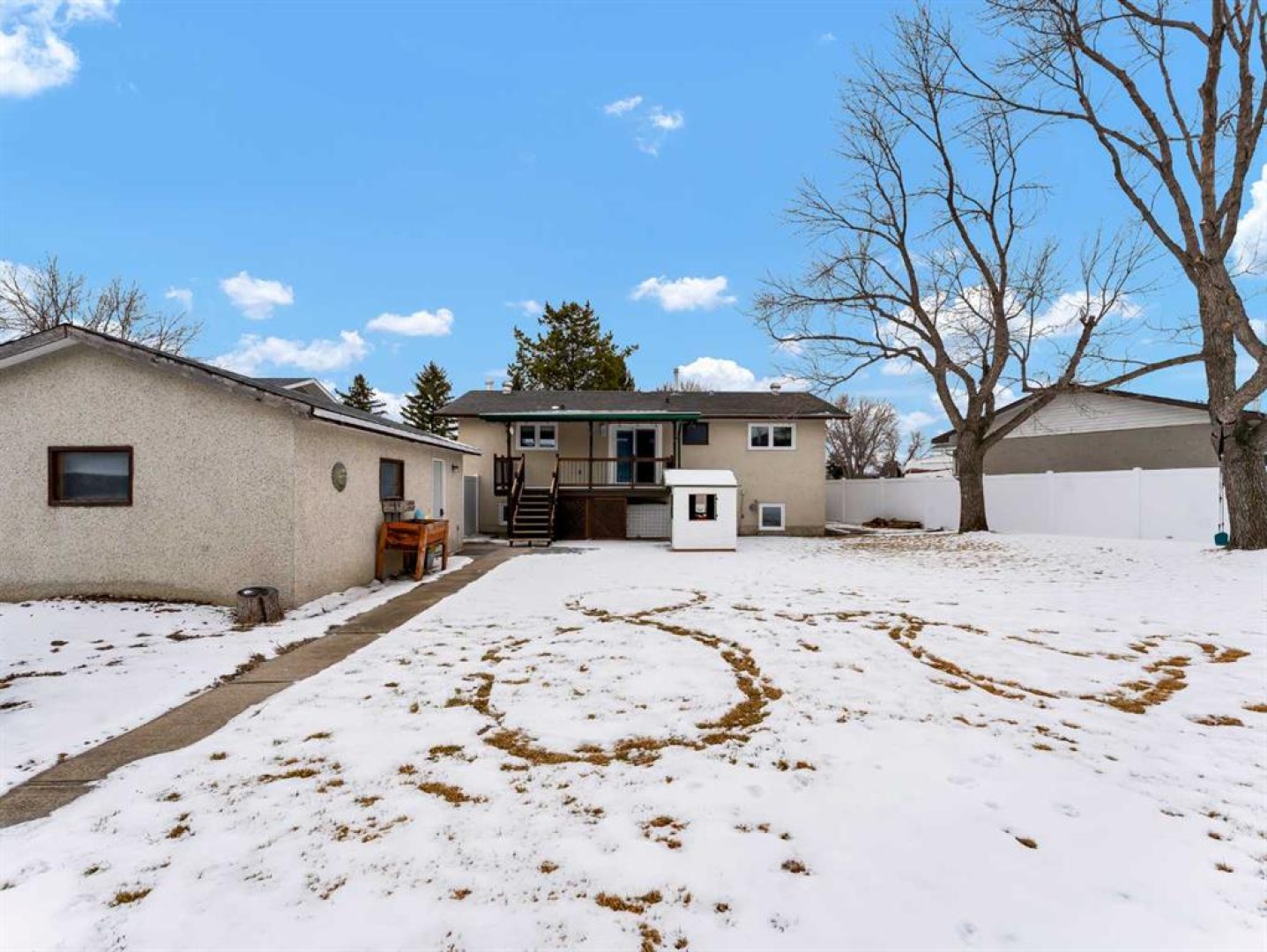 Location, location, location! Tucked away on a quiet crescent and directly across from a large park and playground, this inviting 4-bedroom, 2-bathroom home offers the perfect setting for a growing family. With Dr. Ken Sauer Elementary School just a short walk away and a huge backyard to enjoy, this is a home where kids can play and memories are made. The main floor features durable vinyl flooring throughout and a spacious front living room filled with natural light and peaceful views of the park across the street. The large eat-in kitchen offers plenty of space for family meals and gatherings, with direct access to the back deck and expansive yard—ideal for outdoor entertaining or everyday play. Two comfortable bedrooms and an updated 4-piece bathroom complete the main level. Downstairs, the fully developed basement adds even more living space with a large family room centered around a cozy wood-burning fireplace, two additional bedrooms, a 3-piece bathroom, laundry area, and convenient access to the backyard. Outside, you’ll appreciate the single detached garage and the oversized yard that offers ample room to add an additional large garage or create your dream outdoor space. A fantastic opportunity in a sought-after location—close to schools, parks, and perfect for young families looking to settle into a quiet, community-focused neighbourhood.