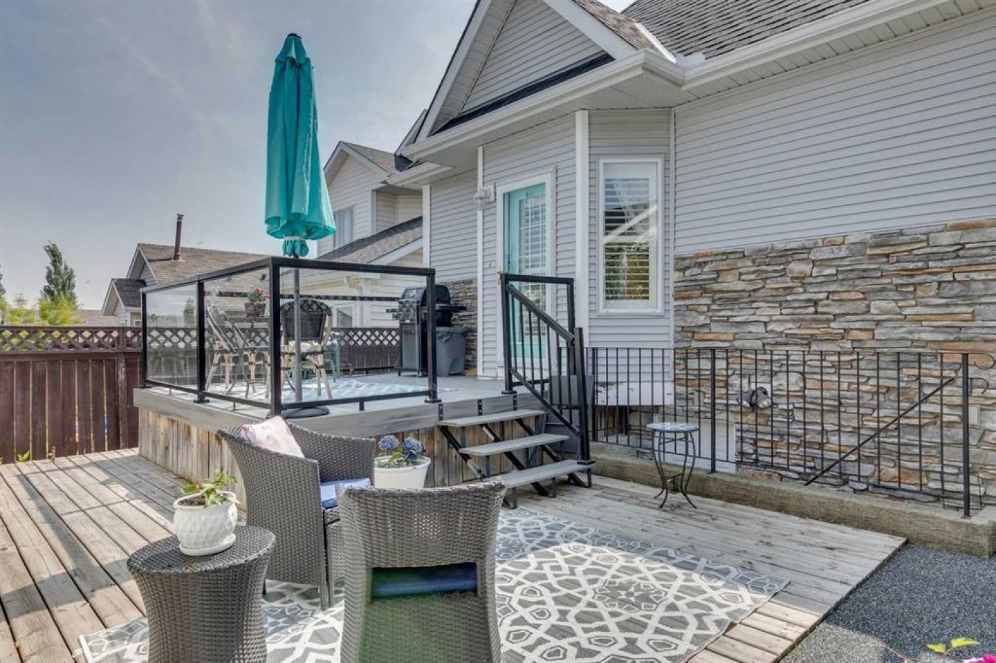 Step outside and enjoy the private backyard featuring a deck and patio area, perfect for summer gatherings and outdoor dining. A charming front patio provides a peaceful spot to enjoy your morning coffee in the sunshine. The detached double garage adds convenience and ample storage.