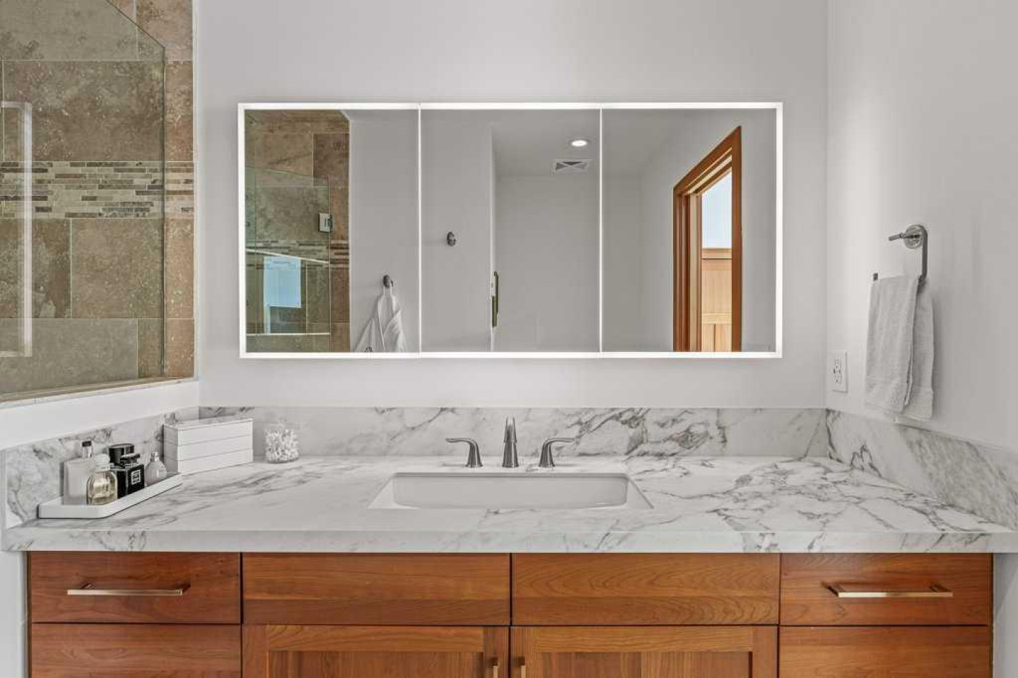Welcome to a thoughtfully renovated mountain townhome in one of Canmore’s most desirable neighbourhoods. This 3-bedroom, 3.5-bath home combines clean mountain-modern style with comfort and functionality, all tucked into a quiet setting you’ll love coming home to. The condition is truly exceptional, with high-end finishes and quality appliances throughout, reflecting the care and attention that’s gone into every update. The main living level features a bright, open layout filled with natural light. Hardwood floors, exposed wood beams, and a striking Rundle stone fireplace create a warm and inviting space, while the adjacent deck offers sunny exposure and beautiful mountain views. The kitchen is equally impressive and designed with entertaining in mind, featuring Italian porcelain countertops and backsplash, premium stainless steel appliances, a Fisher & Paykel induction range, Double Dish Drawer dishwasher, a custom integrated hood fan, and modern floating shelves with LED lighting. Upstairs, you’ll find two spacious primary-style bedrooms, each with its own ensuite. The larger primary enjoys stunning views of the Three Sisters and an upgraded, spa-inspired bathroom. Laundry is conveniently located on this level, complete with built-in storage for linens and supplies. The entry level offers a versatile third bedroom that works perfectly as a home office or guest space, complete with a cleverly designed Italian Murphy bed, along with an additional full bathroom. All bathrooms throughout the home have been updated with Italian porcelain countertops, new sinks, and LED mirrors. Motorized Hunter Douglas blinds have also been added in the main living area, kitchen, and primary bedroom for added comfort and privacy. With river pathways just a short walk in one direction and Main Street only blocks away in the other, this home offers the ideal balance of peaceful living and easy access to everything Canmore has to offer. A perfect lock-and-leave mountain retreat.