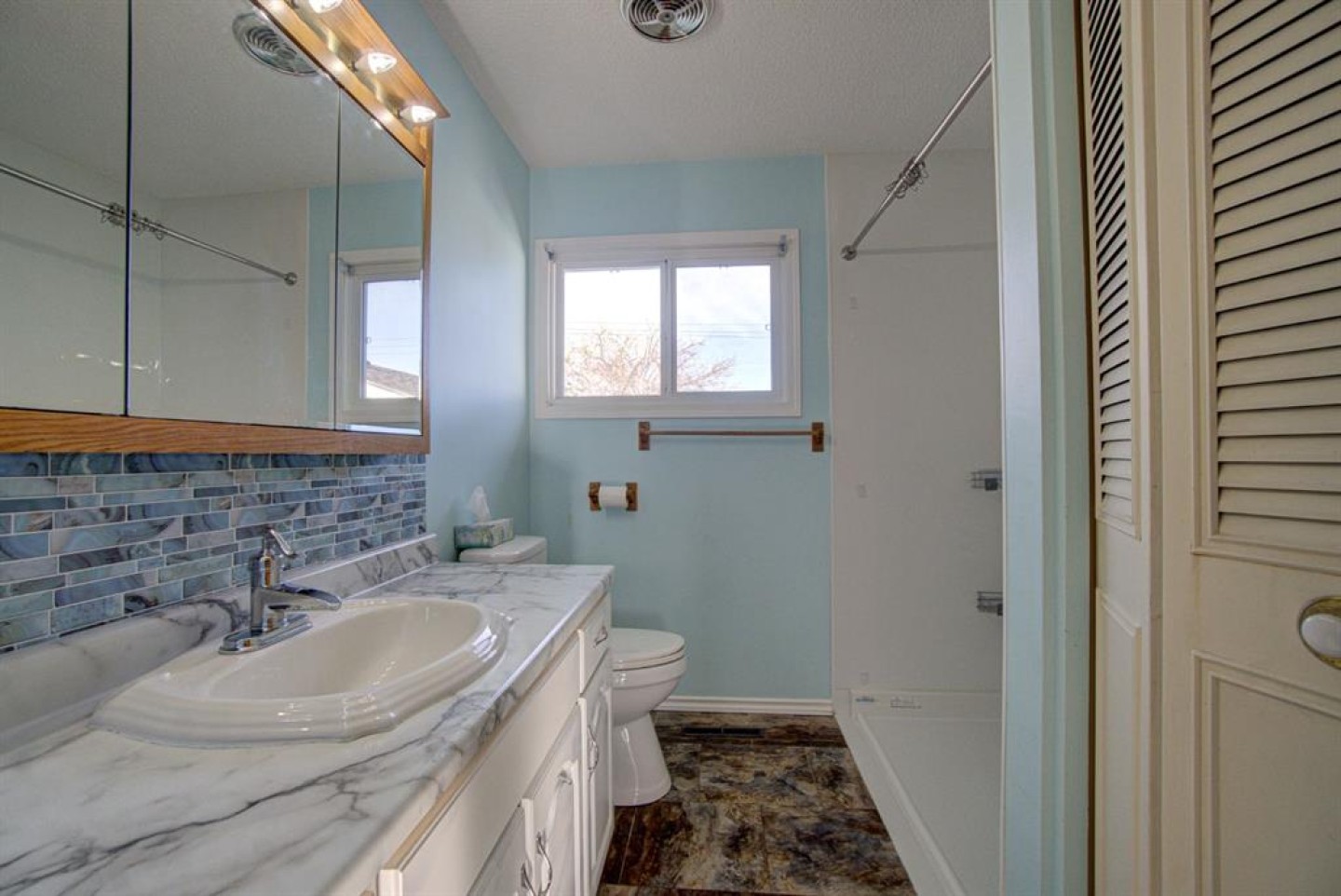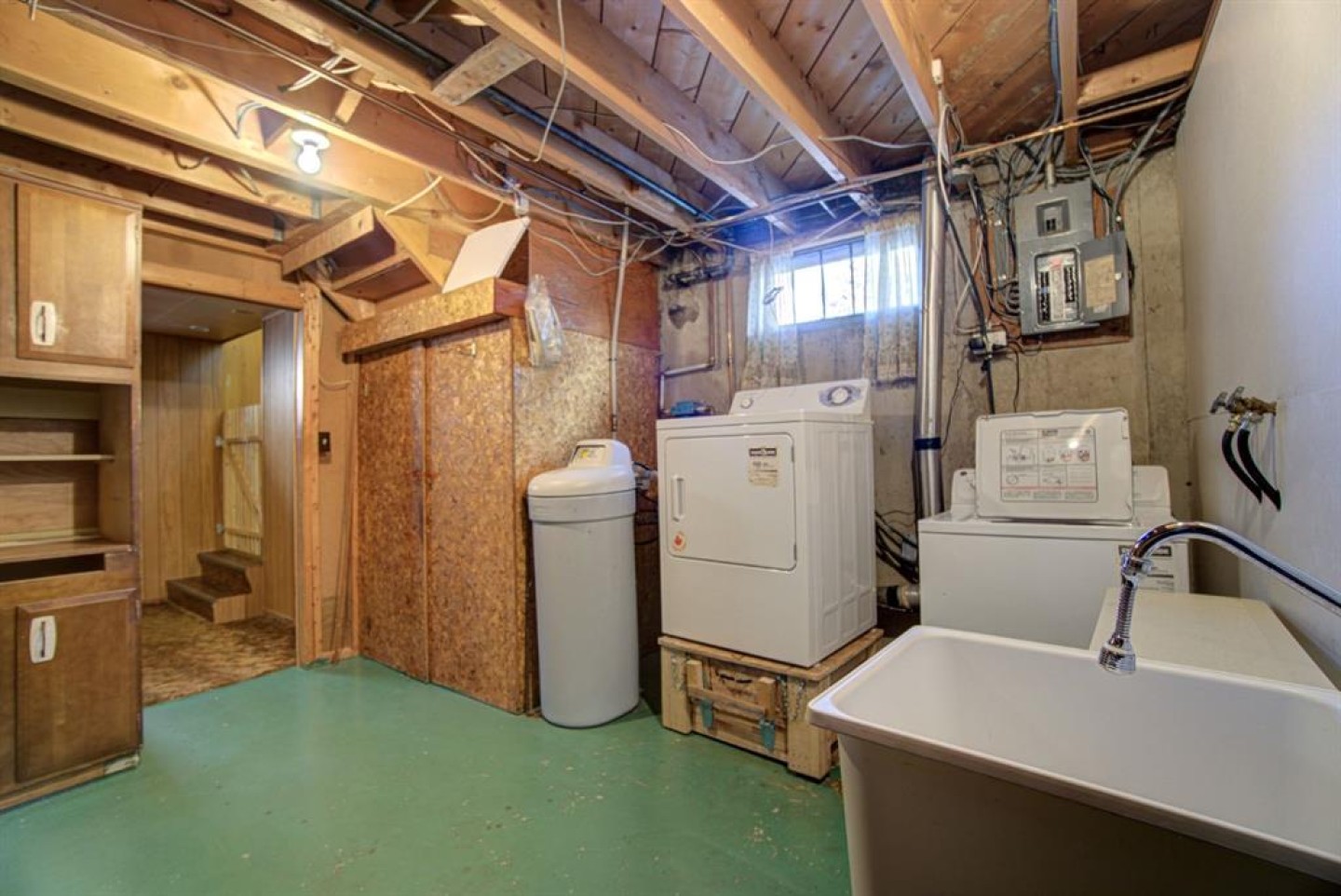 Welcome to your ideal bungalow, centrally located close to downtown, parks, walking paths, and schools. This well-maintained home features a spacious living room with large south-facing windows that flood the space with natural light. The cute and functional kitchen offers updated cabinetry, countertops, and backsplash, with a sink overlooking the backyard. A movable island and a window opening to the living room enhance the sense of space and flow. The separate dining room is highlighted by a large picture window, perfect for everyday meals or entertaining. Two bedrooms are located on the main floor, including a generously sized primary that easily accommodates a king-size bed. Both bedrooms feature full-height closets for excellent storage. A 3-piece main bathroom with a walk-in shower completes the main level. A rear entrance leads directly to your ground-level patio and fully fenced backyard. Downstairs, the basement offers a nostalgic feel with a family room, games room complete with a wet bar, an additional bedroom (see remarks), and a 2-piece bathroom with a shower conveniently located nearby. The property also features back alley access, a large side driveway, and a detached heated garage—ideal for parking, storage, or a workshop. Many perennials throughout the yard as well as raspberry bushes and a raised garden bed. Immediate possession is available, making this a fantastic opportunity to move right in.