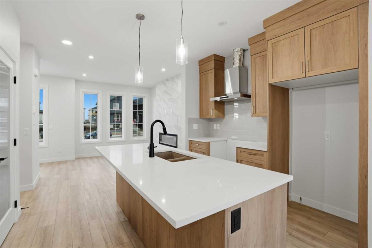 ** BRAND NEW, MOVE-IN READY ** Broadview Homes Presents the Mira | 1,628 SqFt | Main Level Bed & 4pc Bath | Top of the Line Finishes | Quartz Countertops | Full Height Cabinets | Kitchen Island | Barstool Seating Area | Pantry | Central Kitchen | Front Living Room | Rear Dining Room | Electric Fireplace | Large Windows | 3 Upper Level Bedrooms | Bonus Family Room | Upper Laundry | Separate Entry to Unfinished Basement | 744 SqFt of Blank Canvas | Rear Lane. Welcome to your stunning brand new home built by Broadview Homes. The Mira Farmhouse boasts 1,628 SqFt throughout the main and upper levels with an additional 744 SqFt on the lower level has incredible living space. The front door opens to a foyer with closet storage and views into the open floor plan main level. The front living room has a floor to ceiling accent wall behind the electric fireplace. The kitchen is located in the centre of the home with full height cabinets, stainless steel appliances(builder's package), sparkling quartz countertops and a centre island with barstool seating space. The dining room is located at the rear and is partnered with a door to the rear deck perfect for those summer BBQs! The main level bedroom & 4pc bath is perfect for extended family members or overnight guests. Upsatirs holds 3 bedrooms, 2 bathrooms, a bonus family room and laundry. The primary bedroom has a deep walk-in closet and private 3pc ensuite with a walk-in shower. Bedrooms 2 & 3 upstairs share the main 4pc bath with a tub/shower combo. The upper bonus room separates the primary bedroom from the remaining providing you with additional privacy. The family room is a great addition to your comfortable living space providing you with a space to unwind in the evenings. The laundry located near all the bedrooms is every home owner's dream! Downstairs, the basement has a separate side entry giving you every opportunity for a legal suite based on City approval. With exceptional craftsmanship and thoughtful design, The Mira offers a truly elevated living experience — combining modern luxury with everyday practicality. Book your showing today!