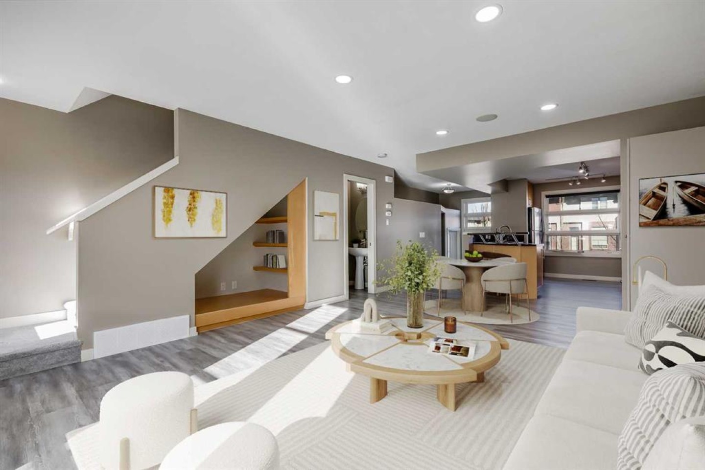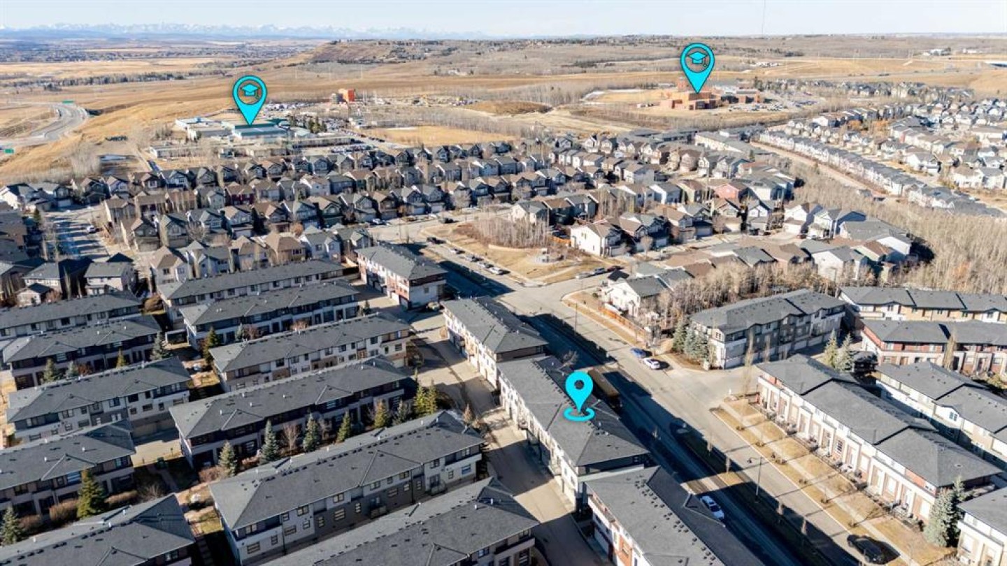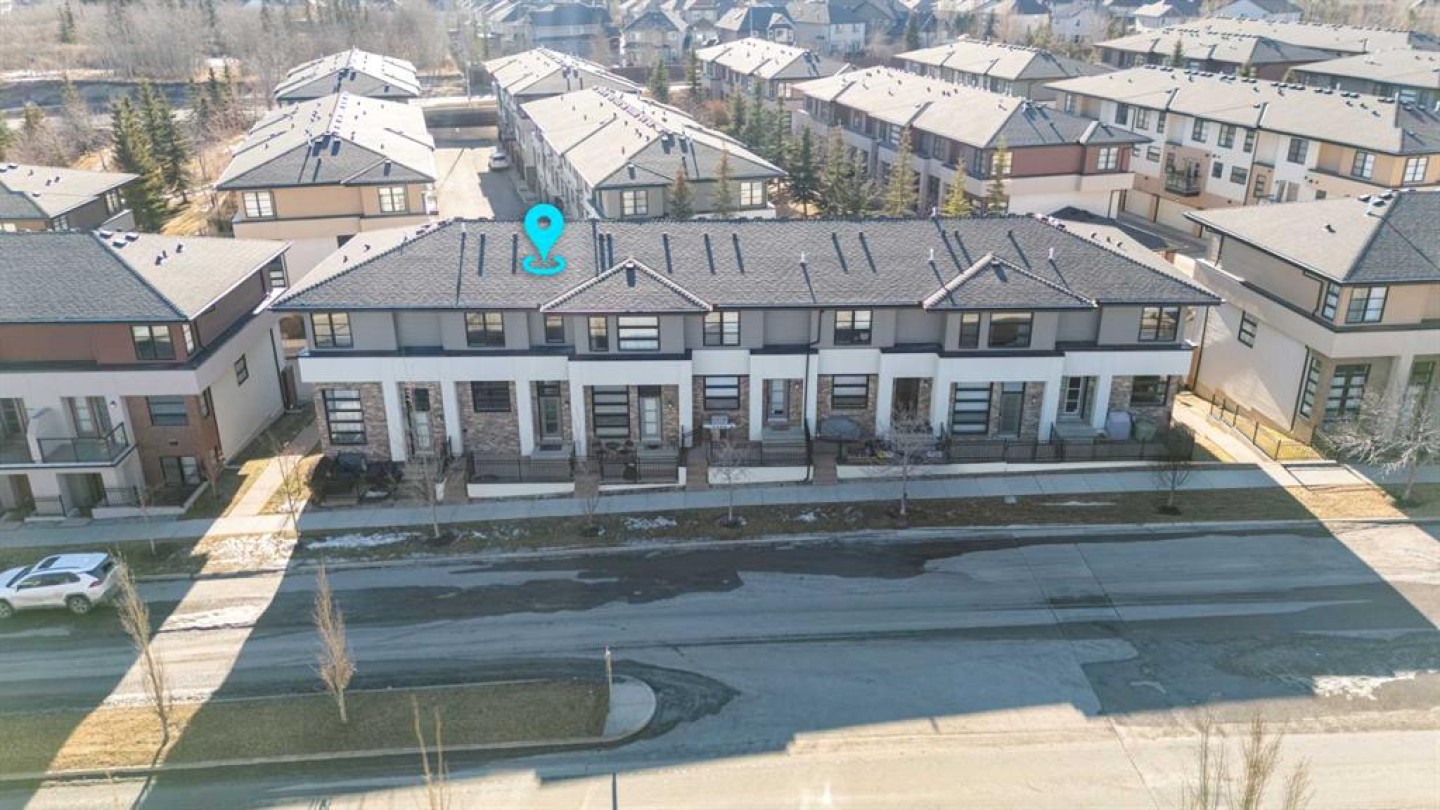 Located in the sought-after community of Aspen Hills, this well-maintained two-storey townhouse offers over 1,400 sq ft of developed living space with a functional layout and thoughtful details throughout. Three bedrooms, two and a half bathrooms, and a double attached garage provide a practical setup suited to both families and professionals. The main level is finished with durable luxury vinyl plank flooring and designed for everyday living, featuring an open-concept kitchen, dining, and living area that feels bright and welcoming thanks to large windows and a desirable south-facing exposure. The kitchen is equipped with stainless steel appliances, generous cupboard and counter space, and an eating bar ideal for casual meals. The dining area flows naturally into the living room, where patio doors open onto an unobstructed, south-facing balcony that brings in abundant natural light and offers a comfortable outdoor extension of the living space. In addition to the upper balcony, the home features a private front patio at the main entrance, complete with a BBQ gas line and space for a bistro table, perfect for morning coffee or evening use. A convenient two-piece powder room completes the main floor. Upstairs, the primary bedroom serves as a comfortable retreat, also benefiting from sunny south exposure, and includes a walk-in closet and a private three-piece ensuite with an oversized shower. Two additional bedrooms share a four-piece bathroom, offering flexibility for guests, children, or a home office. The lower level includes laundry, additional storage, and direct access to the double attached garage. Street parking is available directly in front of the home, providing a rare detached-home feel for a townhouse and added convenience for visitors. Pets are permitted with board approval. Set in a prime west Calgary location, this home is within a ten-minute walk to Aspen Landing, with shops, restaurants, and everyday services close at hand. The area is well served by schools including Guardian Angel School, Calgary Academy, Rundle College, Ernest Manning, and Ambrose University, along with nearby amenities such as the West Side Rec Centre and WinSport. Parks, playgrounds, and pathway systems are nearby, while easy access to 17th Avenue, Stoney Trail, and the 69th Street LRT station makes commuting straightforward, with downtown Calgary reachable in approximately 20 minutes. Proximity to major routes also allows for quick access to the mountains. Take advantage of your opportunity to see this incredible property in person, book your showing today! Be sure to check out the floor plans and 3D tour for a closer look before your visit.