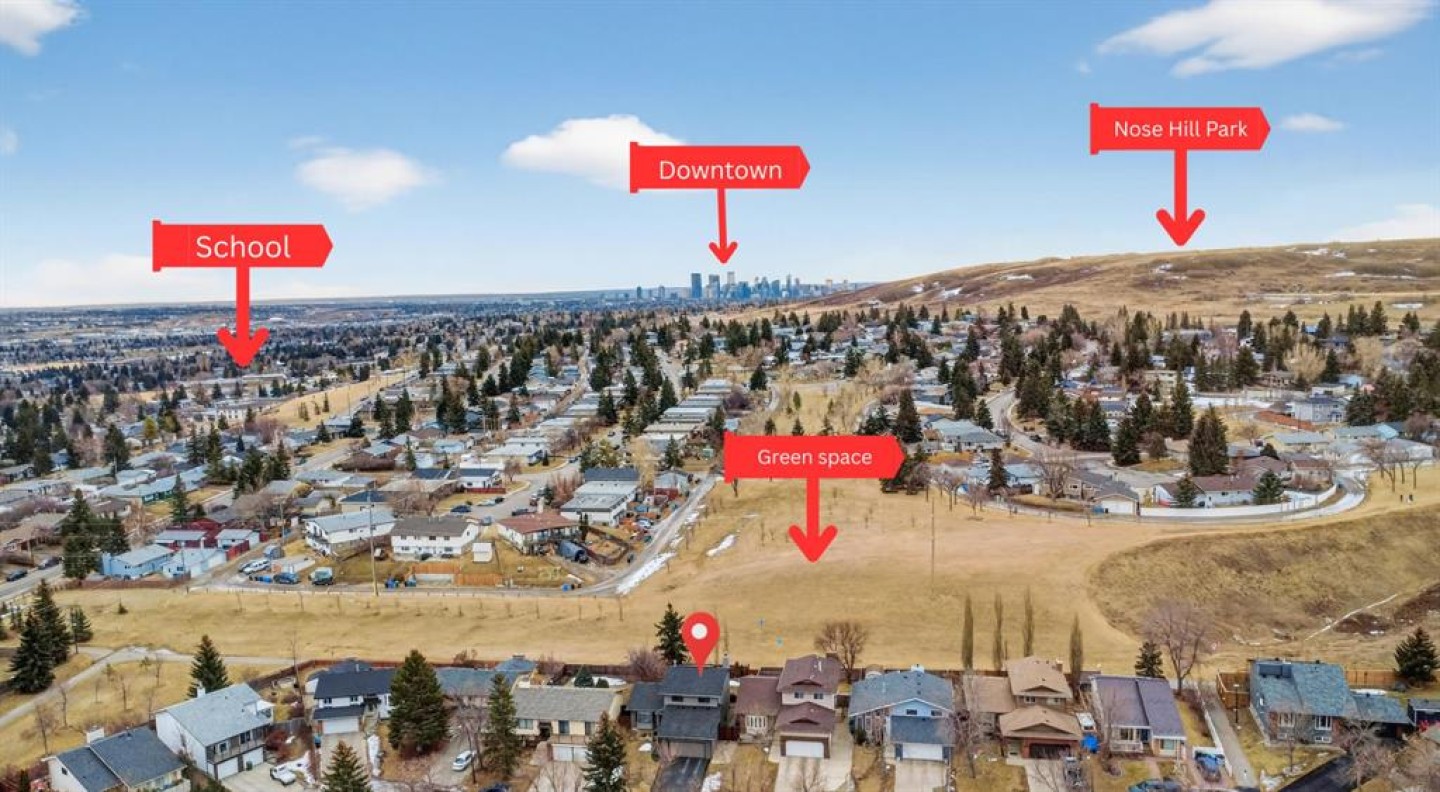 **OPEN HOUSE - FEBRUARY 7, 2026 FROM 12:00 P.M. - 2:00 P.M. ** Welcome to this beautifully updated family home tucked into the heart of Beddington Heights, where comfort, warmth, and everyday convenience come together perfectly. From the moment you step inside, a spacious front foyer sets the tone and leads you into a bright, welcoming living room and elegant formal dining area, the perfect setting for holidays, celebrations, and unforgettable gatherings with family and friends. Rich hardwood floors flow throughout, while the attached double garage makes daily life effortless. At the heart of the home, the open-concept kitchen invites connection and conversation, featuring a large granite island and space for casual dining. Just a few steps down, the sunken family room creates a cozy retreat, complete with a wood-burning fireplace and newer patio door that open to the backyard, a seamless blend of indoor comfort and outdoor living. Step outside and fall in love with the huge south-facing yard backing directly onto peaceful green space. Framed by a new metal fence, this private outdoor oasis is perfect for summer entertaining, kids at play, and pets to roam freely in the sunshine. The main floor also offers a beautifully functional office with custom built-ins and a stylish 2-piece powder room with additional storage, thoughtfully designed for modern family living. Upstairs, three spacious bedrooms provide room for everyone to unwind. The primary retreat is truly special, featuring its own private balcony, a warm gas fireplace, and a 4-piece ensuite — your personal sanctuary for quiet mornings and peaceful evenings. The fully developed basement expands your living space even further with a large family room, a second gas fireplace, laundry, and abundant storage, ideal for movie nights, hobbies, and growing families. This home has been upgraded throughout, including an updated kitchen, newer hot water tank (2021), rubber driveway and garage pad, hail-resistant shingles (2022), new patio doors, new steel fence, new attic insulation, 11 solar panels, central air conditioning, new windows, and a powder-coated exterior designed for long-lasting durability. Perfectly located close to schools, shopping, transit, and Nose Hill off-leash dog park, this home offers the rare combination of thoughtful upgrades, incredible outdoor space, and an unbeatable location. Don’t miss your chance to fall in love with this one of a kind Beddington Heights home backing onto green space.