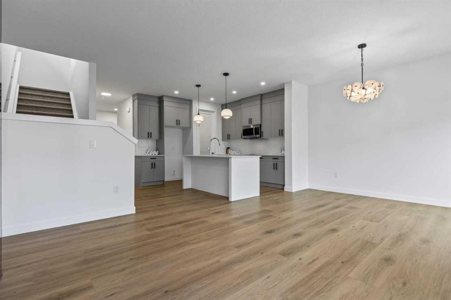 LOCATED in the BRAND NEW COMMUNITY OF HERITAGE HILLS, this BRIGHT, STYLISH, NEVER LIVED IN SEMI-DETACHED HOME offers 3 bedrooms, 2.5 bathrooms, and a DOUBLE ATTACHED GARAGE for seamless everyday living. The main floor shines with EXPANSIVE WINDOWS that bath the space in natural light, 9-FOOT CEILINGS, and durable LVP flooring throughout the main floor. Its OPEN CONCEPT DESIGN centers around a generous kitchen complete with STAINLESS STEEL APPLIANCES (TO BE INSTALLED BEFORE POSSESSION), a kitchen island, QUARTZ COUNTERTOPS, and a pantry, all flowing smoothly into the inviting living area. A TILED FEATURE WALL with an ELECTRIC FIREPLACE adds a contemporary focal point to the living room, while balcony doors open to a back deck ideal for relaxing, barbecuing, and entertaining. Upstairs, enjoy a versatile BONUS ROOM perfect for a media or play area, a spacious primary bedroom with a WALK-IN CLOSET and a 4-PIECE ENSUITE, plus two additional bedrooms and a convenient laundry room. The basement awaits your personal touch, offering endless potential for future development. Heritage Hills is a VIBRANT, GROWING COMMUNITY just moments from Mountain Ridge Plaza, where you’ll find a grocery store, restaurants, a gym, a pharmacy, a dental clinic, and a daycare. Commuting to Calgary is easy, with QUICK ACCESS TO THE MOUNTAINS for weekend adventures. This home presents an excellent opportunity to embrace modern living in a dynamic new neighborhood. DON'T MISS YOUR CHANCE! BOOK YOUR SHOWING!