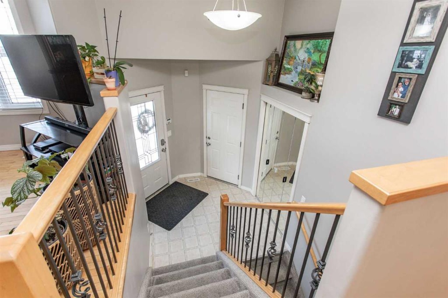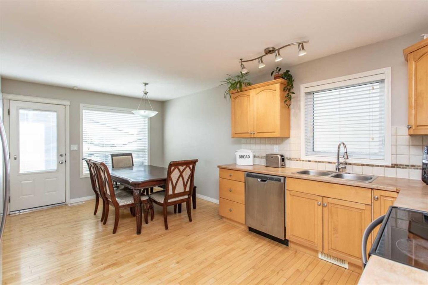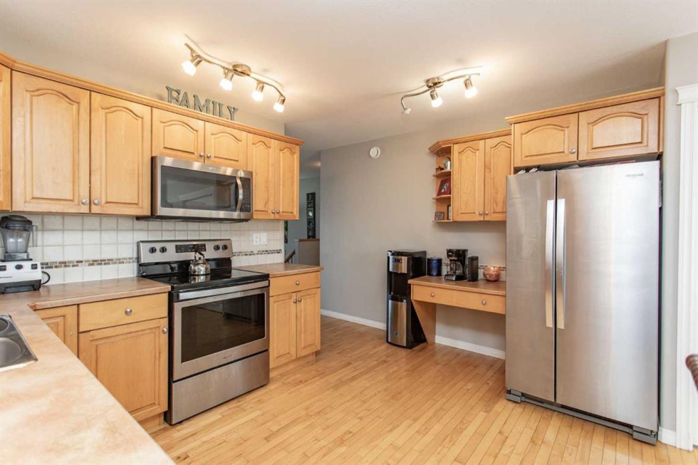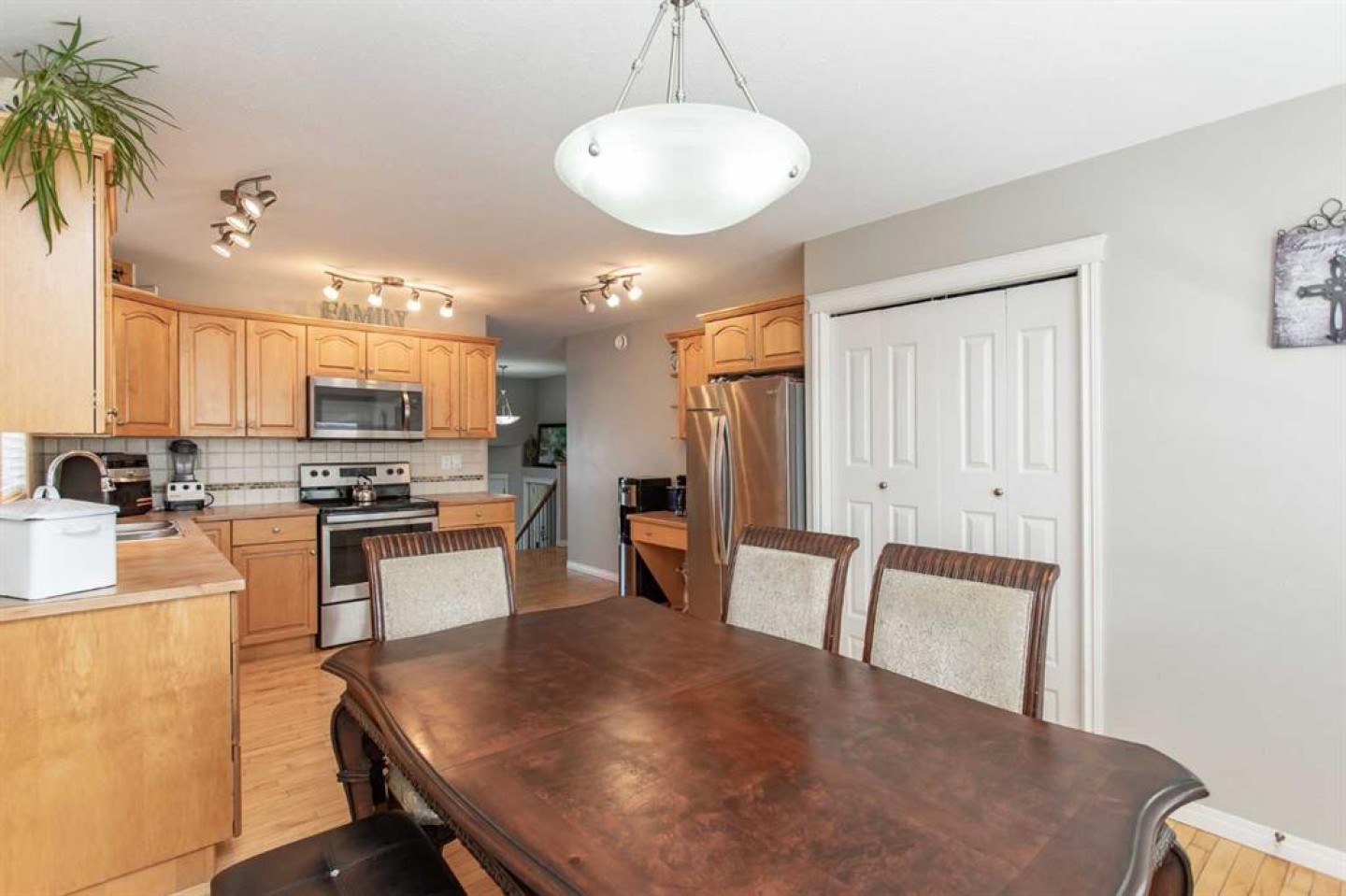 Nicely appointed bi level ideally suited for a family looking for the perfect fit in a home. Situated just steps away from a huge green space with a park area, playground and skating rink for the kids to enjoy. Fully developed with 5 bedrooms and an open, spacious plan for everyone to move around in. Maple hardwood floors enhance the main floor design with a large front sitting room with picture window. The large kitchen and dining area offers an abundance of maple cabinetry which is accented by the stainless steel appliances, coffee bar area ideal for the grab and go mornings plus a family size eating area perfect for the home time gatherings. The generous Primary bedroom is large enough for a King size bed plus additional furniture, full walk in closet plus a private three piece en suite. The finished basement is excellent for entertaining. Massive family room with games area is ideal for media space and socializing. Two larger guest bedrooms plus an additional four piece bath makes things easy for extended family or the stay at home students. Finished laundry space even offers room for extra storage and shelf space. Cozy underfloor heat for the winter plus cooling AC for the summer are two comfort features you will love during the seasons. Venture outside and enjoy the fully fenced and landscaped yard. Large deck offers a gas line for bbq or patio heater. Room for RV parking if needed with swing gate already in place. The oversize attached garage is finished with plenty of room for vehicle protection and extra storage space. Home is also situated in an ideal location for neighborhood amenities plus a number of schools are right in the immediate area.