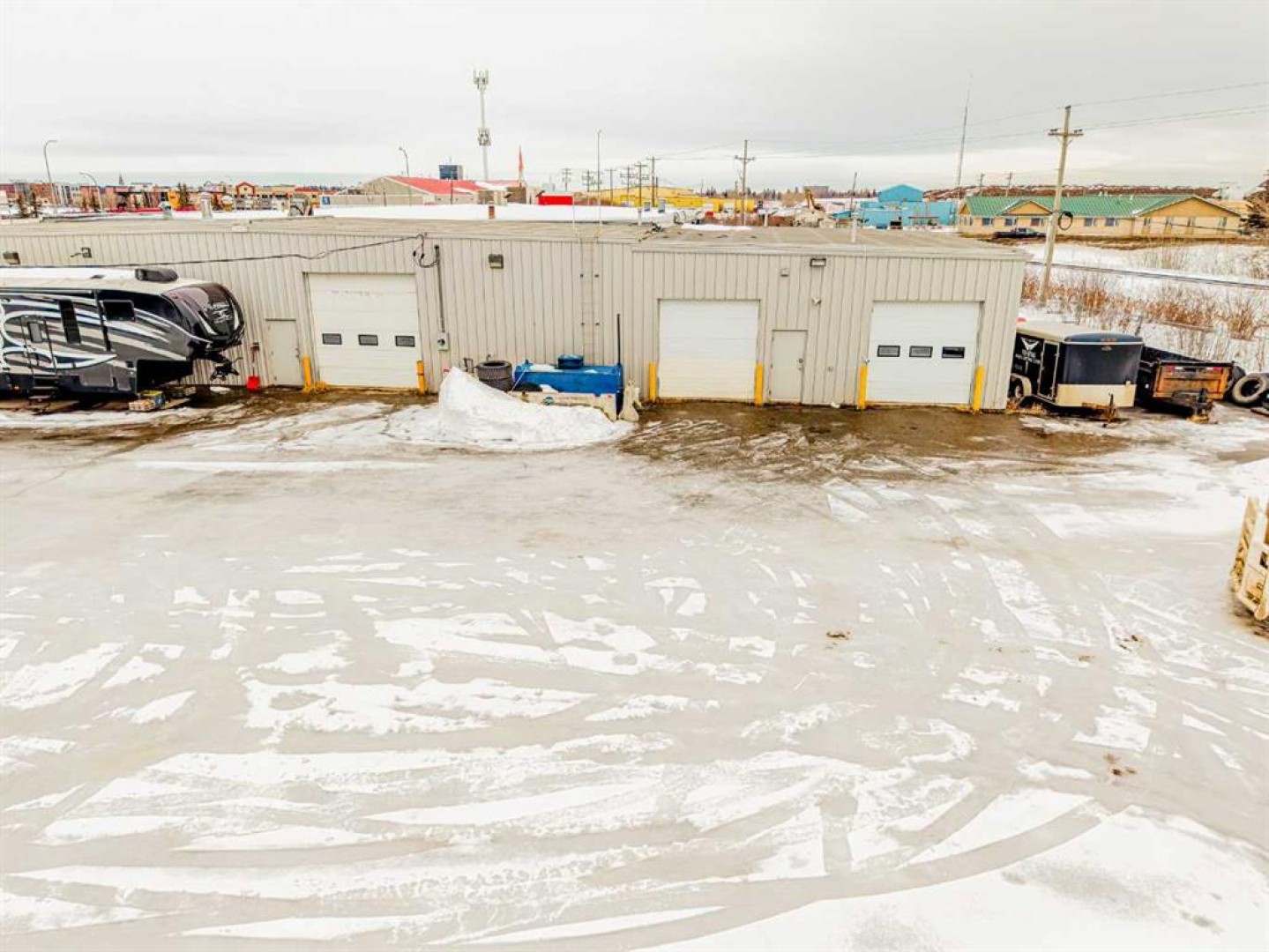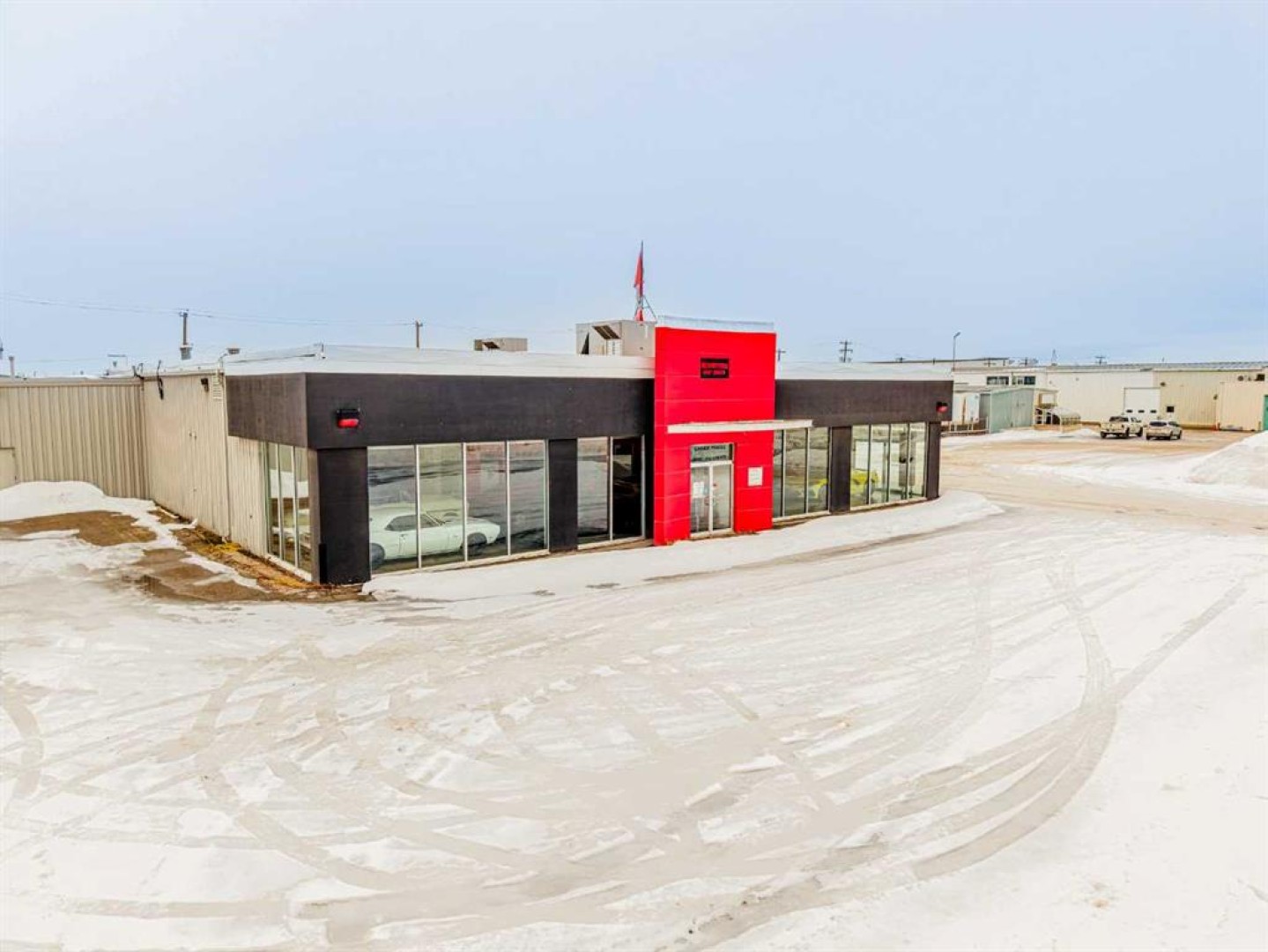 HIGH-VISIBILITY LOCATION ideal for an industrial retail or service user. This former car dealership features a front showroom, offices, three bathrooms, and a large shop with three overhead doors, along with a paved and graveled yard, rooftop HVAC units, and excellent access. Built in 1972 and renovated in 2005, the building is in good working order and positioned in a location that cannot be missed, offering strong exposure and functional warehouse capability. Additional Rent is estimated at $4.00 PSF for 2026.